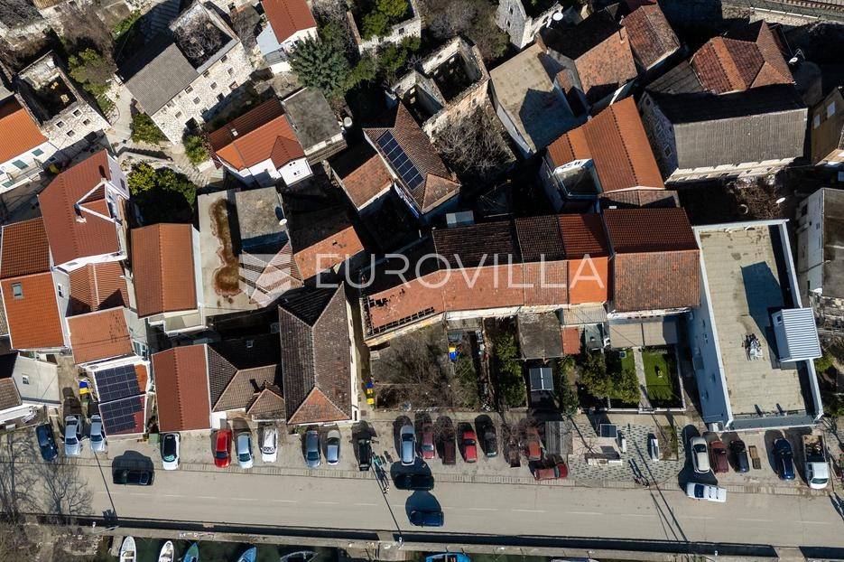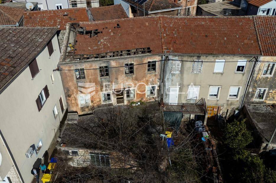 Komin, obiteljska kuća u nizu u samom centru mjesta uz glavnu prometnicu, orijentacije jug - sjever.Nekretnina se nalazi na zemljištu veličine 161 m2 te se sastoji od četiri etaže ukupne neto površine 260 m2, te posjeduje sve komunalne priključke.Prizemlje koje se sastoji od stubišta, predulaza, toaleta, kuhinje, blagavaone i konobe ukupne neto površine 106 m2.Prvog kata koji se sastoji od vanjskog stubišta, hodnika, dvije sobe, dnevnog boravka, toaleta, terase ukupne neto površine 71 m2, za koji postoji zaseban stražnji ulaz.Drugog kata koji se sastoji od hodnika, tri sobe, kuhinje ukupne neto površine 61 m2, te potkrovlja od 22 m2.Iako je navedeni objekt izuzetno kvalitetno građen u dva navrata 1920 godine i 1950 godine (temelji kamen - beton, armirano betonske grede iznad aneksa, nosiva konstrukcija beton-kamen) potrebno je izvršiti kompletnu rekonstrukciju objekta iz razloga što je isti zapušten s vidljivim oštećenjima međukatne gredne konstrukcije, krovne konstrukcije, te vlaženja unutarnjih zidova.Uz temeljitu reknostrukciju i etažiranje postoji mogućnost izgradnje tri zasebne stambene jedinice za obiteljsko stanovanje kao i mogućnost bavljenja turističkim najmom.Za više info budite slobodni kontaktirati nas.... Više na eurovilla.hr, ID: 548860