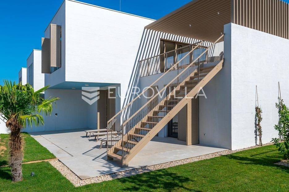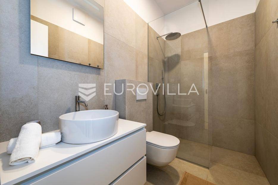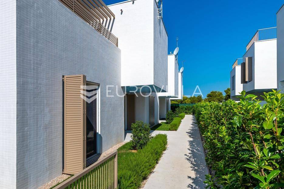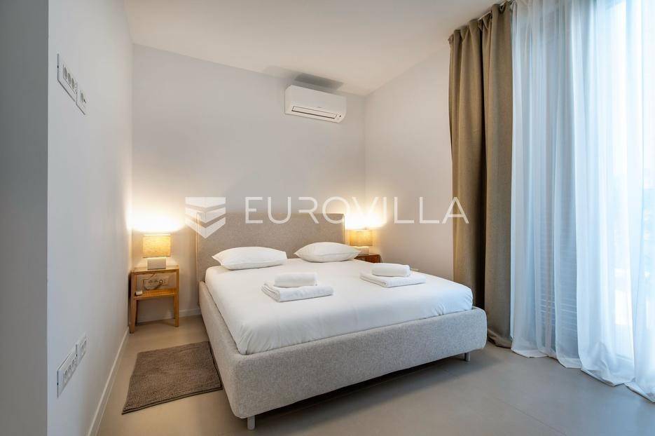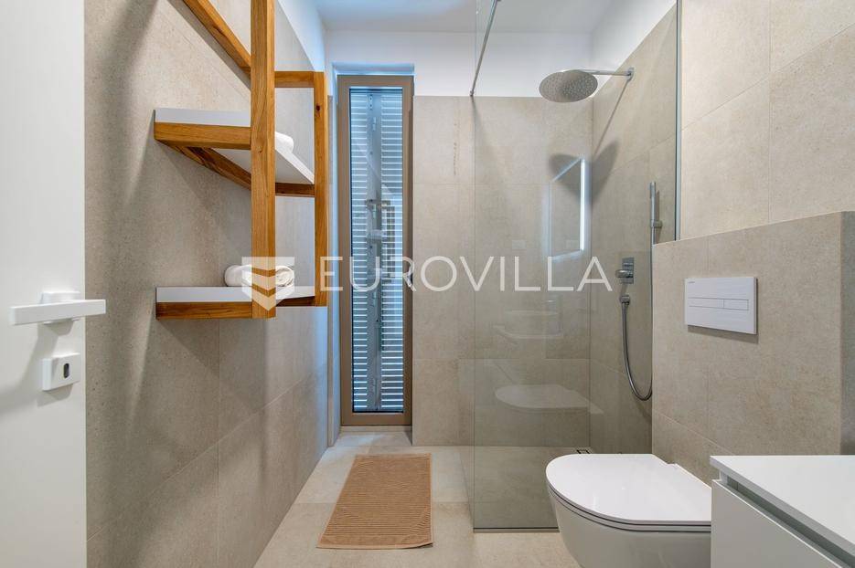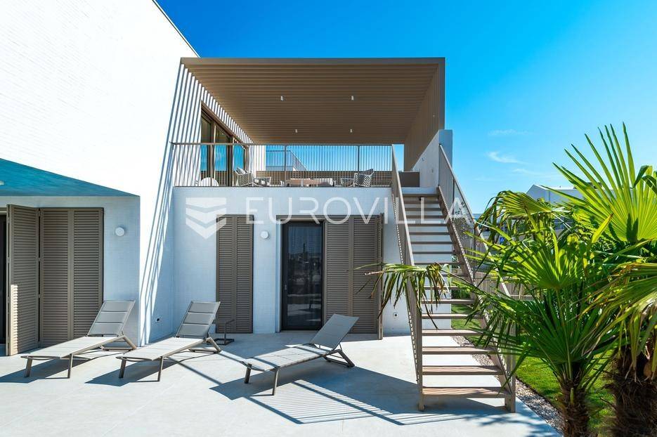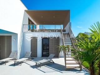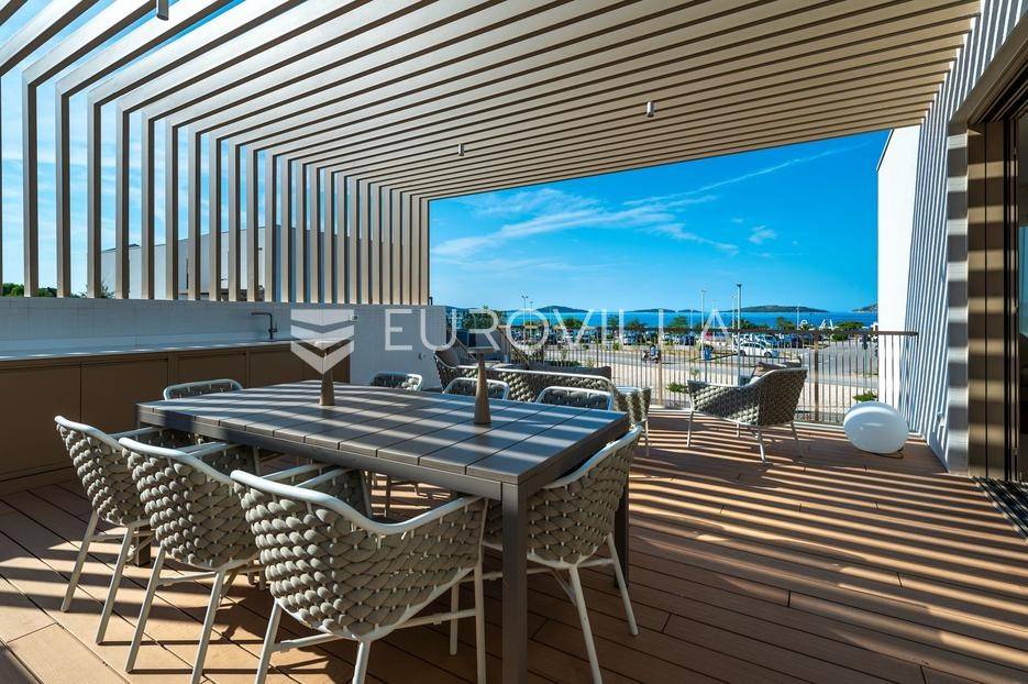 Šibenik, Brodarica, beautiful villa with a swimming pool, first row to the sea, area of 256.51 m². Available from 15.10. for a period of 6 months. Built on 2 floors on a plot of 337 m². It consists of a ground floor with 3 bedrooms, of which the master bedroom has a private bathroom, one additional bathroom, and a storage room. The bedrooms have access to the terraces and the yard with a swimming pool. On the first floor there is a spacious living room with a kitchen and dining room, a toilet and a storage room. The living room leads to a large terrace covered with a pergola. There is a summer kitchen on the terrace. There is a beautiful garden around the villa, and a sunbathing area. The villa has parking for 2 cars. The microlocation of the villa is excellent, it is located right on the beach, and only a few kilometers from Šibenik. All other information on request.... More on eurovilla.hr, ID: 587109