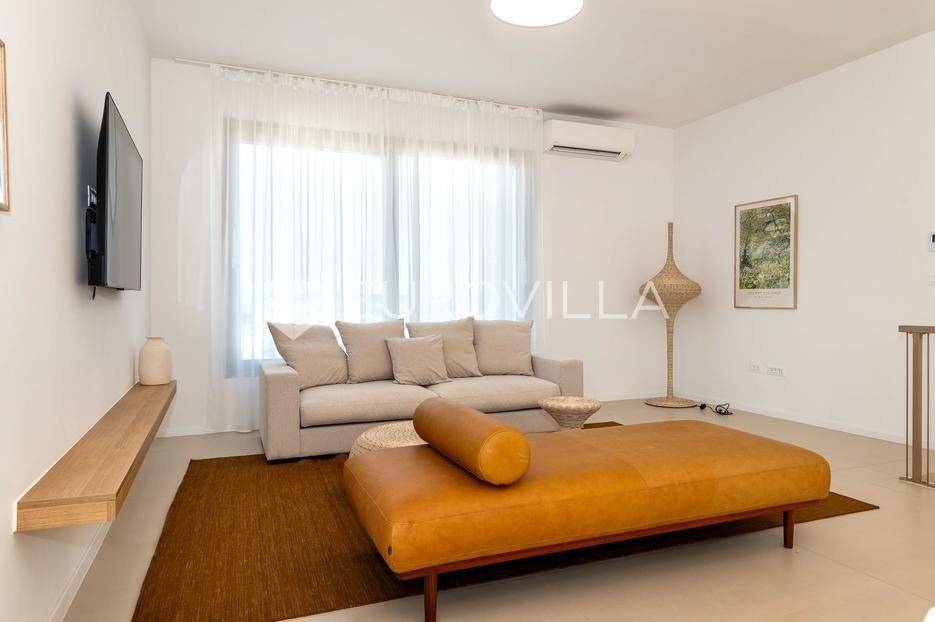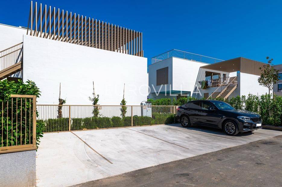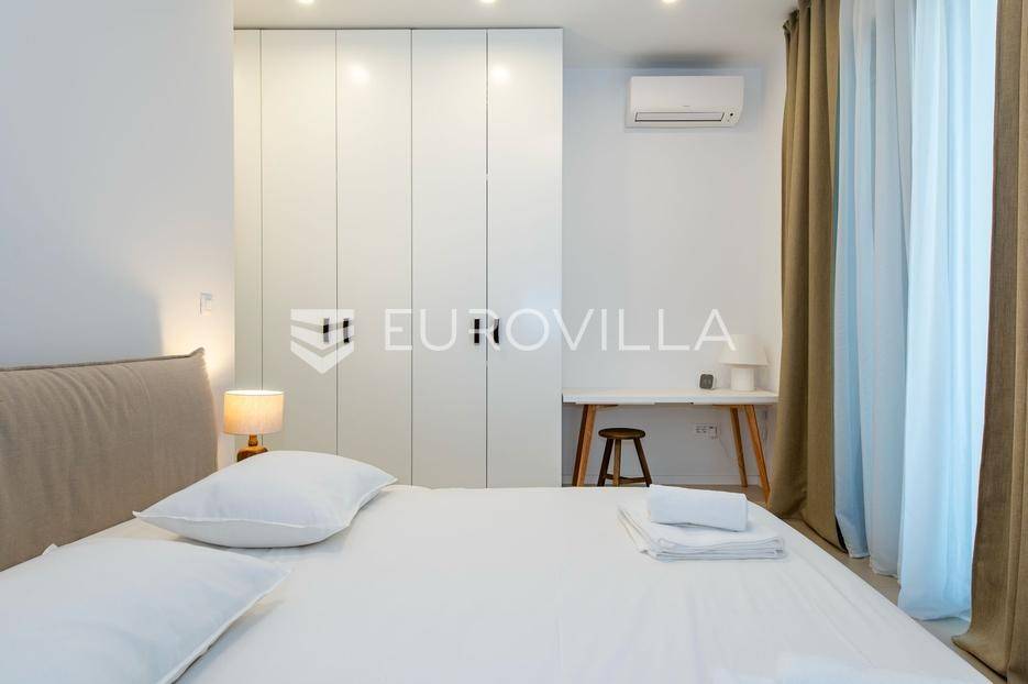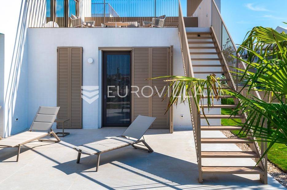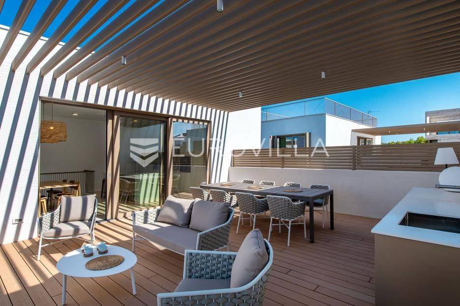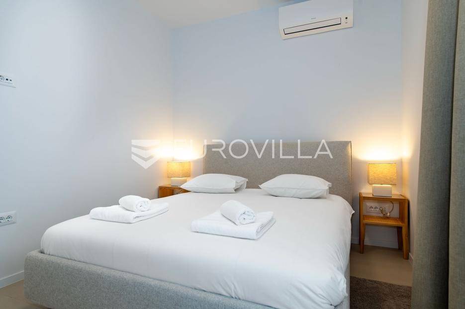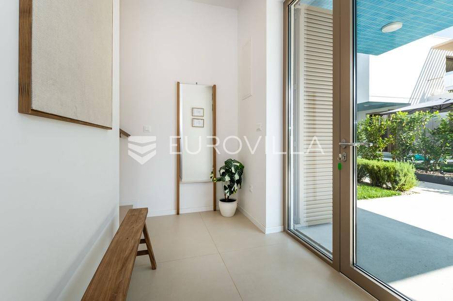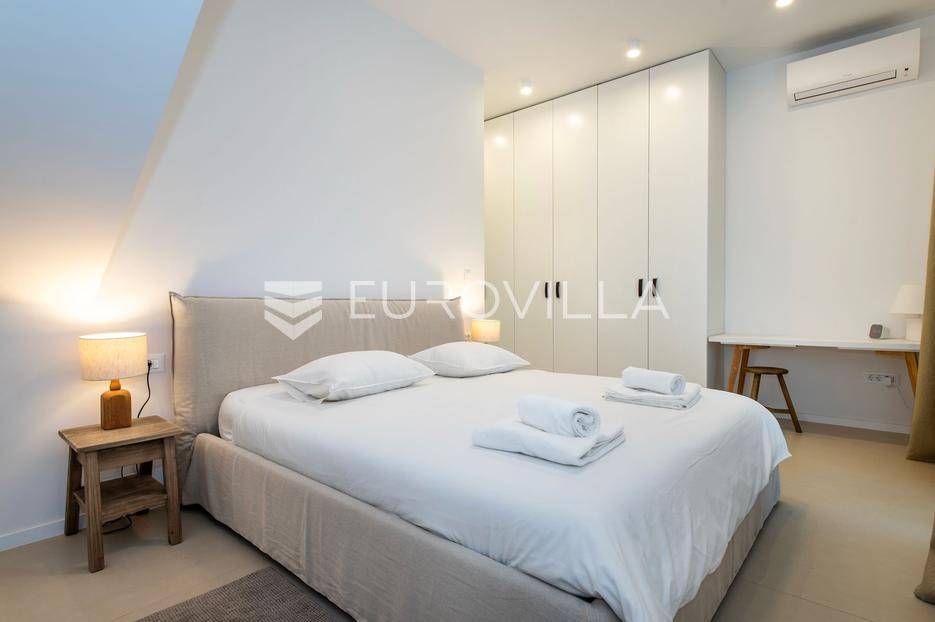 Šibenik, Brodarica, beautiful villa with a swimming pool, first row to the sea, area of 256.51 m². Available from 15.10. for a period of 6 months. Built on 2 floors on a plot of 337 m². It consists of a ground floor with 3 bedrooms, of which the master bedroom has a private bathroom, one additional bathroom, and a storage room. The bedrooms have access to the terraces and the yard with a swimming pool. On the first floor there is a spacious living room with a kitchen and dining room, a toilet and a storage room. The living room leads to a large terrace covered with a pergola. There is a summer kitchen on the terrace. There is a beautiful garden around the villa, and a sunbathing area. The villa has parking for 2 cars. The microlocation of the villa is excellent, it is located right on the beach, and only a few kilometers from Šibenik. All other information on request.... More on eurovilla.hr, ID: 587109