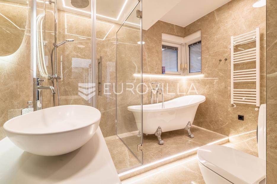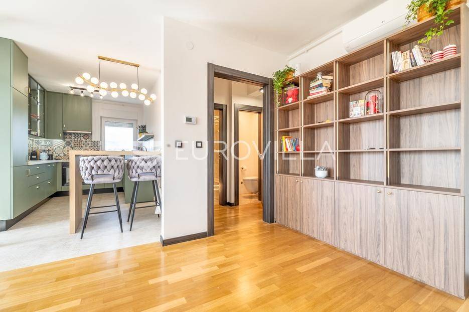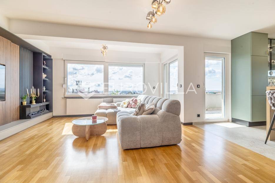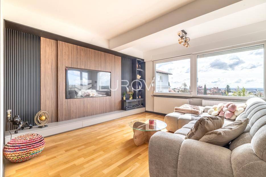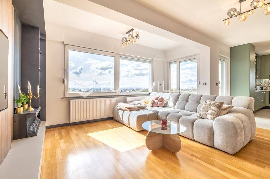 Zagreb, Bukovačka, svijetao trosoban stan na trećem katu stambene zgrade s liftom kojem pripada garaža i nenatkriveno parkirno mjesto.Stan se sastoji od ulaznog hodnika, dnevnog boravka s kuhinjom i blagovaonicom koji izlazi na predivnu terasu koja pruža svjetlost stanu, dvije spavaće sobe koje također imaju izlaz na drugu terasu, kupaonice, te zasebnog wc-a. Stan je u potpunosti adaptiran, klimatiziran te je u svakoj prostoriji postavljen alarm sustav.Stanu pripada vanjsko parkirno mjesto površine 24,50 m2 te spremište u podrumu površine 2,55 m2. Sveukupno obračunski 114 m2.Stambena zgrada se nalazi na izvrsnoj lokaciji, nedaleko od javnog prijevoza, u blizini sadržaja potrebnih za život, dućana, škola, vrtića...Za više informacija kontaktirajte nas.... Više na eurovilla.hr, ID: 596636
