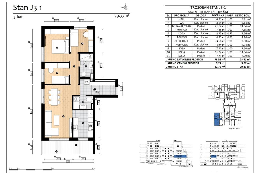 HERITAGE - Nova era stanovanja na TrešnjevciTrešnjevka, na atraktivnoj lokaciji gradi se HERITAGE, zgrada s ukupno 110 stanova. Savršen spoj udobnosti i luksuza dostupan svima. Planirano useljenje veljača 2027.Stan J3-1četverosoban stan na trećem katu zatvorene površine 73.51 m2 s balkonom 4.52 (2.26) ukupno obračunski 79.33Sastoji se od ulaznog hodnika, dnevnog boravka spojenog s blagovaonicom i kuhinjom, balkon, jedne kupaonice, jednog wc-a, jedne veće i dvije manje spavaće sobe.Obavezna kupnja parkirnog garažnog mjesta i mogućnost kupnje spremišta.Zgrada će biti izgrađena po visokim standardima:sustav ETICS, završni sloj silikatna žbuka proizvođača ROFIXtoplinska izolacija 15 cm mineralna vuna Rockwoolaluminijske vanjske klupčice u boji stolarijevanjska stolarija PVC s trostrukim IZO staklomtoplinski izolirane aluminijske električne roletekomarnicidizalo KONE za 13 osoba,moderna i luksuzna kabinavideonadzor ulaza u zgradu i garažuunutarnja stolarija visina 220 cm, skriveni panti, magnetska bravaulazna vrata protuprovalna i protudimna, zvučno izoliranapodovi sanitarne prostorije, loggie i kuhinje obloženo keramičkim pločicama I klase, podovi svih ostalih prostorija obloženi sa gotovim višeslojnim hrastovim parketom proizvođača Moparsva sanitarna oprema je visoke kvalitete poznatih svjetskih proizvođača (HANSGROHE, LAUFEN, IDEAL STANDARD)ugradbeni TECE vodokotlićigrijanje i priprema potrošne tople vode preko Vaillant ili Bosch kondenzacijskog plinskog bojlerapodno grijanje svih prostorijatermostati podnog grijanja u svim prostorijamainverter klima uređaj Samsung i ToshibaLokacija u blizini škole, vrtića,Za sve ostake infromacije budite slobodni kontaktirati.... Više na eurovilla.hr, ID: 607157