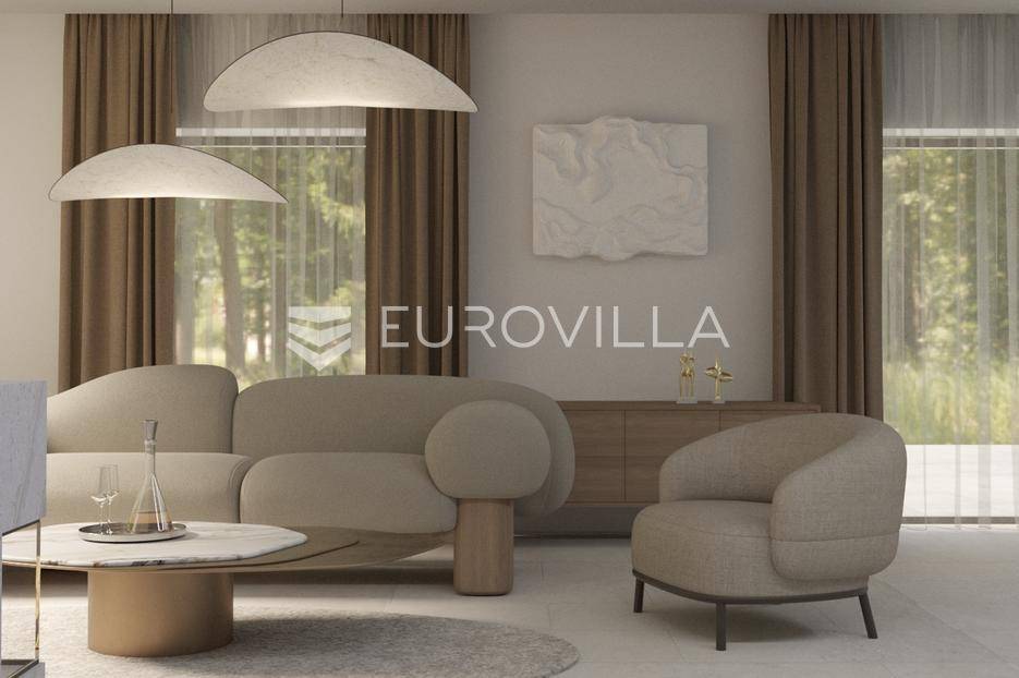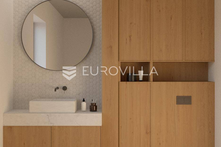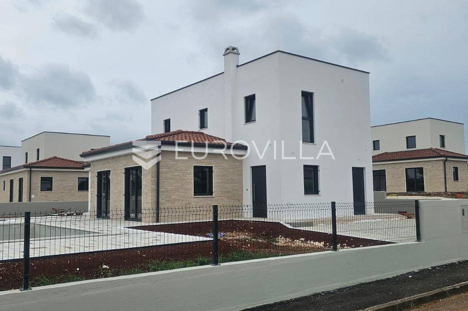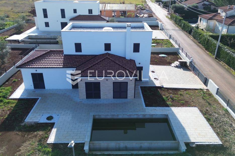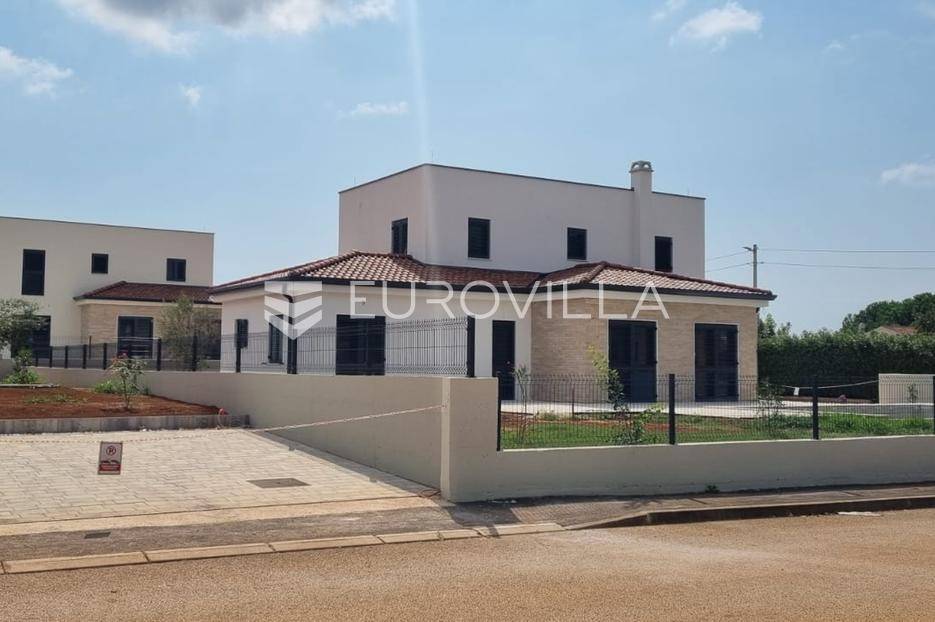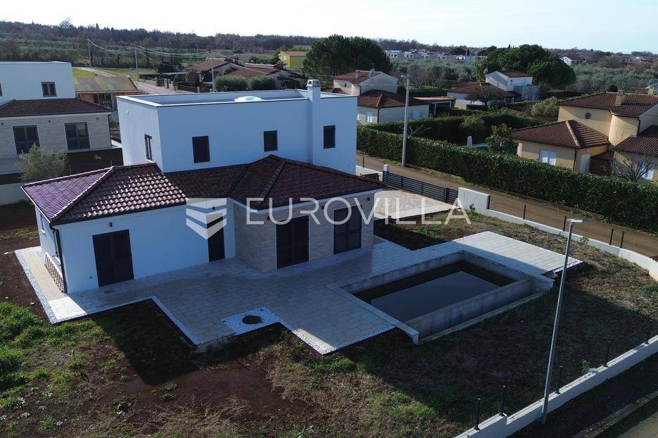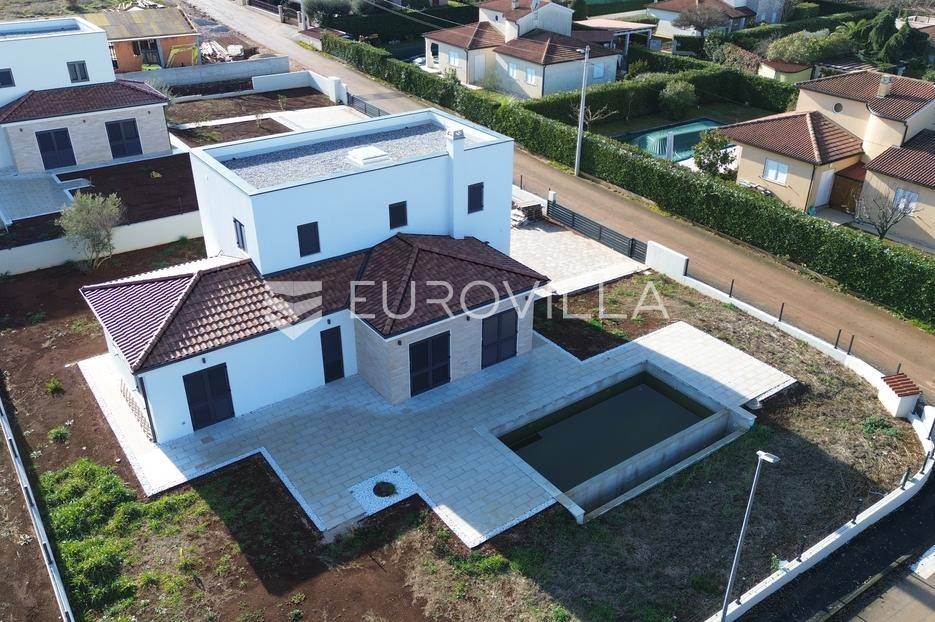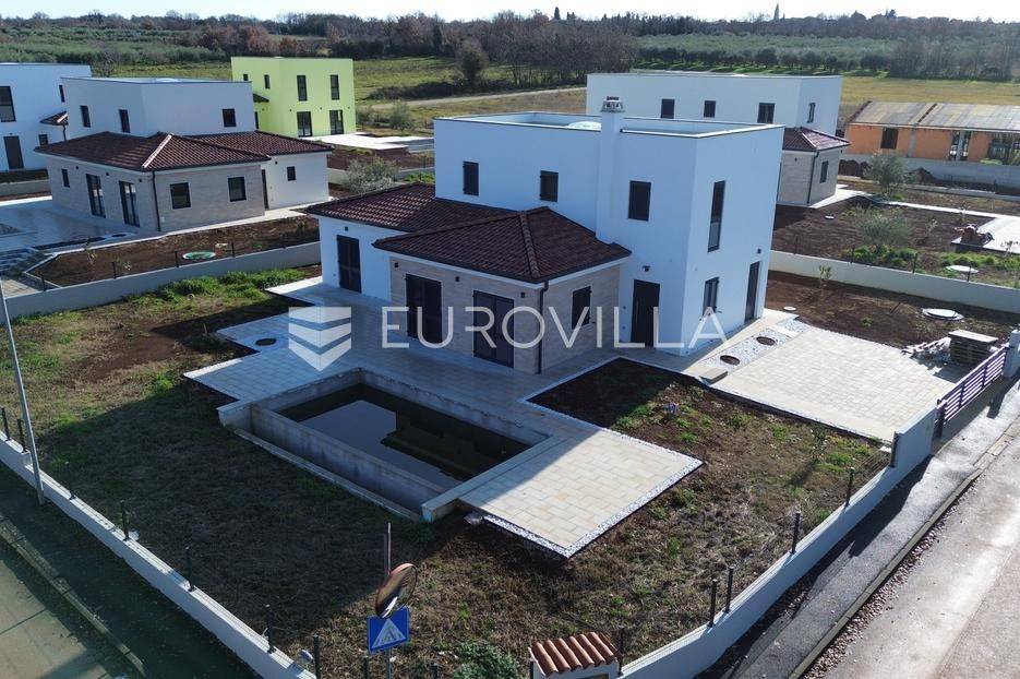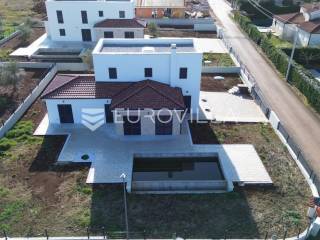 U Istri, nedaleko od Poreča, nalazi se prekrasna samostojeća kuća u mediteranskom stilu.Kuća se prostire na 2 etaže, neto površine 153m2:Prizemlje: predsoblje, gostinjski wc, vešeraj, open space kuhinja, blagovaonica i dnevni boravak sa izlazom na terasu sa sunčalištem i preljevnim bazenom, spavaća soba sa vlastitom kupaonicom i izlazom na terasu, strojarnica.Prvi kat: 2 prostrane spavaće sobe s vlastitim kupaonicama.Kuća također ima 2 velika natkrivena parkirna mjesta, pripremu za solarne panele, grijani bazen i prekrasnu okućnicu od 796m2.Cijena 1.235.000,00€ (PDV uključen).Za više informacija stojimo vam na raspolaganju.... Više na eurovilla.hr, ID: 623136