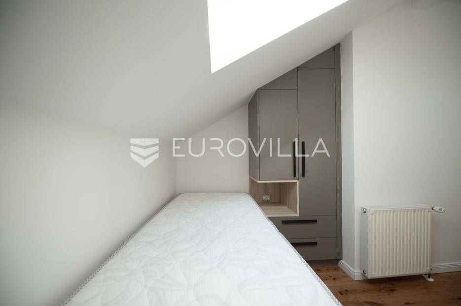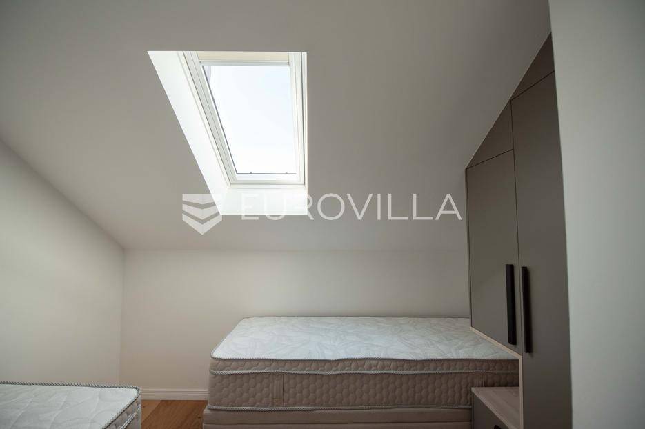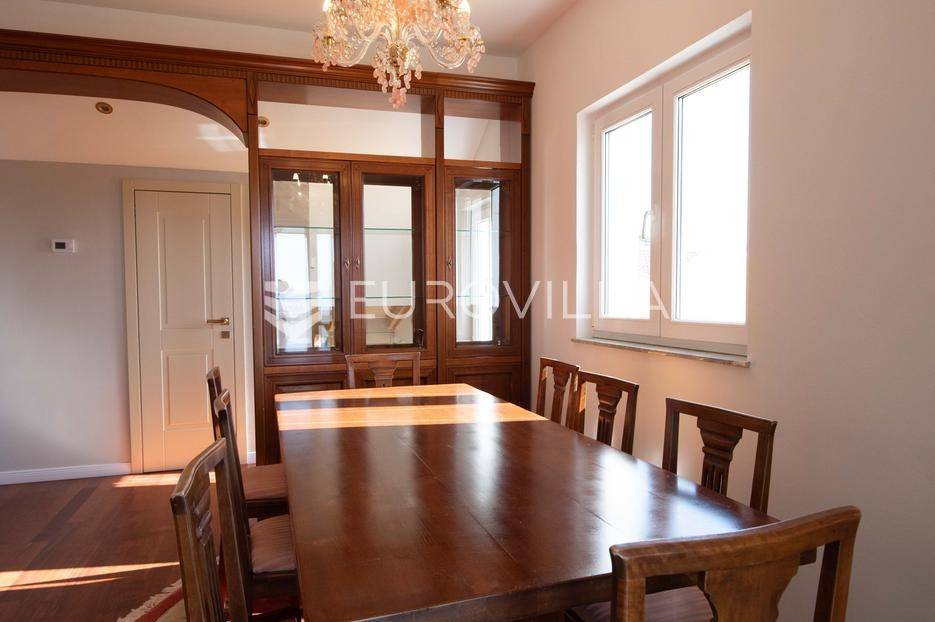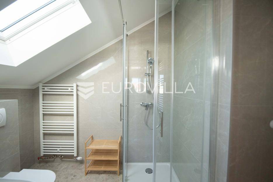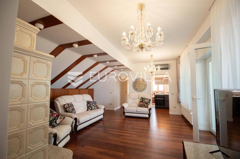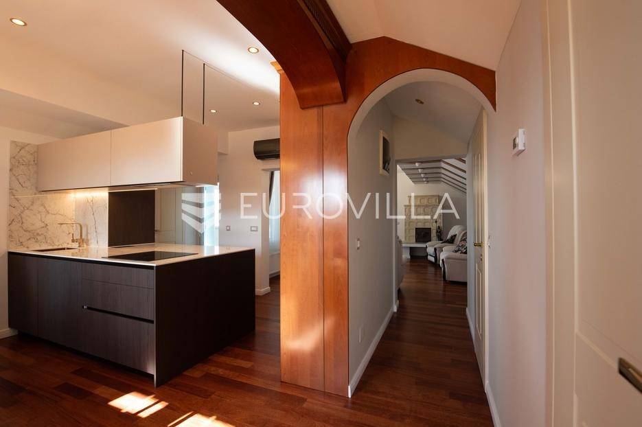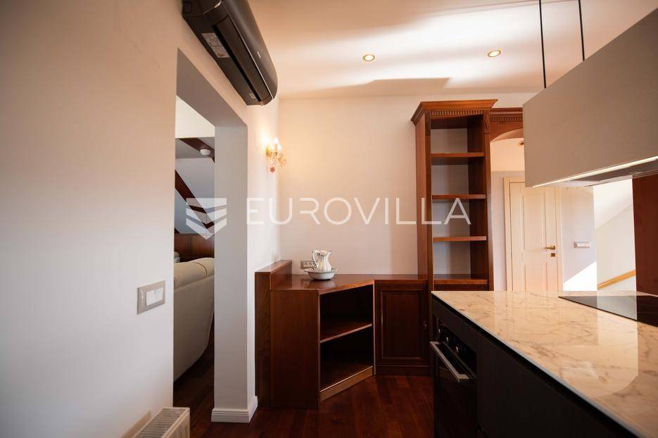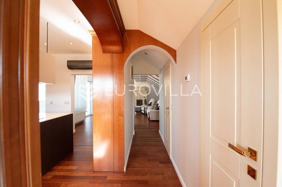 Zadar, Petrčane, luksuzno opremljen stan na atraktivnoj lokaciji, površine 168,38 m2.Nalazi se na drugom katu u visokom potkrovlju zgrade.Sastoji se od ulaznog prostora u kojem se nalazi ostava te garderoba, dvije komforne spavaće sobe, kuhinje i blagovaonice ( 18,68 m2), dnevnog boravka povšrine 29,50 m2, kupaonice, gostinjskog wc-a, vešeraja, dvije prostrane natkrivene terase s kojih se pruža prekrasan pogled na more i otoke.Stan je potpuno renoviran 2025. godine.Oprema:grijanje i hlađenje pute klima uređajacentralno grijanjekalijeva peć/kaminparket prve klasekeramičke pločice i sanitarije vrhunske klasevelux krovni prozorinova fasada i nove instalacijeStanu pripada jedno parkirno mjesto na kojem je moguće parkirati dva vozila.Udaljenost od mora i plaže je svega 80 metara.Nalazi se u mirnom dijelu apartmantskog naselja Punta Skala, u blizini svih sadržaja potrebnih za svakodnevi život.Ova nekretnina predstavlja izvrsnu priliku za one koji žele luksuzan život uz more. Izvrsna je i kao investicija za sve koji se žele baviti turizmom.Više informacija na upit.... Više na eurovilla.hr, ID: 633312