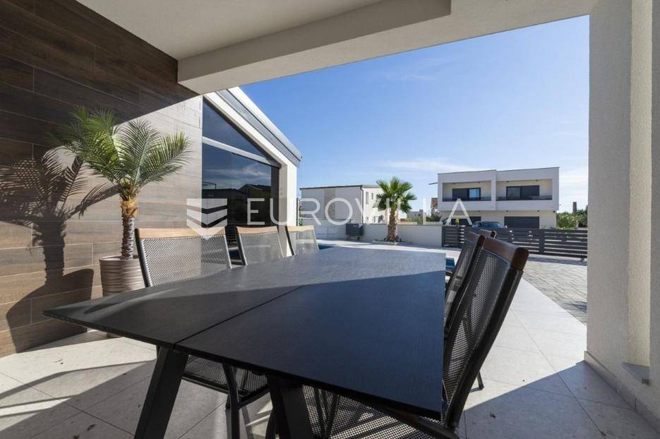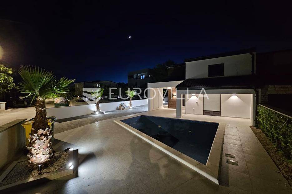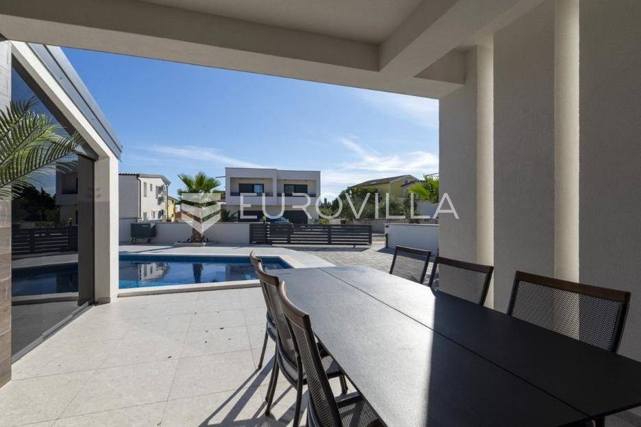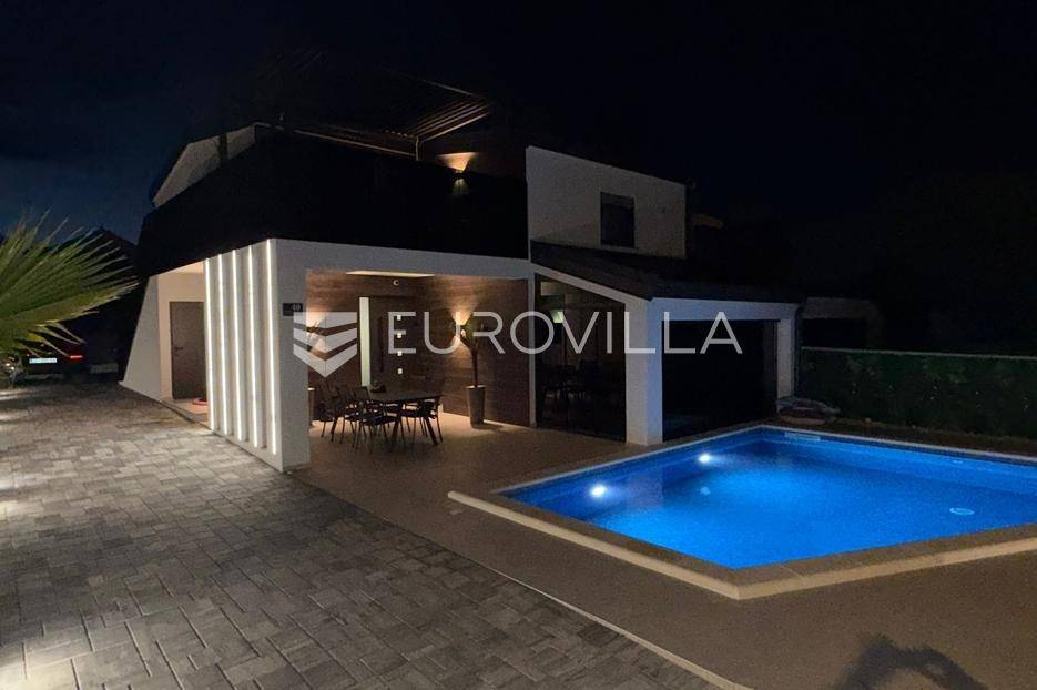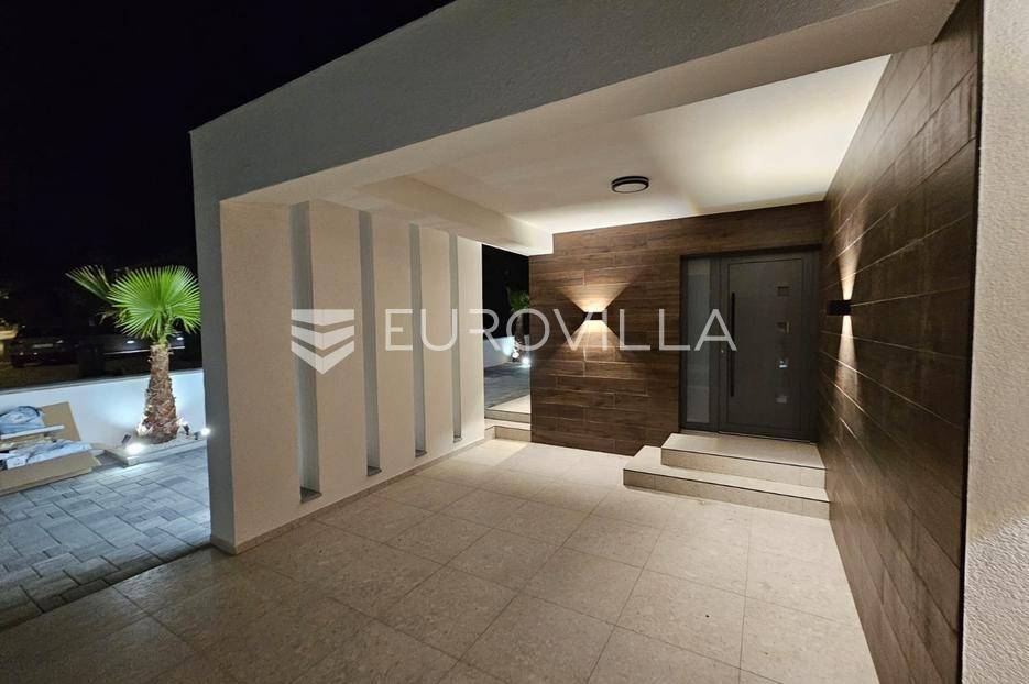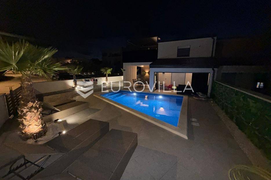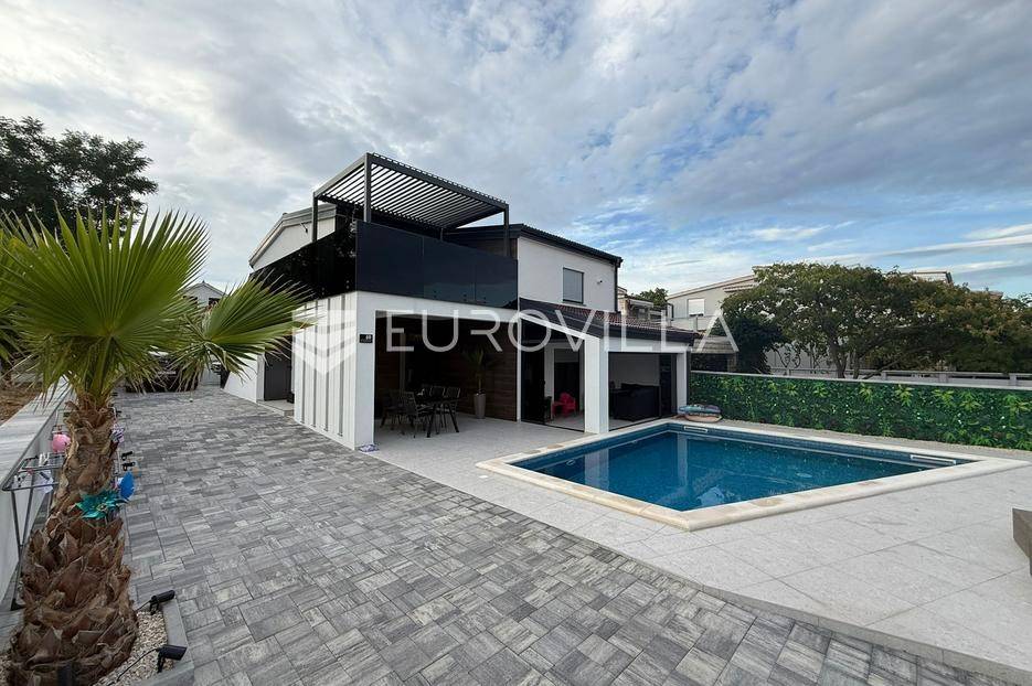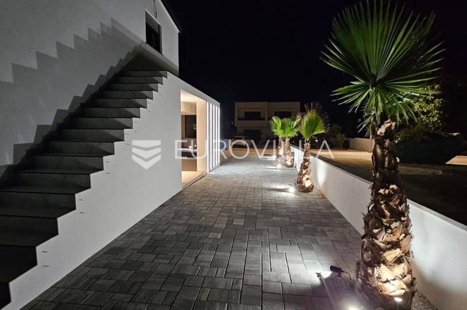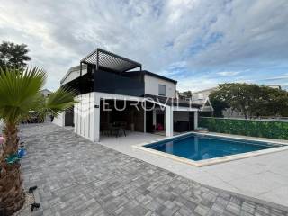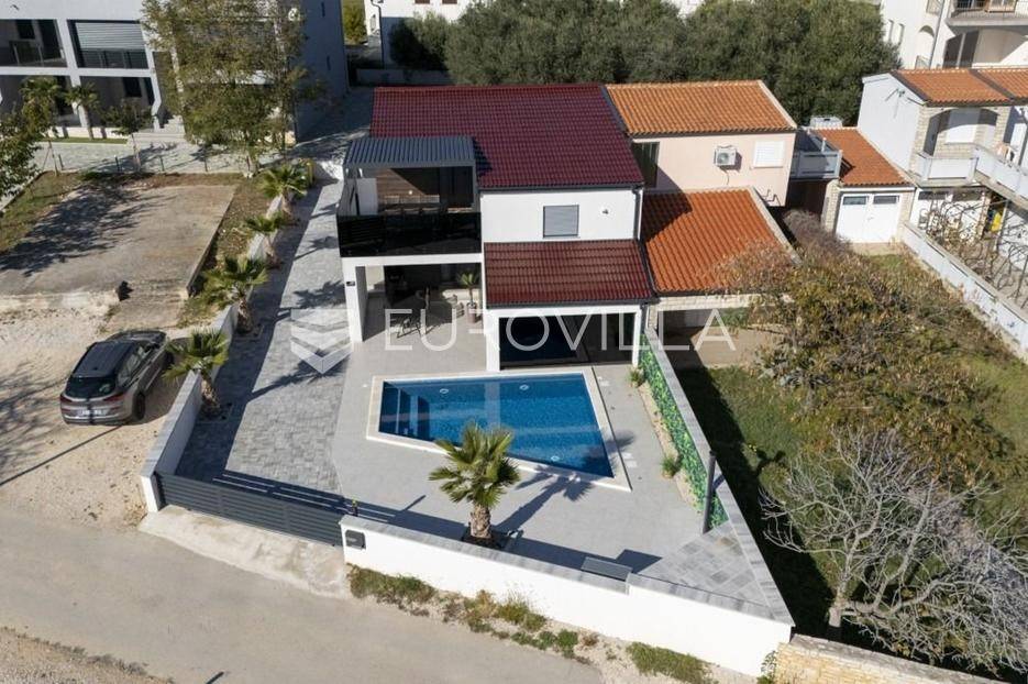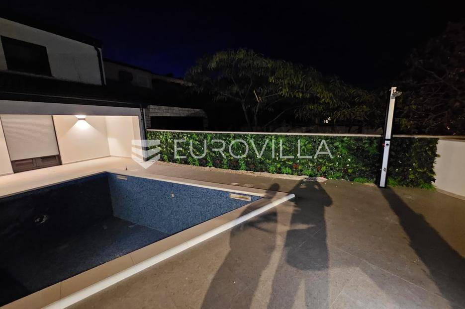 Na atraktivnoj lokaciji u blizini popularne plaže Jadro na otoku Viru smještena je ova moderna dvojna kuća s grijanim bazenom i dva potpuno odvojena stana, idealna za višegeneracijsko stanovanje ili turistički najam. Lokacija u mirnoj ulici, a opet na pješačkoj udaljenosti od centra i plaže, osigurava privatnost i udobnost.Ključne značajkePovršina zemljišta: 344 m²Grijani bazen: 28 m²Vanjski parking, uređena okućnica i palmeStan u prizemljuUnutarnja površina: 72 m²Natkrivena i zatvorena terasa: 36 m²Vanjsko spremište: 4 m²Ukupno: 112 m²Stan na katuUnutarnja površina: 72 m²Natkrivena terasa: 22 m²Ukupno: 94 m²Oba stana su moderno i luksuzno uređena, potpuno klimatizirana, s dizajnerskim namještajem i opremom visoke kvalitete. Prostrane terase i vanjski prostor s bazenom stvaraju savršeno mjesto za uživanje tijekom cijele godine.Zona Jadro poznata je po uređenim plažama, živopisnoj šetnici te brojnim restoranima i sadržajima, što je čini savršenim izborom za obiteljski odmor i turistički najam. Blizina centra, potpuna komunalna uređenost i visoka potražnja čine ovu lokaciju sigurnom i isplativom investicijom.Za dodatno više informacija stojimo na raspolaganju.... Više na eurovilla.hr, ID: 690880