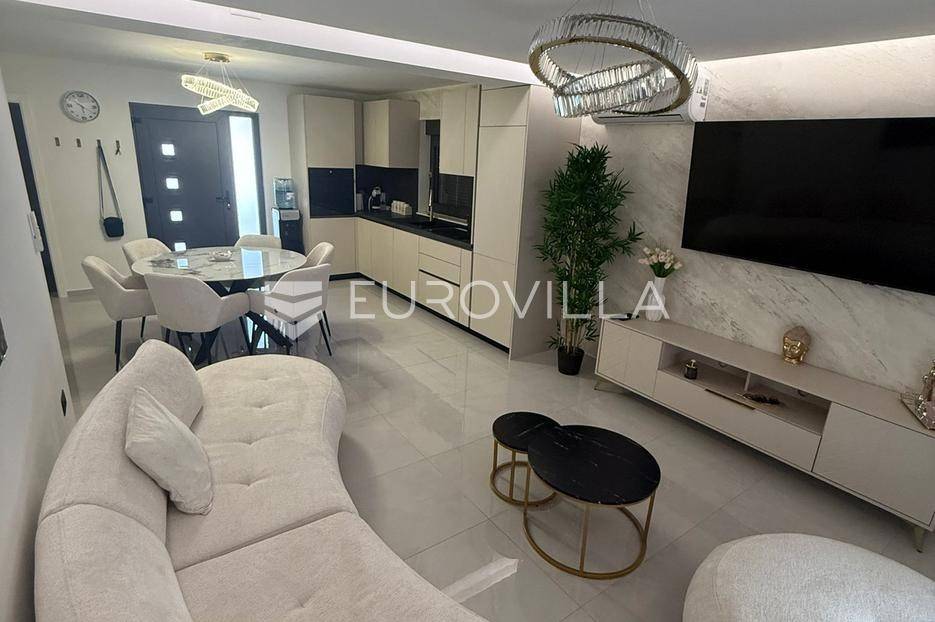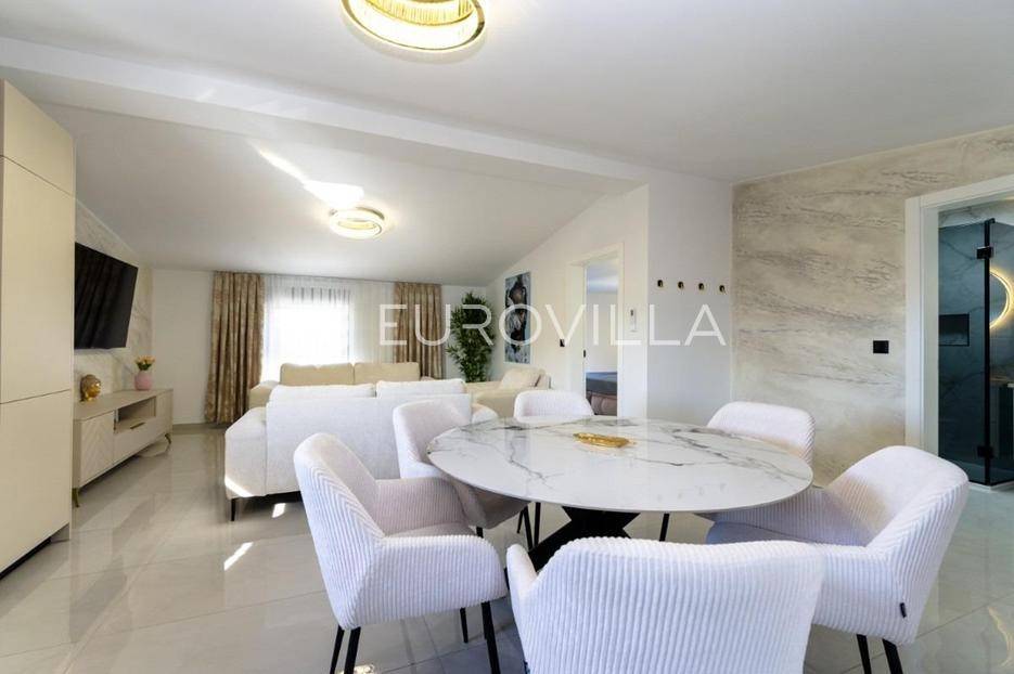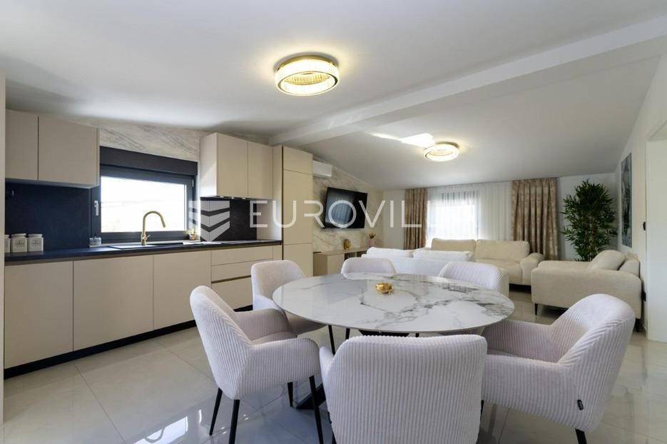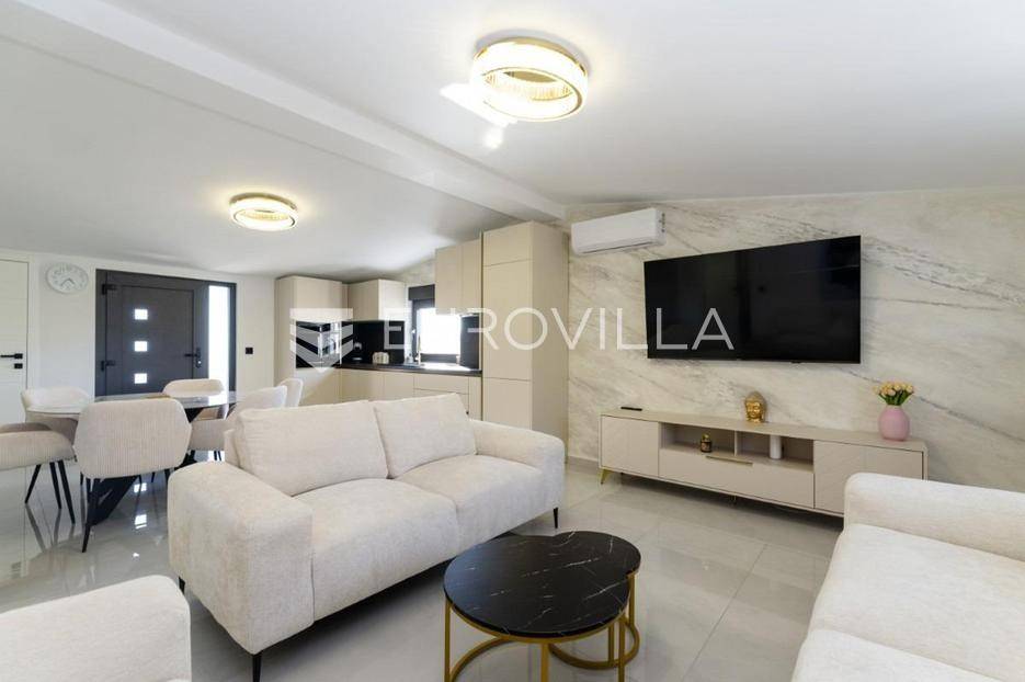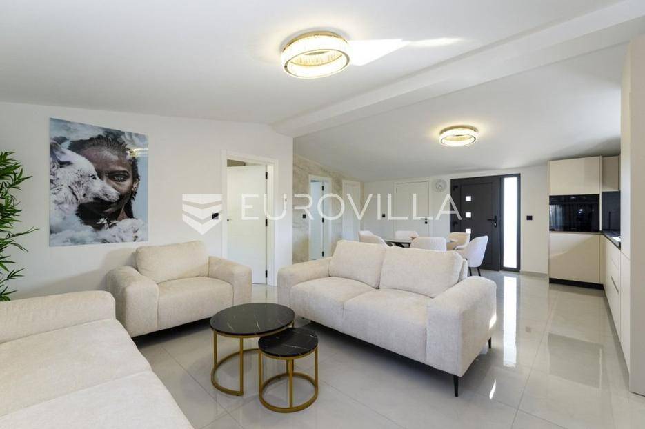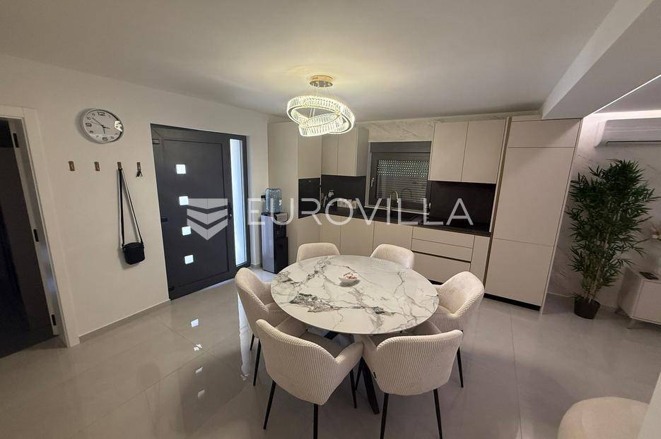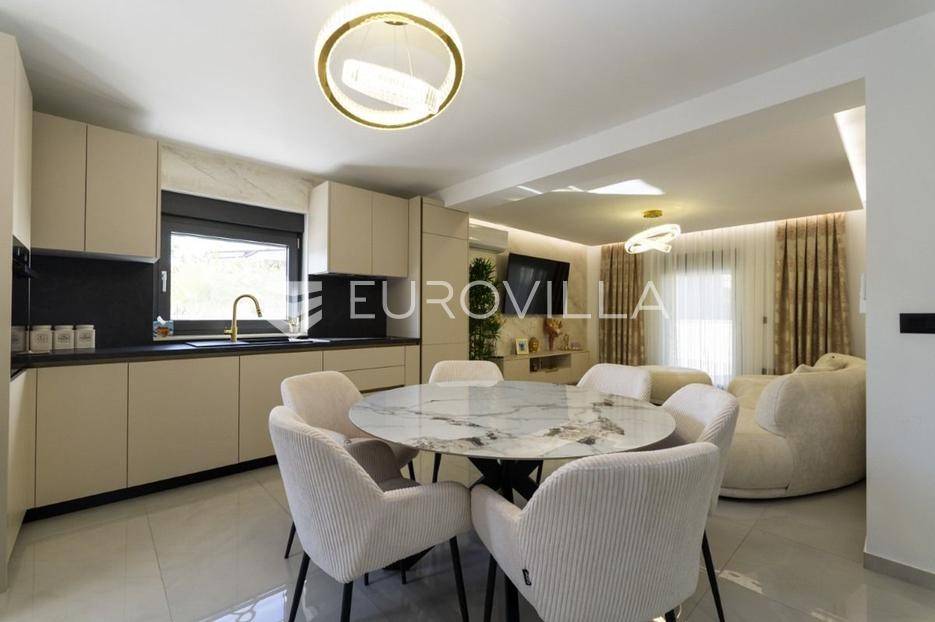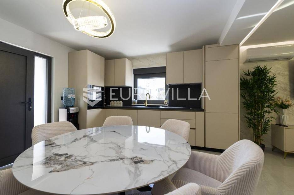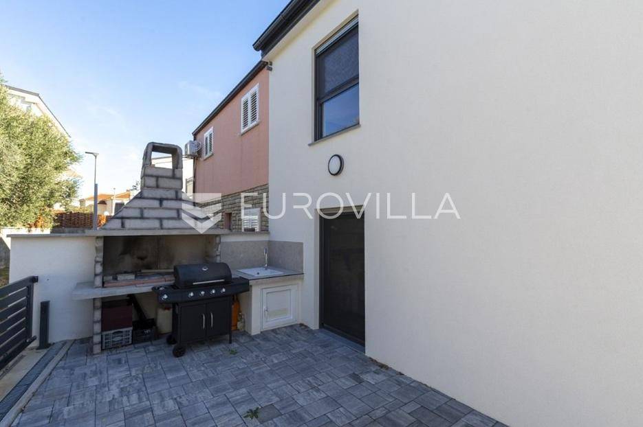 Na atraktivnoj lokaciji u blizini popularne plaže Jadro na otoku Viru smještena je ova moderna dvojna kuća s grijanim bazenom i dva potpuno odvojena stana, idealna za višegeneracijsko stanovanje ili turistički najam. Lokacija u mirnoj ulici, a opet na pješačkoj udaljenosti od centra i plaže, osigurava privatnost i udobnost.Ključne značajkePovršina zemljišta: 344 m²Grijani bazen: 28 m²Vanjski parking, uređena okućnica i palmeStan u prizemljuUnutarnja površina: 72 m²Natkrivena i zatvorena terasa: 36 m²Vanjsko spremište: 4 m²Ukupno: 112 m²Stan na katuUnutarnja površina: 72 m²Natkrivena terasa: 22 m²Ukupno: 94 m²Oba stana su moderno i luksuzno uređena, potpuno klimatizirana, s dizajnerskim namještajem i opremom visoke kvalitete. Prostrane terase i vanjski prostor s bazenom stvaraju savršeno mjesto za uživanje tijekom cijele godine.Zona Jadro poznata je po uređenim plažama, živopisnoj šetnici te brojnim restoranima i sadržajima, što je čini savršenim izborom za obiteljski odmor i turistički najam. Blizina centra, potpuna komunalna uređenost i visoka potražnja čine ovu lokaciju sigurnom i isplativom investicijom.Za dodatno više informacija stojimo na raspolaganju.... Više na eurovilla.hr, ID: 690880