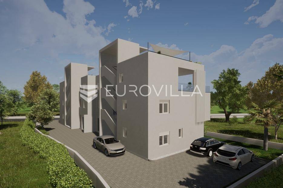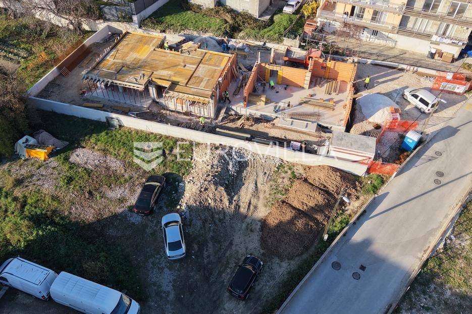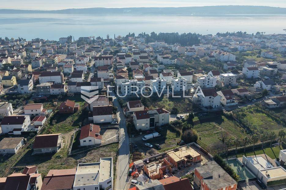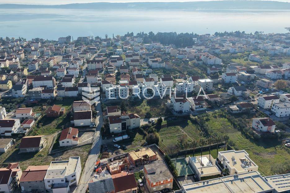 EKSKLUZIVNA PRODAJA | Kaštel Lukšić, trosoban penthouse položen na drugoj etaži manje stambene zgrade s privatnom krovnom terasom i pogledom na more.Stan je podijeljen na tri spavaće sobe, dvije kupaonice ( od kojih je jedna u sklopu glavne spavaće sobe ), hodnik, kuhinju s blagovaonicom , te dnevnog boravka s izlazom na terasu površine 26, 7 m2. Stanu pripada prostrana krovna terasa s pogledom na more površine 94, 68 m2, te dva vanjska nenatkrivena parkirna mjesta uz objekt.Površina zatvorenog stambenog prostora iznosi 73, 45 m2, a ukupna neto korisna površina stana s pripadajućim dijelovima ( balkon, terasa, krovna terasa i dva parkirna mjesta ) iznosi 126, 34 m2.Gradnja objekta će započeti u Rujnu 2025 godine, dok se useljenje očekuje najkasnije do ljeta 2027 godine.Svi stanovi će biti opremljeni podnim grijanjem, klima jedinicom, električnim roletama, te velikim kliznim stjenkama koje će u kombinaciji s južnom orijentacijom omogućiti ugodan dnevni prostor s puno svjetlosti.Lokacija je pogodna za miran život , u blizini svih potrebnih sadržaja. Parcela je položena uz cestu širine 5,5 metara, koja spaja staru i novu kaštelansku cestu, što olakšava pristup i povezanost automobilom. U blizini su osnovna škola, trgovine, restorani, a do plaže treba otprilike 10- 15 minuta laganog hoda.Za sve dodatne informacije, stojimo Vam na raspolaganju.... Više na eurovilla.hr, ID: 690977