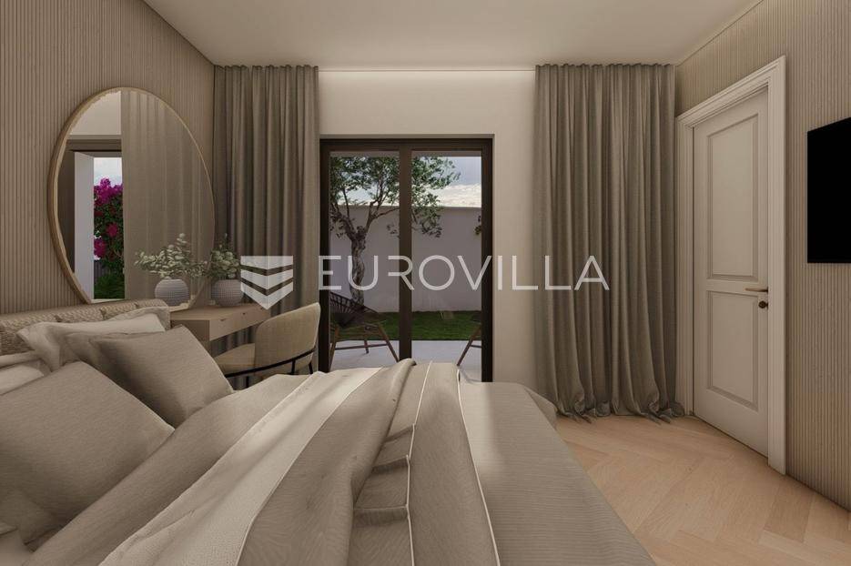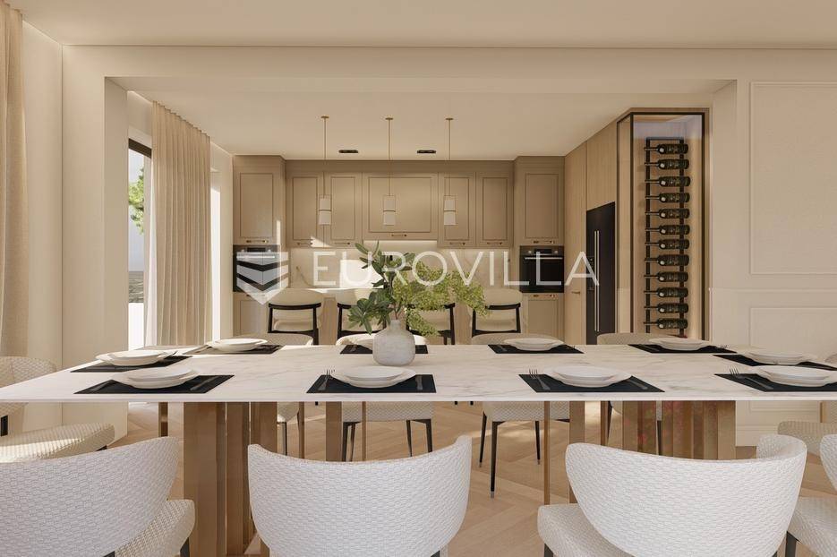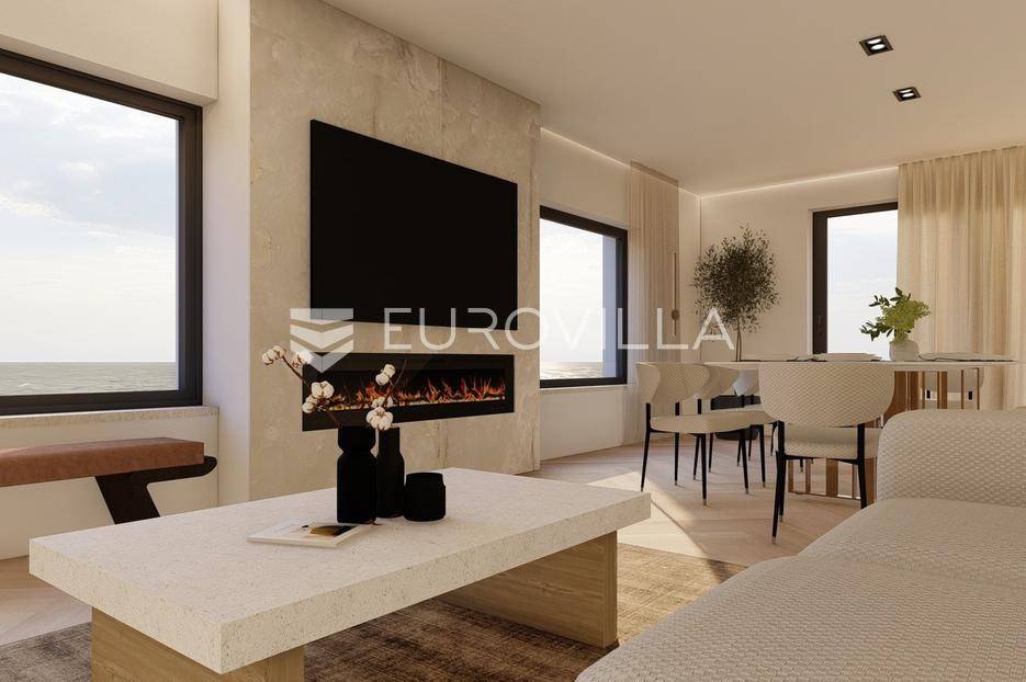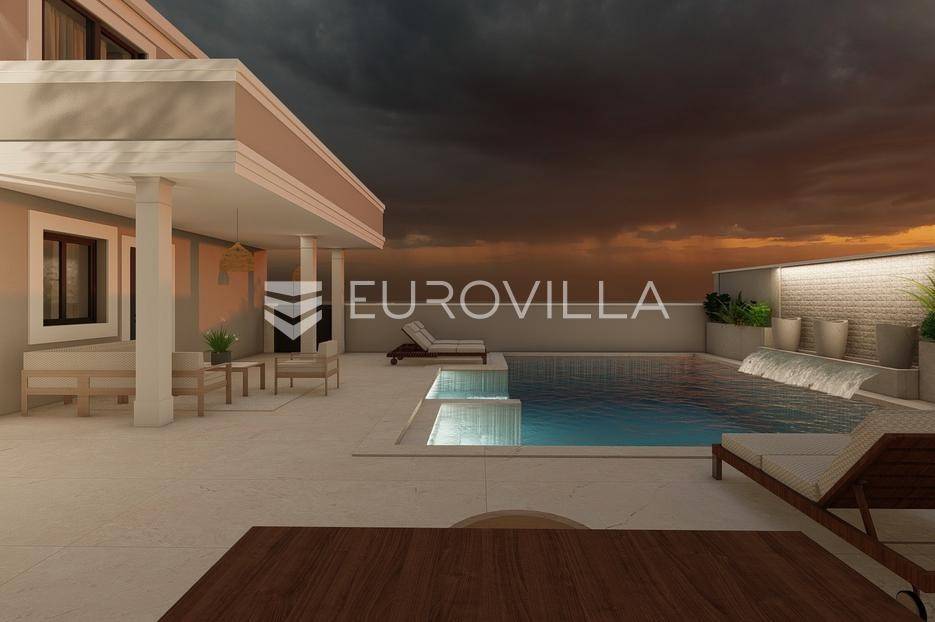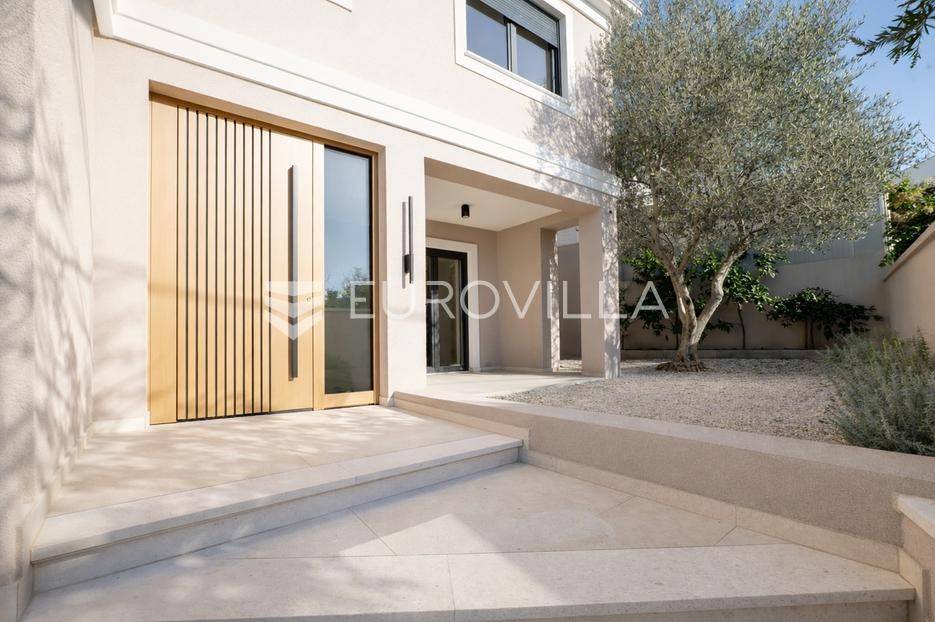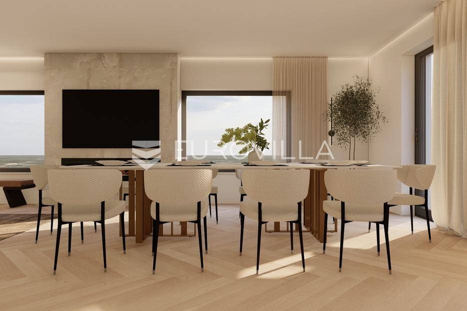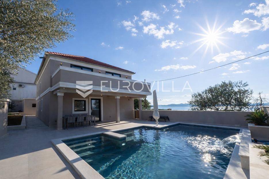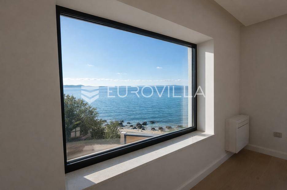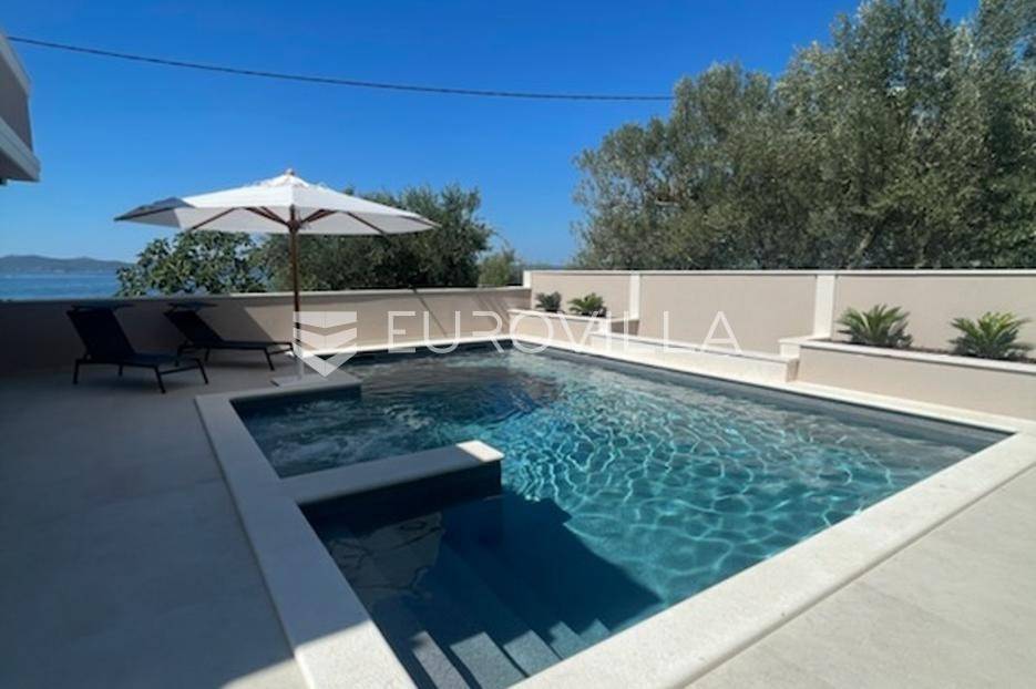 U prestižnom i mirnom dijelu Zadar, u naselju Diklo, smještena je ova ekskluzivna moderna vila u prvom redu do mora, koja objedinjuje vrhunsku arhitekturu, funkcionalan raspored i jednu od najtraženijih mikrolokacija na zadarskom području.Novogradnja iz 2025. godine prostire se na 246 m² stambene površine, na parceli od 749 m², s uređenom mediteranskom okućnicom i maslinikom. Vila je udaljena svega 5 metara od mora te pruža otvoren, neometan pogled na more i zalaske sunca. Orijentacija istok-jug-zapad osigurava obilje prirodne svjetlosti tijekom cijelog dana.Raspored:Prizemlje obuhvaća ulazni prostor, tri komforne spavaće sobe - svaka s vlastitom kupaonicom, loggiu, natkrivenu terasu, vešeraj te dodatnu multifunkcionalnu prostoriju idealnu za teretanu, ured ili prostor za rekreaciju.Unutarnjim stubištem dolazi se na prvi kat, gdje se nalazi prostran i svijetao dnevni boravak povezan s kuhinjom i blagovaonicom, master spavaća soba s walk-in garderobom za nju i njega te vlastitom kupaonicom, zaseban toalet i velika terasa s panoramskim pogledom na more.Vanjski prostor:Poseban naglasak stavljen je na vanjski dio vile - bazen površine 49 m², jacuzzi, uređeni vrt s maslinikom, grill zona, vanjski sanitarni čvor te zatvoreni multifunkcionalni prostor od 20 m² koji se može koristiti kao wellness, spa, gym ili radni prostor.Vila je opremljena smart home sustavom, pružajući visoku razinu udobnosti i sigurnosti.Projektirana s pripremom za ugradnju solarnih panela (fotonaponski sustav), uz predviđenu infrastrukturu za buduću instalaciju.Nekretnina omogućuje parkiranje četiri vozila, uz predviđenu instalaciju prema izboru vlasnika za ugradnju punionica za električna vozila.Diklo je poznat po uređenim šljunčanim plažama, iznimnoj čistoći mora i mirnom okruženju, a istovremeno se nalazi u neposrednoj blizini svih sadržaja grada. Zračna luka Zadar udaljena je približno 15 km.Ova nekretnina predstavlja rijetku priliku na tržištu - savršena kao privatna rezidencija ili luksuzna investicija za odmor i najam.Za dodatne informacije i dogovor oko razgledavanja, stojimo na raspolaganju.... Više na eurovilla.hr, ID: 741125