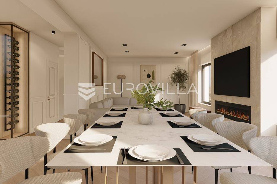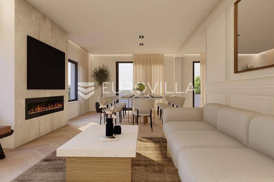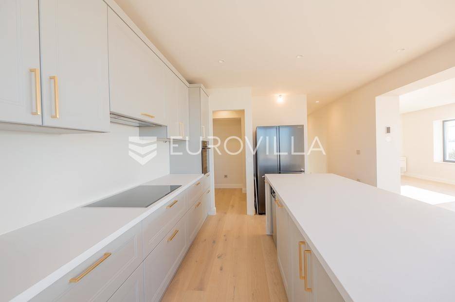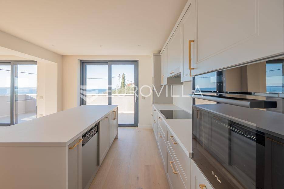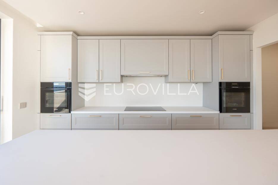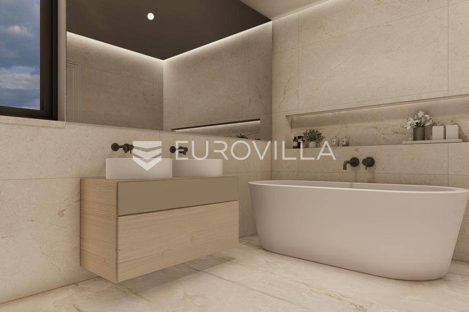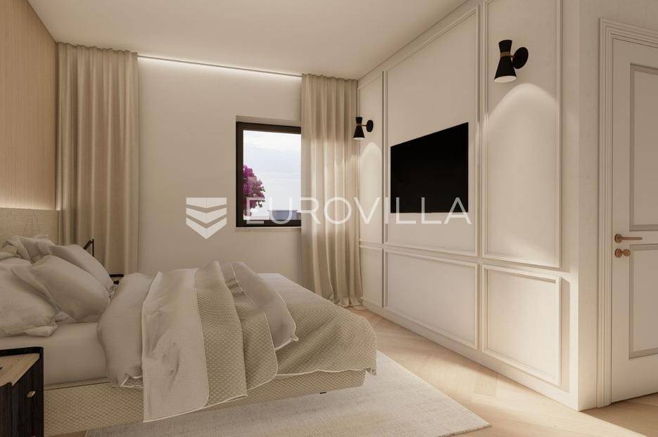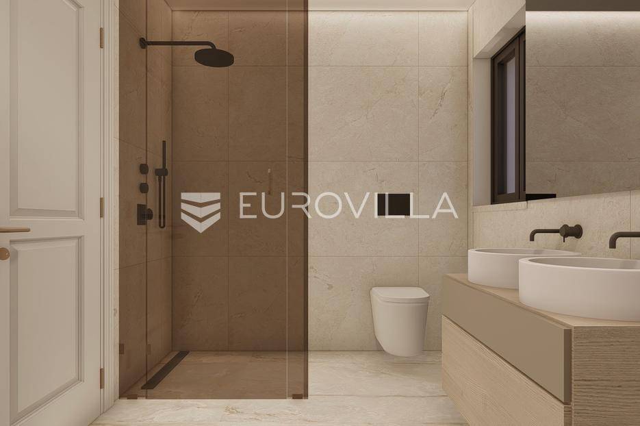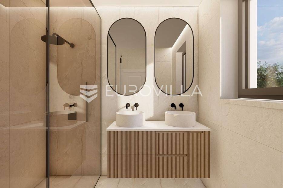 U prestižnom i mirnom dijelu Zadar, u naselju Diklo, smještena je ova ekskluzivna moderna vila u prvom redu do mora, koja objedinjuje vrhunsku arhitekturu, funkcionalan raspored i jednu od najtraženijih mikrolokacija na zadarskom području.Novogradnja iz 2025. godine prostire se na 246 m² stambene površine, na parceli od 749 m², s uređenom mediteranskom okućnicom i maslinikom. Vila je udaljena svega 5 metara od mora te pruža otvoren, neometan pogled na more i zalaske sunca. Orijentacija istok-jug-zapad osigurava obilje prirodne svjetlosti tijekom cijelog dana.Raspored:Prizemlje obuhvaća ulazni prostor, tri komforne spavaće sobe - svaka s vlastitom kupaonicom, loggiu, natkrivenu terasu, vešeraj te dodatnu multifunkcionalnu prostoriju idealnu za teretanu, ured ili prostor za rekreaciju.Unutarnjim stubištem dolazi se na prvi kat, gdje se nalazi prostran i svijetao dnevni boravak povezan s kuhinjom i blagovaonicom, master spavaća soba s walk-in garderobom za nju i njega te vlastitom kupaonicom, zaseban toalet i velika terasa s panoramskim pogledom na more.Vanjski prostor:Poseban naglasak stavljen je na vanjski dio vile - bazen površine 49 m², jacuzzi, uređeni vrt s maslinikom, grill zona, vanjski sanitarni čvor te zatvoreni multifunkcionalni prostor od 20 m² koji se može koristiti kao wellness, spa, gym ili radni prostor.Vila je opremljena smart home sustavom, pružajući visoku razinu udobnosti i sigurnosti.Projektirana s pripremom za ugradnju solarnih panela (fotonaponski sustav), uz predviđenu infrastrukturu za buduću instalaciju.Nekretnina omogućuje parkiranje četiri vozila, uz predviđenu instalaciju prema izboru vlasnika za ugradnju punionica za električna vozila.Diklo je poznat po uređenim šljunčanim plažama, iznimnoj čistoći mora i mirnom okruženju, a istovremeno se nalazi u neposrednoj blizini svih sadržaja grada. Zračna luka Zadar udaljena je približno 15 km.Ova nekretnina predstavlja rijetku priliku na tržištu - savršena kao privatna rezidencija ili luksuzna investicija za odmor i najam.Za dodatne informacije i dogovor oko razgledavanja, stojimo na raspolaganju.... Više na eurovilla.hr, ID: 741125