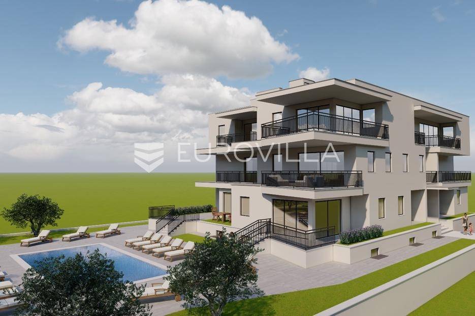 Istra, Umag, samo 400 m do prvih plaža i 4 kilometra od grada Umaga smjestila se ova moderna zgrada. Stan oznake S1A, nalazi se u prizemlju zgrade od ukupno 12 stanova, ukupne površine 82,50 m2, a sastoji se od ulaznog pretprostora (6,75 m2), dnevnog boravka (27,85 m2), natkrivene terase (4,45 m2), nenatkrivene terase (0,60 m2),spavaće sobe (11,00 m2), spavaće sobe (9,95 m2), spavaće sobe (10,35), kupaonice (6,10 m2), i jednog gostinjskog toaleta (5,00 m2). Stanu još pripada jedno parkirno mjesto i ostava (3,85 m2) u podzemnoj garaži.Zgrada će biti opremljena visokokvalitetnim keramičkim pločicama, troslojnim parketom u spavaćim sobama, kvalitetnim sanitarijama, vodenim podnim grijanjem s dizalicom topline, klima uređajima u obliku fen coilera, smart home sustavom upravljanja, Alu i Pvc stolarijom s elektropodizačima roleta, razvod za alarm.U sklopu vrta zgrade bit će postavljen bazen, ukupne veličine 6 x 10 m, s mogućnošću zagrijavanja vode u predsezoni i posezoni. Stanarima će biti ponuđena opcija korištenja bazena uz godišnju naknadu.Za sva ostala pitanja stojimo Vam na raspolaganju!... Više na eurovilla.hr, ID: 747602