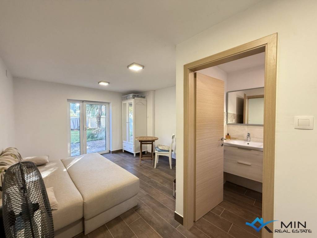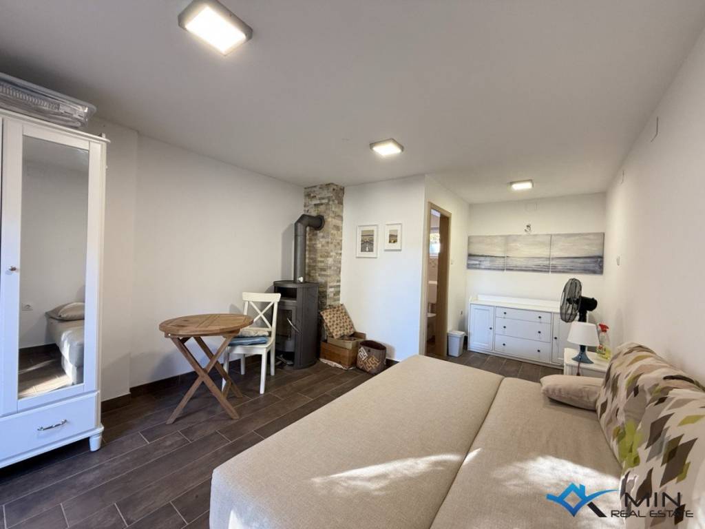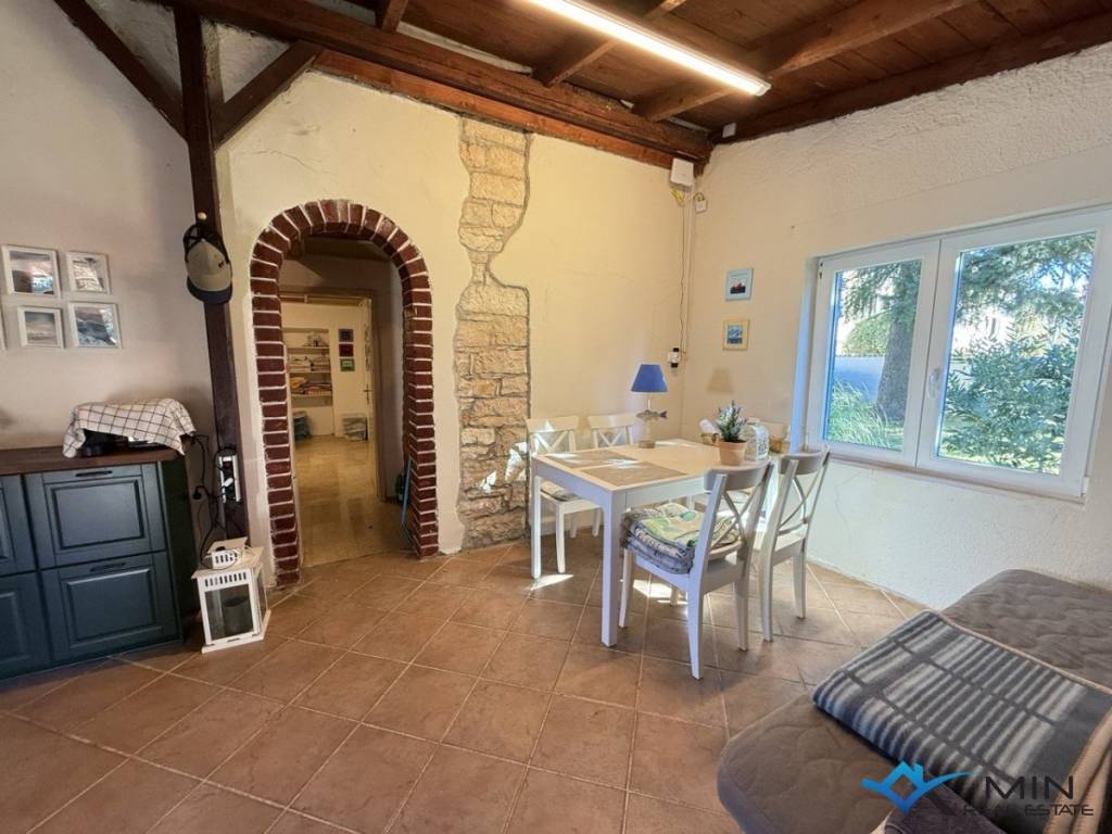A detached house with great potential for sale in a highly sought-after location in Novigrad. The house measures 139 m, plus a summer kitchen of 29 m, and sits on a plot of 664 m. On the ground floor, there is a hallway, living room, bathroom, and bedroom. Upstairs, there is a second bedroom with access to a terrace overlooking the garden. The property also includes a separate studio apartment with its own entrance, which can be used independently. The house is located 250 metres from the sea and a beautifully maintained beach, and just 700 metres from the town centre.