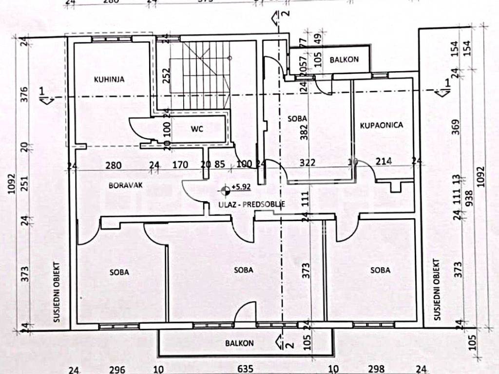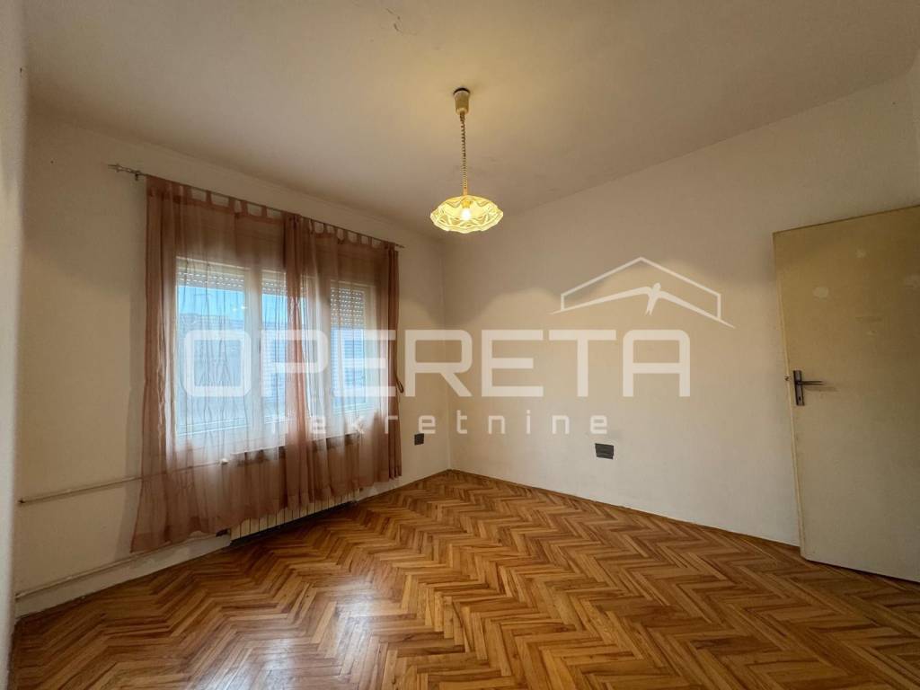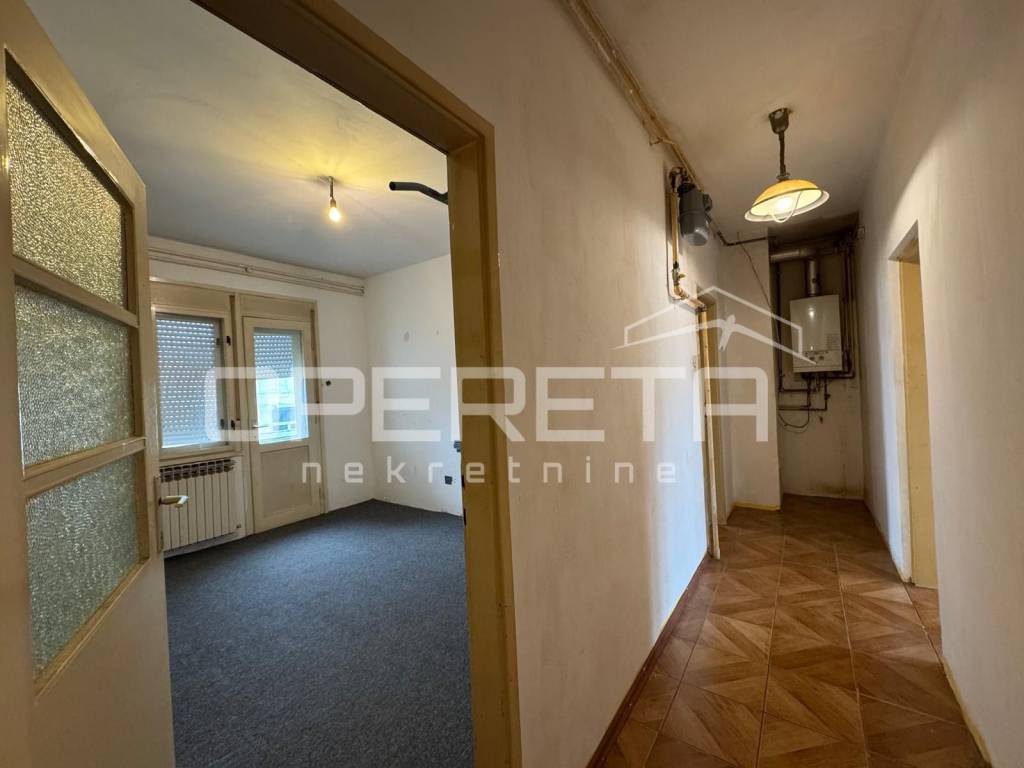 Prodaje se 5soban stan na odličnoj lokaciji u blizini svih sadržaja potrebnih za život (škola vrtić, trgovine, garden mall), odlično prometno povezan (bus i tram. u krugu 200m). Stan je sjajan tlocrtno i nudi mogućnost prenamjene u 2 stana. Sastoji se od ulaznog dijela-predsoblja, boravka, kuhinje, 4 spavaće sobe, kupaonice s wc-om, wc-a i 2 balkona (6,66m2 i 3,16m2). Iznad stana se nalazi još jedan stan u potkrovlju. Krovište zgrade je kompletno promijenjeno 2015 g. Stan je u stanju koje zahtjeva kompletnu adaptaciju. Uredno vlasništvo!