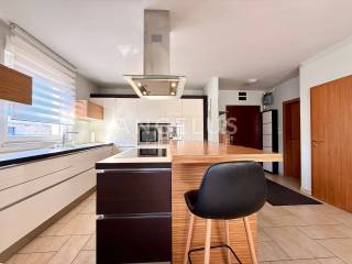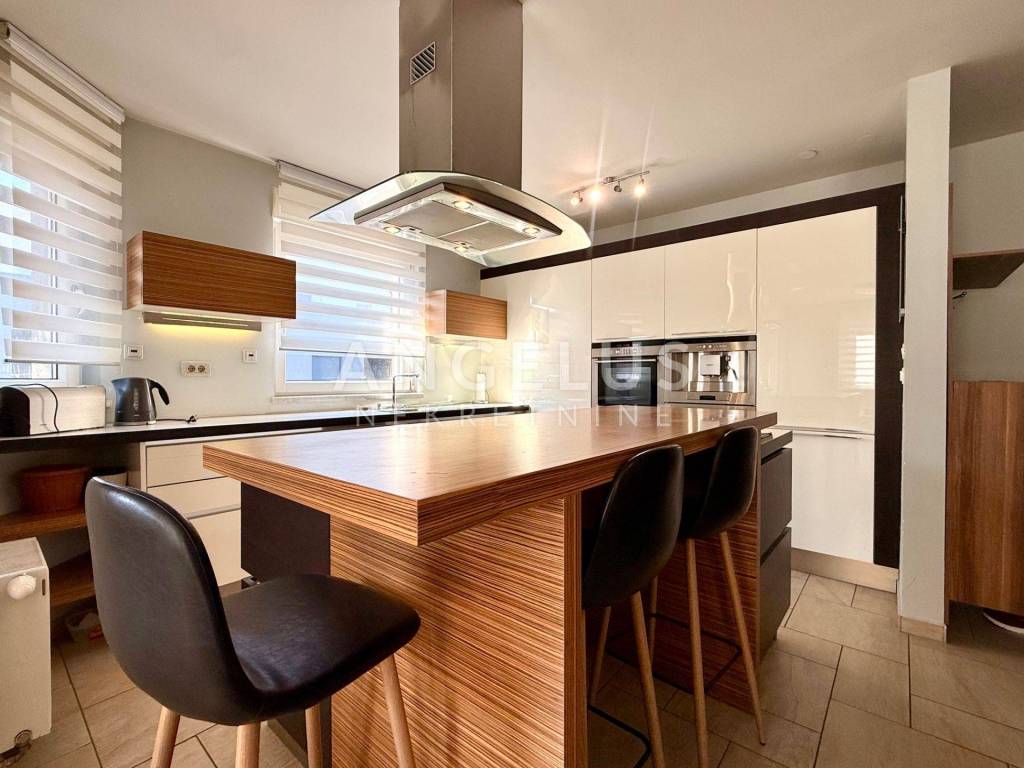 The duplex apartment of approximately 86m2 consists of two floors, the lower and upper. On the lower floor there is an entrance hall from which there is access to almost all rooms in the apartment, an open space in which there is a large open kitchen fully furnished and equipped with Siemens and Miele appliances, a dining room and living room with access to a balcony, a laundry room and a bathroom with a shower. On the upper floor there is a large bedroom with access to a balcony, a smaller room and a bathroom with a bathtub and a shower.