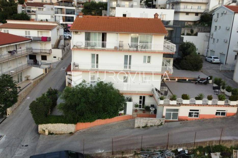 Podstrana, Strožanac, samostojeća kuća razvedena u četiri etaže, s ukupno šest odvojenih stambenih jedinica.Suteren - garaža 1 površine 111 m2 s priključkom struje od 26 kW, garaža 2 površine 35 m2 i spremište ( 28 m2 ).Prizemlje je podijeljeno na jedna jednosoban stan ( hodnik, kupaonica, spavaća soba i dnevni boravak ) , te studio apartman ( kuhinja, kupaonica i dnevni prostor ).Prva i druga etaža su u naravi dva trosobna stana iste površine ( 83, 29 m2 stambenog prostora, koji se sastoje od hodnika, kupaonice, tri spavaće sobe, wc-a, dnevnog boravka, kuhinje i terase/ balkona.Na trećoj, ujedno i posljednjoj etaži su položena dva jednosobna stana ( hodnik, kupaonica, spavaća soba, dnevni boravak/ kuhinja ) s predivnim pogledom na more.Objekt se nalazi na dobroj lokaciji, u blizini svih potrebnih sadržaja ( trgovine, plaže, restorani, škola, autobusna stanica ).Za sve ostale informacije, stojimo vam na raspolaganju.... Više na eurovilla.hr, ID: 830863