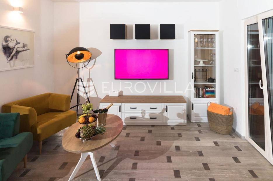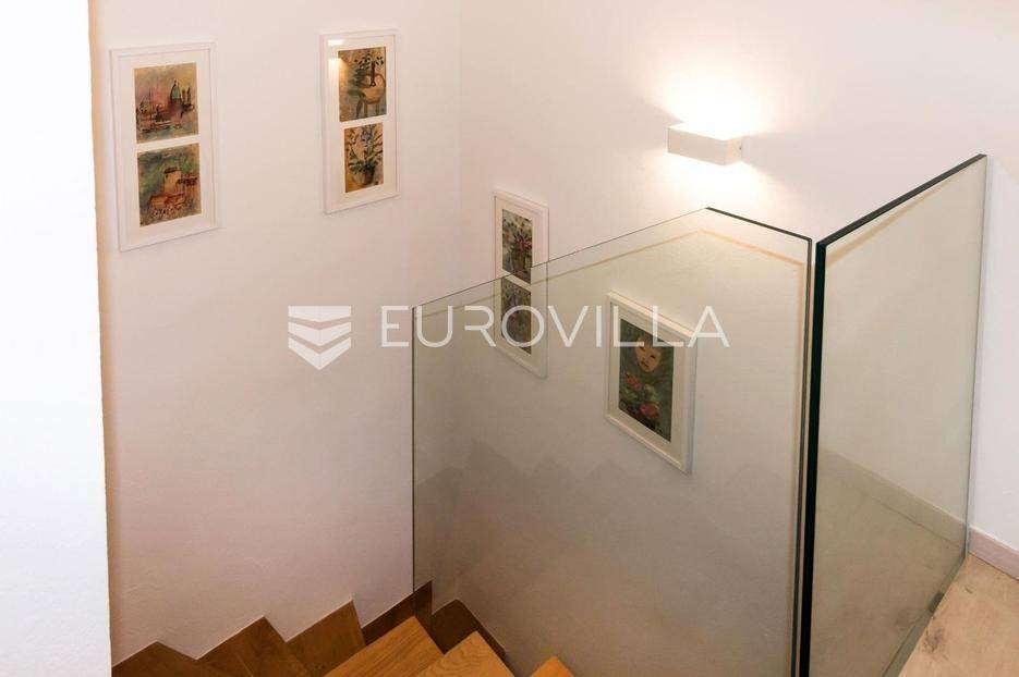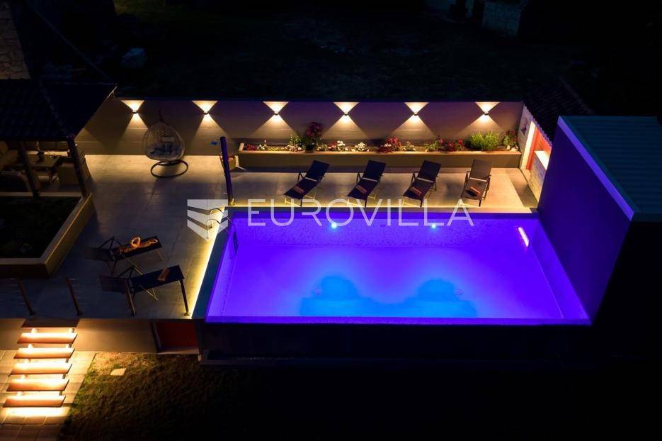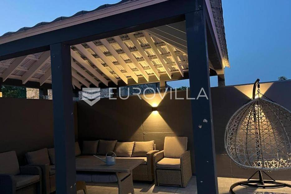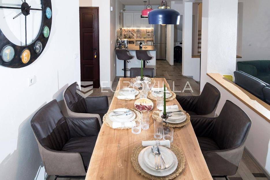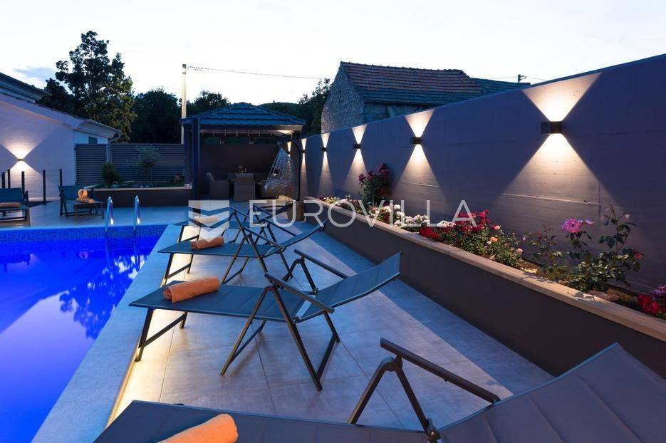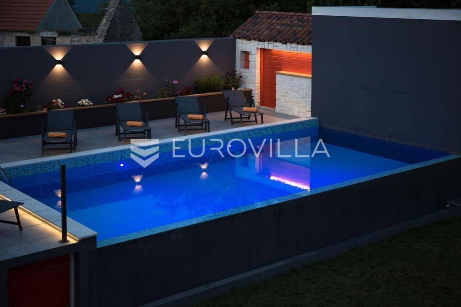 U mirnim Lokvičićima kod Imotskog, prodaje se moderna kuća za odmor s vanjskim bazenom, terasom za druženje i prostranom okućnicom.Kuća ima 91 m2, a smještena je na parceli od ukupno 535 m2.Unutarnji prostor podijeljen je na dvije etaže. Prizemlje je podjeljeno na se kuhinju, blagovaonicu, dnevni boravak i kupaonicu, dok su na katu spavaće sobe s pripadajućim kupaonicama , te prostran balkon po cijeloj dužini kuće.Prizemlje ima izlaz na dio ograđenog dvorišta s prekrasnom natkrivenom terasom za druženje, bazenom i sunčalištem. U nastavku uređenog vrta nalazi se moderan kamin s natkrivenim dijelom za zaštitu od kiše i jakog sunca.Pored bazena nalazi se vrtna kućica koja sada služi za spremanje stvari sa sunčališta i kao pomoćna kuhinja za natkrivenu terasu s blagovaonskim stolom. Uz kuću se nalazi opremljen privatni fitness prostor, a ispod njega je dodatna skladišna prostorija u podrumu. Pored toga se nalazi nastrešnica za tri parkirna mjesta, dok je nenatkrivenih vanjskih mjesta oko kuće još nekoliko.Ova nekretnina idealna je za odmor u netaknutoj prirodi Dalmatinske zagore ili kao atraktivna investicija.Za sve dodatne informacije, stojim Vam na raspolaganju.... Više na eurovilla.hr, ID: 831584