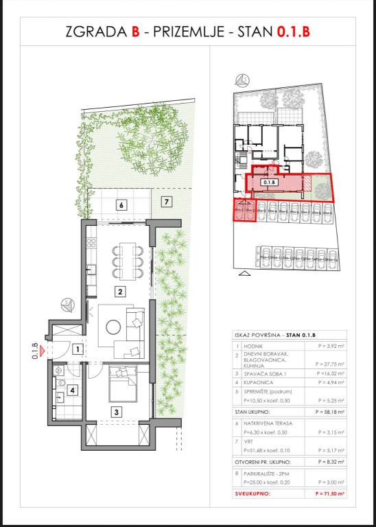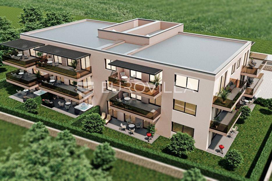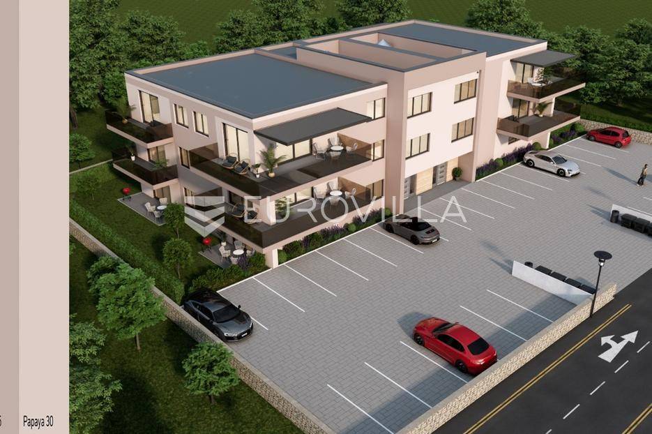 Istra, Tar, na prodaju je elegantan jednosoban stan smješten u prizemlju zgrade B, koja je dio modernog stambenog projekta s dvije zgrade i ukupno 16 stanova vrhunske kvalitete.Stan oznake 0.1.B ukupne obračunske površine 71,50 m² nudi 58,18 m² zatvorenog stambenog prostora, a sastoji se od hodnika, prostranog dnevnog boravka s kuhinjom i blagovaonicom, jedne udobne spavaće sobe te kupaonice. Dodatnu vrijednost stanu daje natkrivena terasa od 6,30 m² koja se nadovezuje na privatni vrt površine 51,68 m² - idealan za opuštanje, druženja ili vrtlarenje. Uz stan dolaze i dva parkirna mjesta, uključena u cijenu.Stan je pažljivo osmišljen kako bi pružio funkcionalan raspored i ugodan životni ambijent, uz obilje dnevnog svjetla i direktnu povezanost unutarnjih i vanjskih prostora.Zgrada je građena prema najvišim standardima - fasadni sustav Caparol s 14 cm termoizolacije, PVC prozori s troslojnim staklima i komarnicima, te Mitsubishi Multi-Split sustav grijanja i hlađenja osiguravaju cjelogodišnji komfor. U interijerima su korišteni vrhunski materijali - talijanska keramika Florim i parket prve klase, a kupci imaju mogućnost izbora završne obrade po vlastitim željama.Stan je opremljen video portafonom, internet i telefonskim priključkom, te satelitskim sustavom. Zgrada posjeduje lift koji povezuje sve etaže s podrumom u kojem se nalazi i pripadajuće spremište.Završetak radova predviđen je za svibanj 2026. godine, a budući da se stan prodaje preko tvrtke, kupac je oslobođen plaćanja 3% poreza na promet nekretnina.Ova nekretnina idealna je kao prvi dom, mjesto za odmor ili pametna investicija - spoj privatnosti, moderne gradnje i funkcionalnog vanjskog prostora.Za dodatne informacije ili dogovor oko razgleda, slobodno nas kontaktirajte!... Više na eurovilla.hr, ID: 844846
