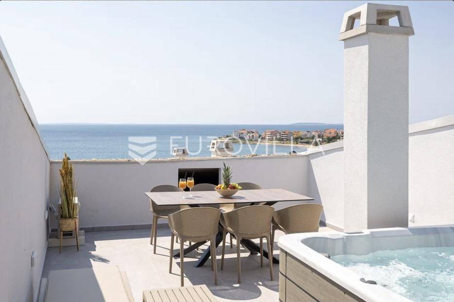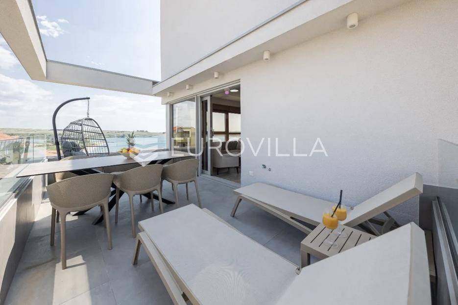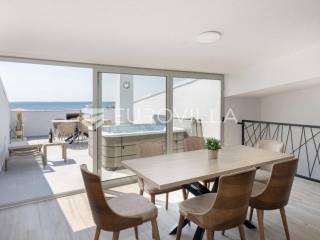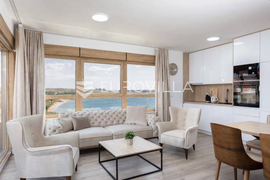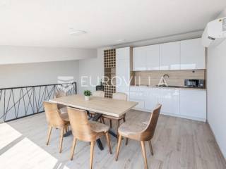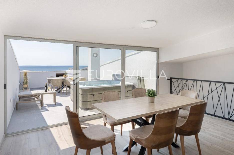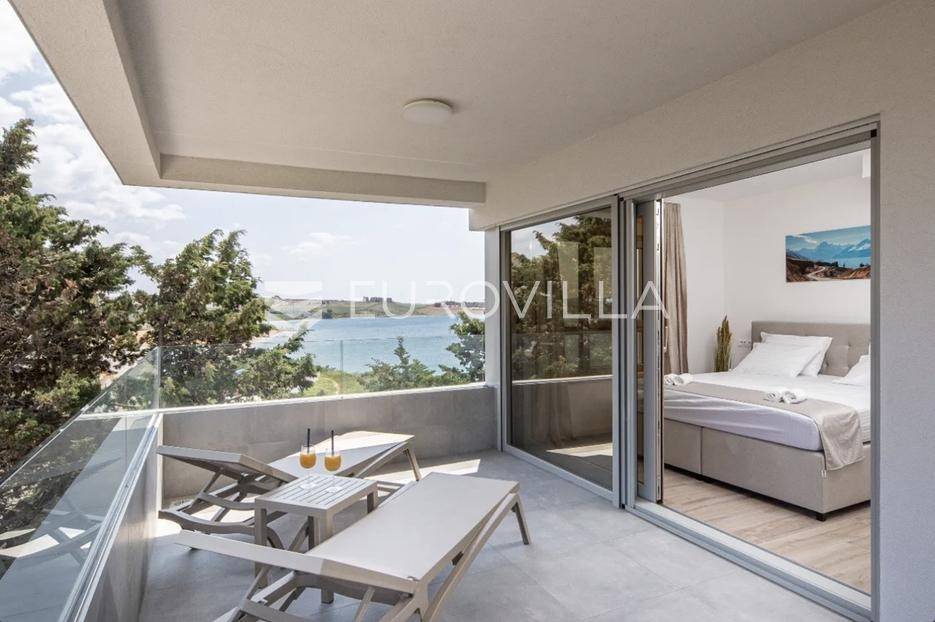 Prodaje se predivno i potpuno namješteni studio na top lokaciji u 1. redu do mora u zgradi s ukupno 15 stambenih jedinica. Zgrada je udaljena svega 20 m od mora, a u neposrednoj blizini se nalazi i jedna od najljepših pješčanih plaža na otoku. Također, nedaleko je i centar mjesta, povijesni lokaliteti i sadržaji koji su potrebni za kvalitetan život ili odmor.TROETAŽNI STAN S14- 2. KAT - 95M2Stan S14 se sastoji od spavaće sobe, kupaonice i balkona na drugom katu, dodatne spavaće sobe na polukatu te galerije povezane stubištem, na kojoj se nalazi prostrani dnevni boravak s kuhinjom i blagovaonicom te lođa s otvorenim pogledom na more.. Stan se prodaje u potpunosti namješten i opremljen i kao takav, spreman za useljenje.Stanu uz to pripada i jedno vanjsko parkirno mjesto.U CIJENU JE UKLJUČEN PDV TE KUPAC NE PLAĆA POREZ NA PROMET NEKRETNINAMA.Za više informacija i dogovor oko razgledavanja, slobodno nam se obratite.... Više na eurovilla.hr, ID: 966532