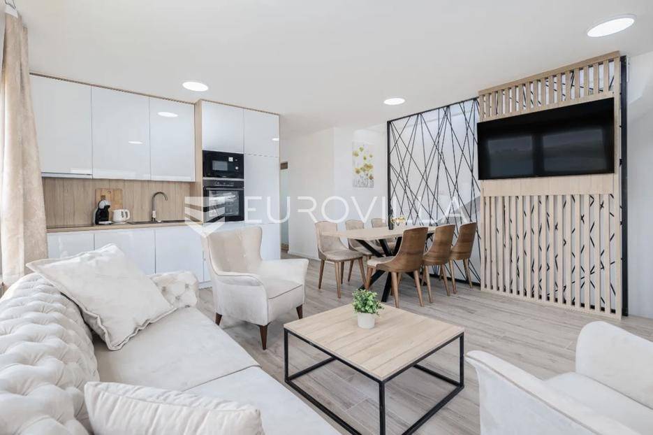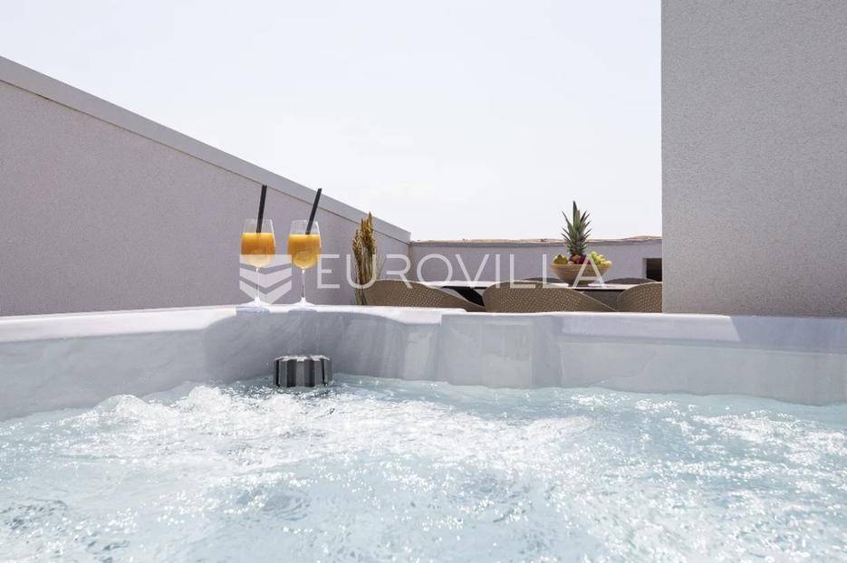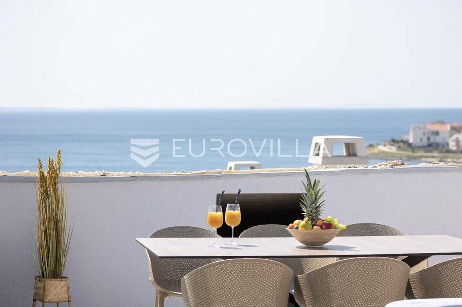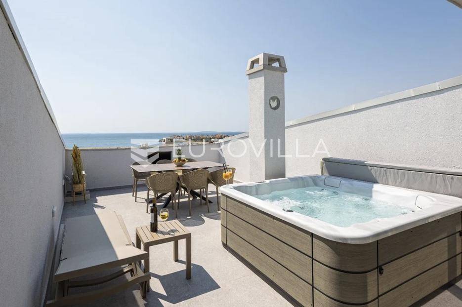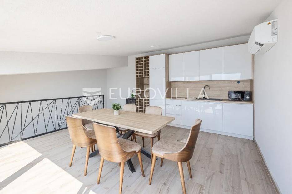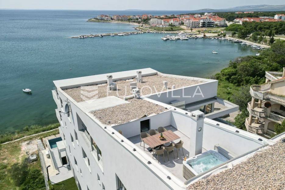 Prodaje se predivno i potpuno namješteni studio na top lokaciji u 1. redu do mora u zgradi s ukupno 15 stambenih jedinica. Zgrada je udaljena svega 20 m od mora, a u neposrednoj blizini se nalazi i jedna od najljepših pješčanih plaža na otoku. Također, nedaleko je i centar mjesta, povijesni lokaliteti i sadržaji koji su potrebni za kvalitetan život ili odmor.TROETAŽNI STAN S14- 2. KAT - 95M2Stan S14 se sastoji od spavaće sobe, kupaonice i balkona na drugom katu, dodatne spavaće sobe na polukatu te galerije povezane stubištem, na kojoj se nalazi prostrani dnevni boravak s kuhinjom i blagovaonicom te lođa s otvorenim pogledom na more.. Stan se prodaje u potpunosti namješten i opremljen i kao takav, spreman za useljenje.Stanu uz to pripada i jedno vanjsko parkirno mjesto.U CIJENU JE UKLJUČEN PDV TE KUPAC NE PLAĆA POREZ NA PROMET NEKRETNINAMA.Za više informacija i dogovor oko razgledavanja, slobodno nam se obratite.... Više na eurovilla.hr, ID: 966532
