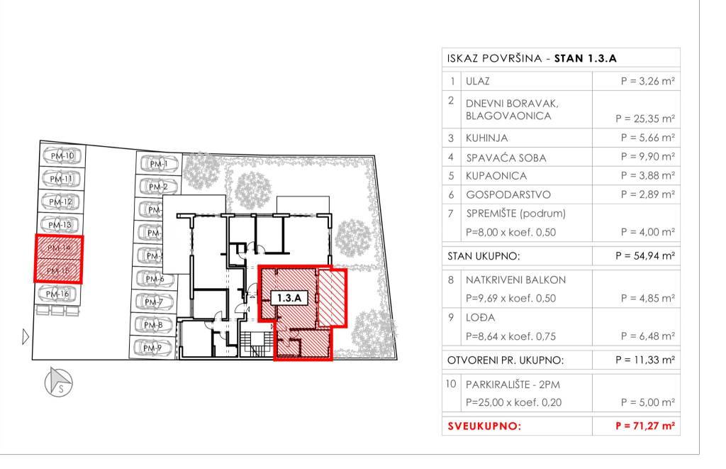 Na prodaju je prostran i moderno uređen stan smješten naprvom katu stambene zgrade A, koja je dio kvalitetnog projekta s dvije zgrade i ukupno 16 stanova.Stan 1.3.A ukupne obračunske površine71,27 m², proteže se na54,94 m² zatvorene stambene površine, a sastoji se od ulaznog prostora, dnevnog boravka, blagovaonice, kuhinje,gospodarske prostorije,natkrivenog balkona površine 9,69 m² i dodatnelođe od 8,64 m². Uz stan dolazi ispremište u podrumu tedva privatna parkirna mjesta, uključena u cijenu.Ovaj stan nudi optimalan raspored prostorija uz dva vanjska prostora - balkon i lođu - koji pružaju dodatnu vrijednost za svakodnevni boravak, odmor ili obiteljska druženja na otvorenom.Gradnja se izvodi prema najvišim standardima -Caparol fasadni sustav s 14 cm izolacije,PVC prozori s trostrukim staklom i komarnicima, teMitsubishi Multi-Split sustav grijanja i hlađenja jamče ugodan boravak tijekom svih godišnjih doba. Podne obloge čineparket prve klase italijanska keramika Florim, a kupci imaju mogućnost biranja završne obrade prema vlastitim željama.Zgrada ima lift, dvorište će biti uređeno i popločano opločnicima, a stanovi su opremljeni video portafonom, telefonskim priključkom, satelitskim sustavom i internetom.Završetak radova predviđen je zasvibanj 2026. godine, a stan se prodajepreko tvrtke, što znači dakupac ne plaća 3% poreza na promet nekretnina.Ova nekretnina pruža savršen spoj udobnosti, funkcionalnosti i modernog načina života - idealna za parove, pojedince ili kao investicija.Za više informacija, slobodno nas kontaktirajte!... Više na eurovilla.hr, ID: 972202