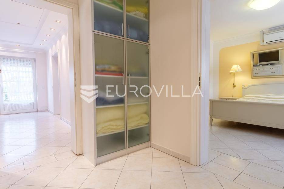 Pješčana Uvala, najatraktivniji dio Općine Medulin, prepuna je modernih villa, a dobila je naziv po pješčanoj plaži koja se nalazi usred samog mjesta.Ova izuzetna nekretnina udaljena je samo 100 m od predivnih plaža, nudi savršen spoj mira i luksuza. Riječ je o samostojećoj kući smještenoj na prostranoj parceli od 693 m2 koja je u cijelosti ograđena. Kuća ukupne površine 380 m2 se sastoji od prizemlja, kata i neuređenog visokog potkrovlja. U prizemlju kuće smjestio se prostrani dnevni boravak, luksuzno opremljena kuhinja, gostinjski wc te radna soba. Dnevni boravak ima izlaz na natkrivenu terasu od 60 m2 koja vodi u uređen park. Na prvom katu nalaze se tri spavaće sobe, svaka s vlastitom kupaonicom i garderobnom sobom. Potkrovlje je neuređeno te ga budući vlasnik može urediti prema svojim željama ili može poslužiti kao dodatni skladišni prostor.Uz kuću se nalazi garaža za dva vozila, radna soba i vešeraj.Kuća ima pristup s dvije ceste što dodatno povećava funkcionalnost i privatnost.Kroz cijelu kuću provedeno je podno grijanje na gradski plin i postavljeni su klima uređaji.Kuća je spojena na kanalizaciju.Nekretnina se nalazi svega 10 minuta vožnje od centra Pule i zračne luke.Za sva dodatna pitanja, potrebne informacije ili organizaciju termina za razgledavanje slobodno nas kontaktirajte.... Više na eurovilla.hr, ID: 992512