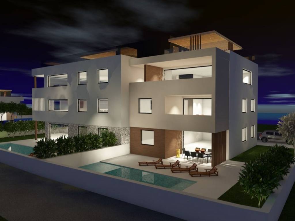 NOVOGRADNJA – Stan S2 u prizemlju zgrade s vrtom i bazenom, samo 60 m od pješčane plaže . Prodaje se stan u prizemlju novogradnje sa 8 stanova, smještenoj u mirnom dijelu Privlake. Zgrada je u gradnji, a useljenje se planira u svibnju 2026. Stan oznake S2 se sastoji od ulaznog prostora, kuhinje s blagavaonom i dnevnim boravkom, dvije spavaće sobe, kupaone i wc-a, ukupno 69,85 m2 stambeno, plus natkrivena terasa 19,42 m2 po koef 0,5 9,71 m2), ostava 4,5 m2 vrt od 111,04 m2, dvorište 29,57 m2, bazen površine 36 m2 i jedno parkirno mjesto. Ukupno stan oznake S2 sa pripatcima ima 108,54 m2. • Vrhunska unutarnja stolarija • PVC stolarija s ALU roletama na elektro pogon, troslojno staklo s Low-e premazom, komarnici • Podovi: parket i keramika I. klase Dodatne pogodnosti: • Visok energetski standard (A razred) • Kupac ne plaća porez na promet nekretnina • Cijena: 545 000 EUR . U cijenu je uključen namještaj. U zgradi su na prodaju sljedeći stanovi: S1 - prizemlje, dvosoban stan sa vrtom 85,35 m² – 345.000,00 € S2 - prizemlje, dvosoban stan sa vrtom i bazenom 108,55 m² , kompletno namješten 545 000 eura. S3 – prizemlje, dvosoban stan sa vrtom i bazenom 97,87 m² - kompletno namješten 490.000 € . S4 - 1. kat, dvosoban stan 80,75 m² – 325.000,00 € S5 - 1. kat, dvosoban stan 80,70 m² – 365.000,00 € S6 – 1. kat, dvosoban stan 80,72 m² – 340.000,00 € S7 – 2. kat trosoban stan sa krovnom terasom 158,33 m² – 760.000,00 € (namješten). S8 - 2. kat, trosoban stan sa krovnom terasom 157,69 m² – 720.000,00 € (namješten). Četiri stana će biti kompletno namještena stanovi S2 i S3 u prizemlju i stanovi S7 i S8 na 2 katu . U cijenu je uključen namještaj, ostali se prodaju nenamješteni. Zgrada je u gradnji te se planira završetak do sezone 2026. godine.