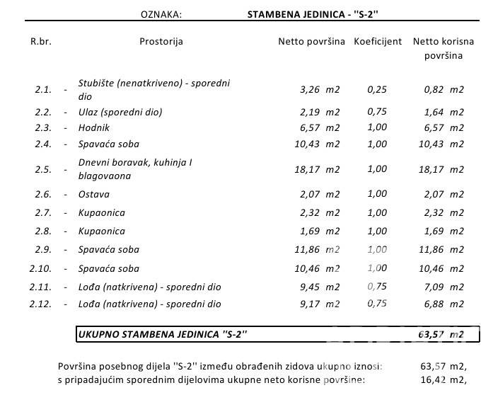 The living area measures 63.57 m2 and consists of an open-plan kitchen, dining area, and living room with access to a covered terrace of 9.45 m2. From the terrace and living room there is a beautiful view of Lake Prukljan, adding special value and ambiance to the property.