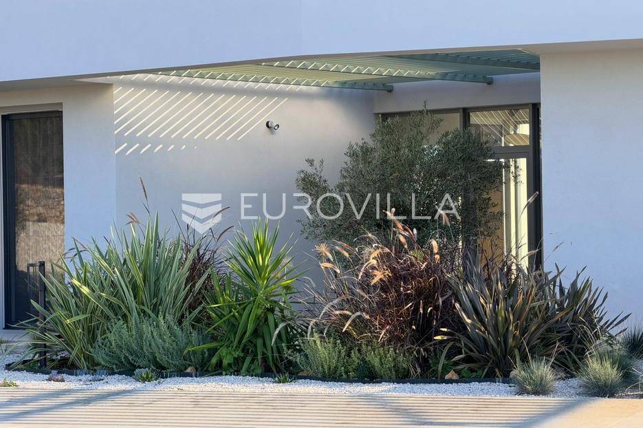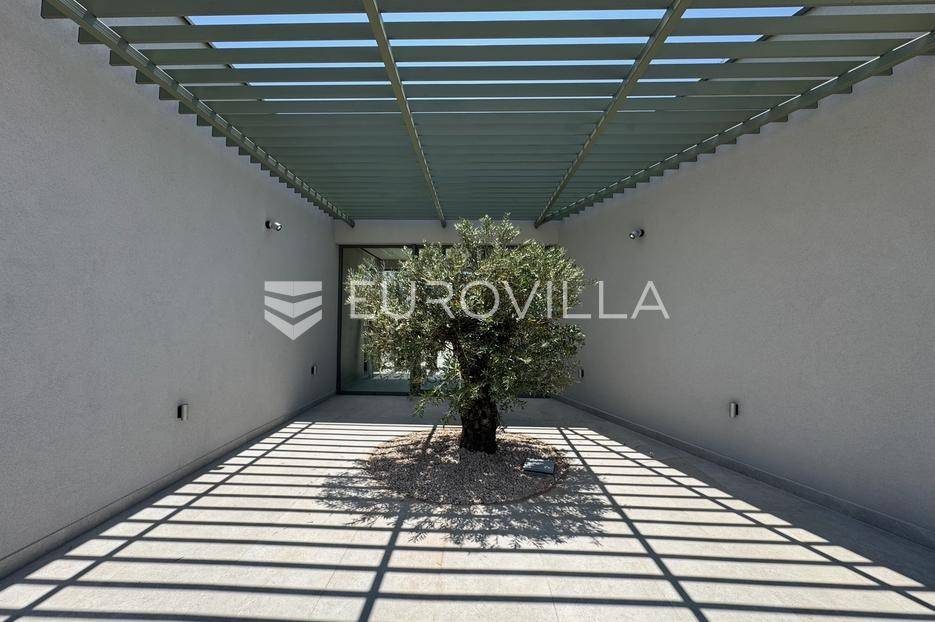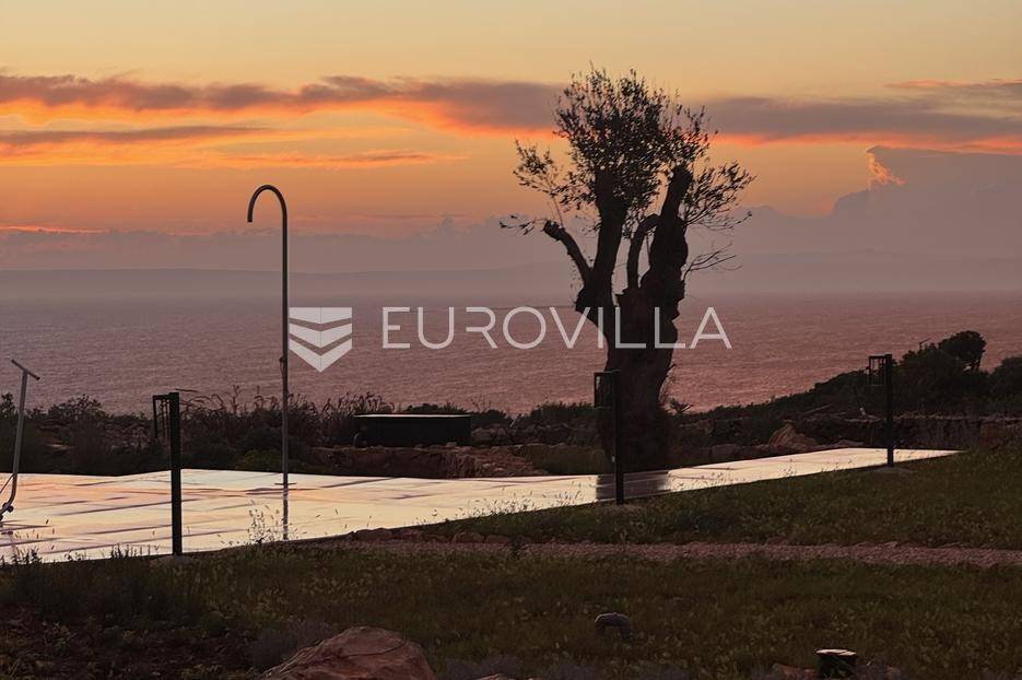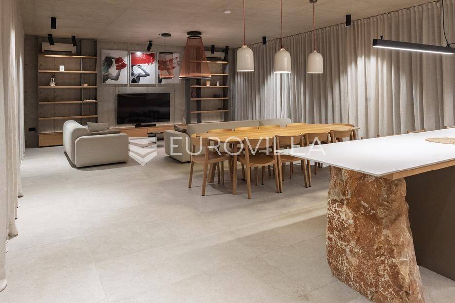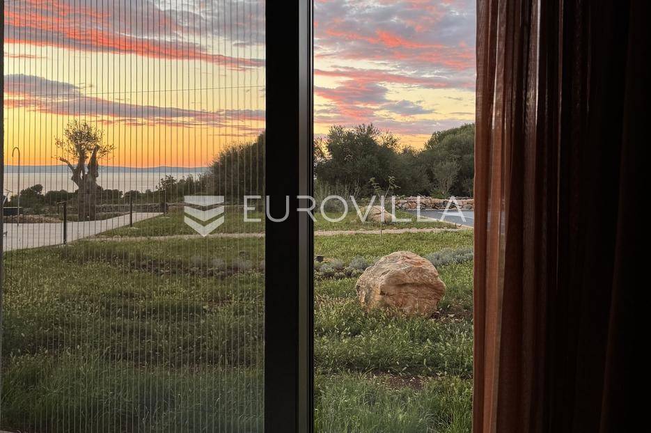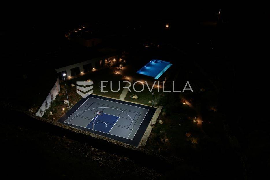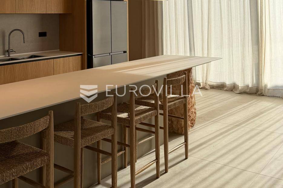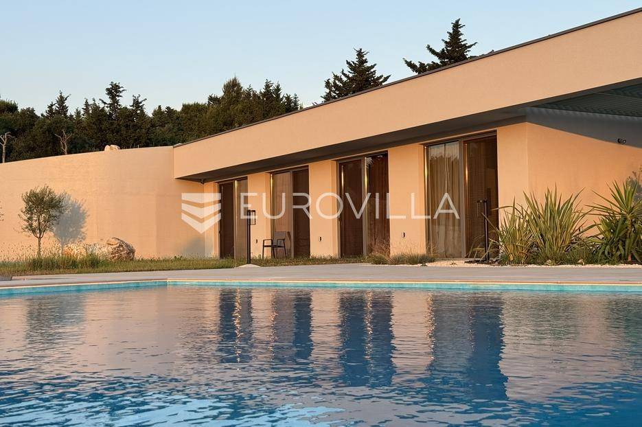 Vila jedinstvene arhitekture u masliniku, Lun – otok Pag | 300 m² | parcela 4.025 m² | pogled na more u 3 stranePredstavljamo vilu posebne i jedinstvene arhitekture na spektakularnoj, intimnoj lokaciji u blizini mjesta Lun na otoku Pagu. Smještena usred drevnog maslinika, vila je ukopana u teren i prekrivena zelenim krovom, čime se prirodno stapa s okolišem i ostavlja dojam potpune privatnosti.Nalazi se na parceli površine 4.025 m², s koje se pruža neometan panoramski pogled na more u čak tri strane svijeta.Arhitektura i interijerVila raspolaže s ukupno 300 m² stambenog prostora, osmišljena za obitelji i veće skupine. Ulaz vodi u privatno dvorište, a sama se vila potom potpuno otvara prema moru.Unutrašnjost karakteriziraju 3 metra visoki stropovi, osjećaj prostranosti i jednostavan, suvremen dizajn. Sirovi betonski zidovi stvaraju snažan kontrast mediteranskom krajoliku izvana, dok toplinu unose detalji u hrastu i namještaj vrhunskih europskih dizajnera (Prostoria, Hay, Bolia).RasporedDnevni boravak 75 m² – svijetao, prostran i miran, centralni dio kućeModerna kuhinja dizajnirana za zajedničko kuhanje i “život na terasi”4 spavaće sobe (svaka cca 18 m²)Svaka spavaća soba ima vlastitu prostranu kupaonicuEksterijer i sadržajiGrijani bazen i terasa stvoreni su za opuštanje danju i promatranje zvijezda noću. S terase se vide Rab, Cres i Mali Lošinj, a za vedrih dana pogled se proteže sve do istarskih planina.Na posjedu se dodatno nalazi:privatni teren za košarku i badmintonteretana, sauna i vanjska kuhinja s roštiljem i kominom4 natkrivena parkirna mjesta2 EV punjačaDodatna oprema (izdvajamo)Starlink Wi-Fi (high speed)videonadzor cijelog objekta + detektori dimasustav filtriranja vodebazen s hlađenjem, grijanjem i hidromasažompotpuno ograđeno dvorište za maksimalnu privatnostsauna s tušem + potpuno opremljena teretanai još mnogo togaLokacija koja se ne ponavljaVila se nalazi unutar zaštićenog rezervata divljih maslina, među nekima od najstarijih na svijetu. Ovo je područje botanički rezervat od 1963. godine. Pag je otok kamena, soli i širokih horizonta, a pravi luksuz ovdje znači jedno: mir, prostor i privatnost.Obratite nam se za više informacija i dogovor termina razgledavanja ove jedinstvene vile.... Više na eurovilla.hr, ID: 752404