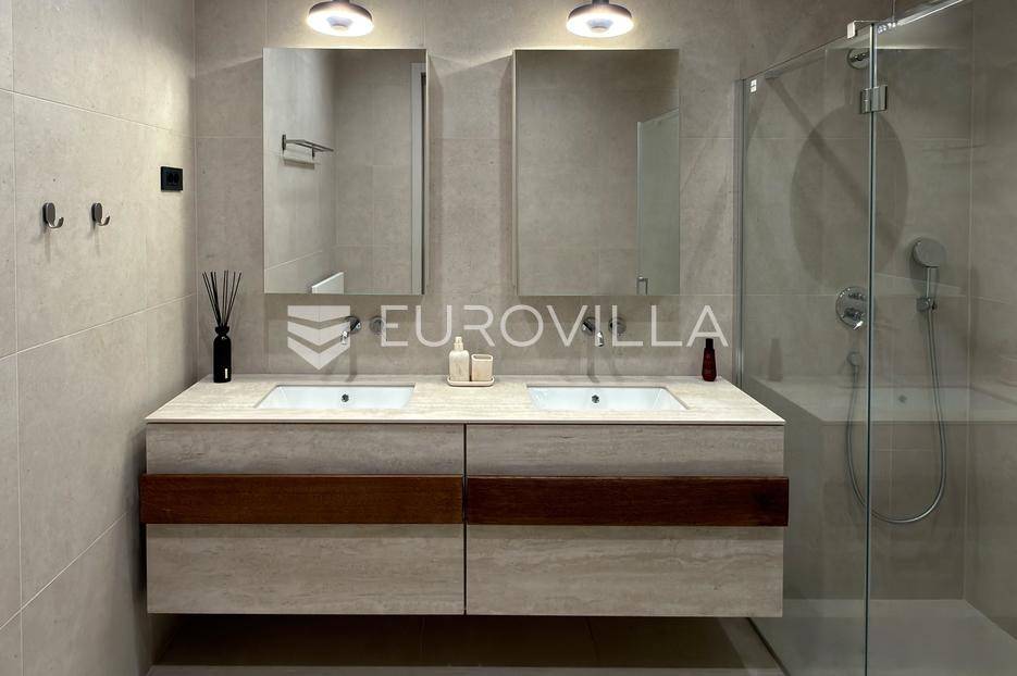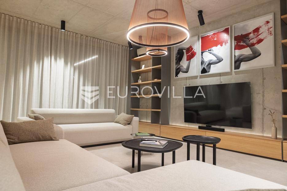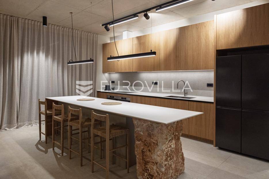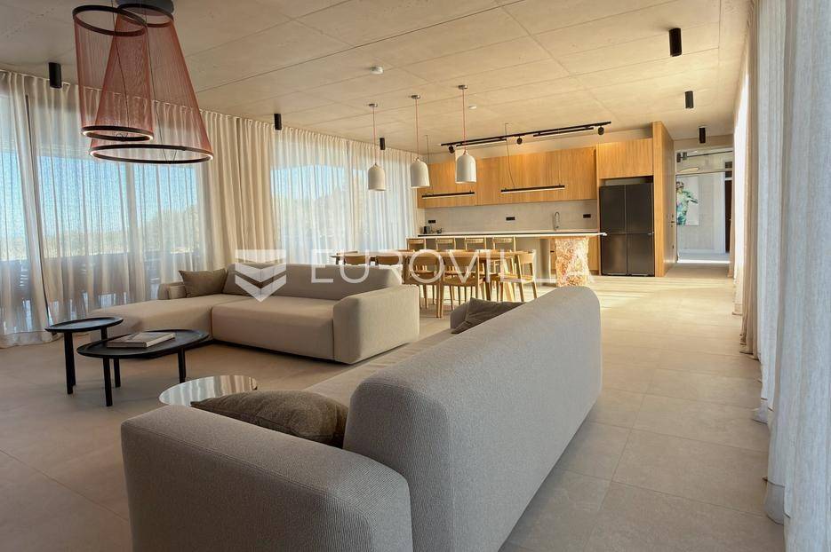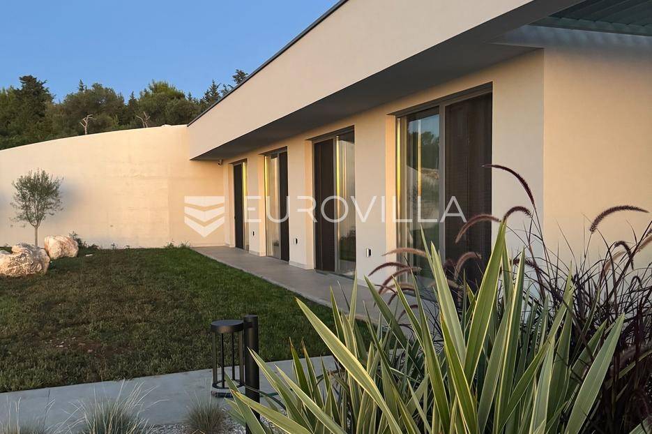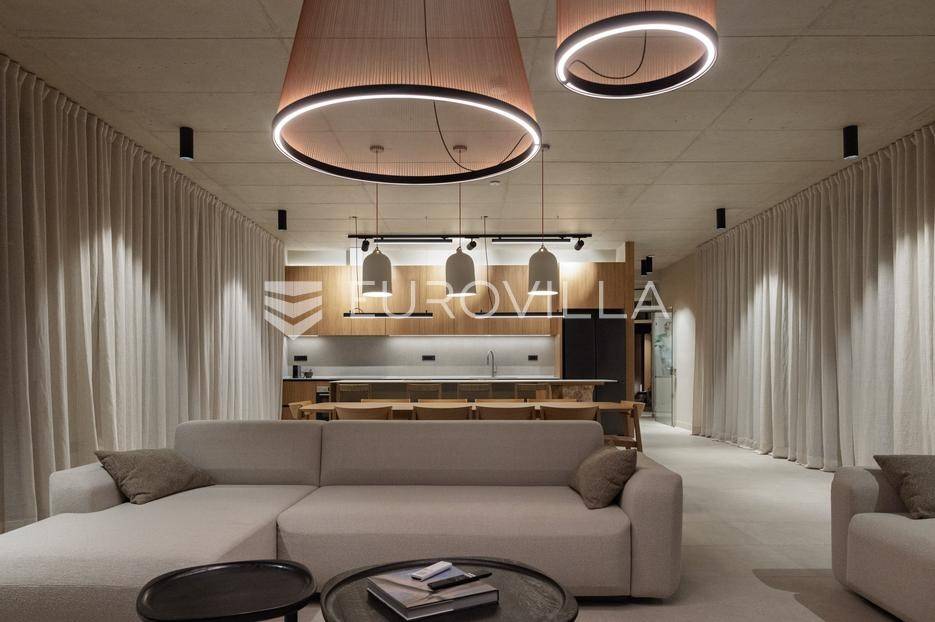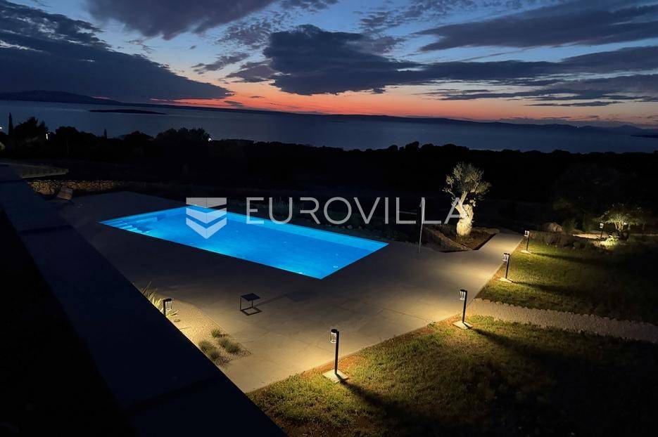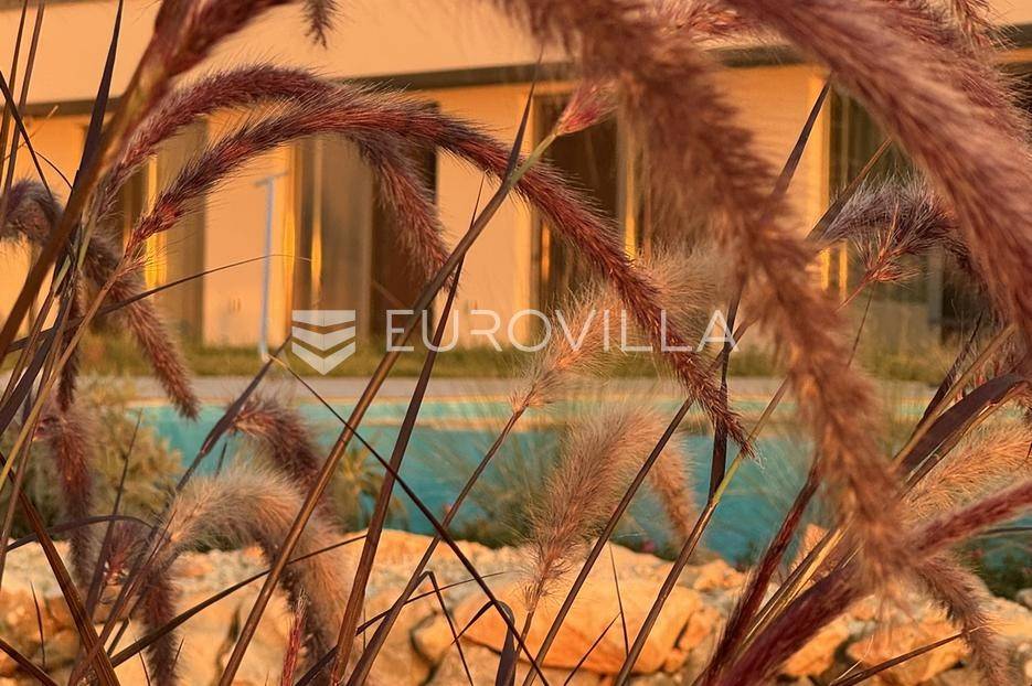 Vila jedinstvene arhitekture u masliniku, Lun – otok Pag | 300 m² | parcela 4.025 m² | pogled na more u 3 stranePredstavljamo vilu posebne i jedinstvene arhitekture na spektakularnoj, intimnoj lokaciji u blizini mjesta Lun na otoku Pagu. Smještena usred drevnog maslinika, vila je ukopana u teren i prekrivena zelenim krovom, čime se prirodno stapa s okolišem i ostavlja dojam potpune privatnosti.Nalazi se na parceli površine 4.025 m², s koje se pruža neometan panoramski pogled na more u čak tri strane svijeta.Arhitektura i interijerVila raspolaže s ukupno 300 m² stambenog prostora, osmišljena za obitelji i veće skupine. Ulaz vodi u privatno dvorište, a sama se vila potom potpuno otvara prema moru.Unutrašnjost karakteriziraju 3 metra visoki stropovi, osjećaj prostranosti i jednostavan, suvremen dizajn. Sirovi betonski zidovi stvaraju snažan kontrast mediteranskom krajoliku izvana, dok toplinu unose detalji u hrastu i namještaj vrhunskih europskih dizajnera (Prostoria, Hay, Bolia).RasporedDnevni boravak 75 m² – svijetao, prostran i miran, centralni dio kućeModerna kuhinja dizajnirana za zajedničko kuhanje i “život na terasi”4 spavaće sobe (svaka cca 18 m²)Svaka spavaća soba ima vlastitu prostranu kupaonicuEksterijer i sadržajiGrijani bazen i terasa stvoreni su za opuštanje danju i promatranje zvijezda noću. S terase se vide Rab, Cres i Mali Lošinj, a za vedrih dana pogled se proteže sve do istarskih planina.Na posjedu se dodatno nalazi:privatni teren za košarku i badmintonteretana, sauna i vanjska kuhinja s roštiljem i kominom4 natkrivena parkirna mjesta2 EV punjačaDodatna oprema (izdvajamo)Starlink Wi-Fi (high speed)videonadzor cijelog objekta + detektori dimasustav filtriranja vodebazen s hlađenjem, grijanjem i hidromasažompotpuno ograđeno dvorište za maksimalnu privatnostsauna s tušem + potpuno opremljena teretanai još mnogo togaLokacija koja se ne ponavljaVila se nalazi unutar zaštićenog rezervata divljih maslina, među nekima od najstarijih na svijetu. Ovo je područje botanički rezervat od 1963. godine. Pag je otok kamena, soli i širokih horizonta, a pravi luksuz ovdje znači jedno: mir, prostor i privatnost.Obratite nam se za više informacija i dogovor termina razgledavanja ove jedinstvene vile.... Više na eurovilla.hr, ID: 752404