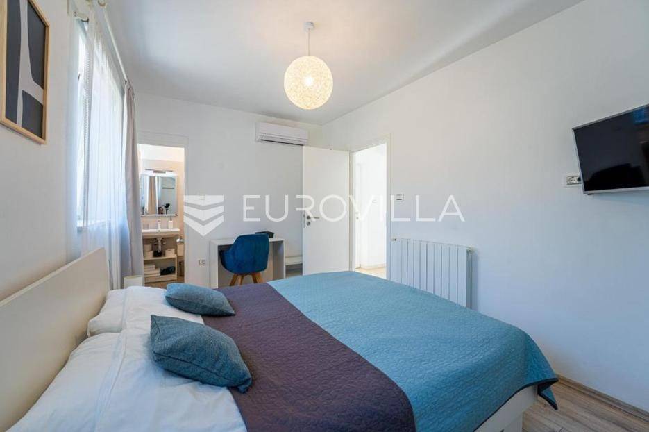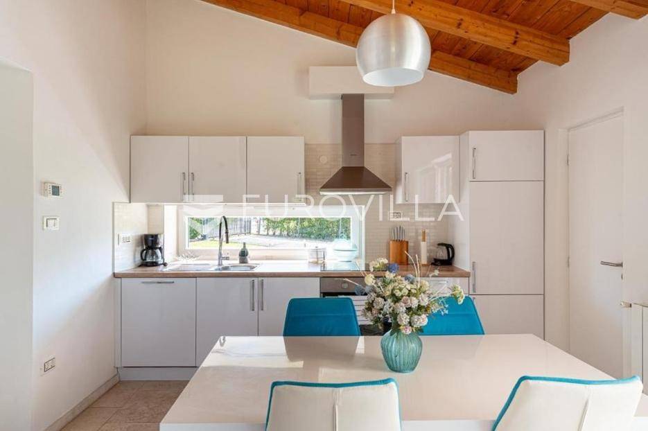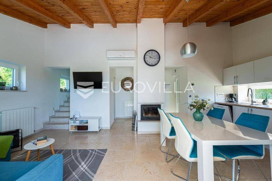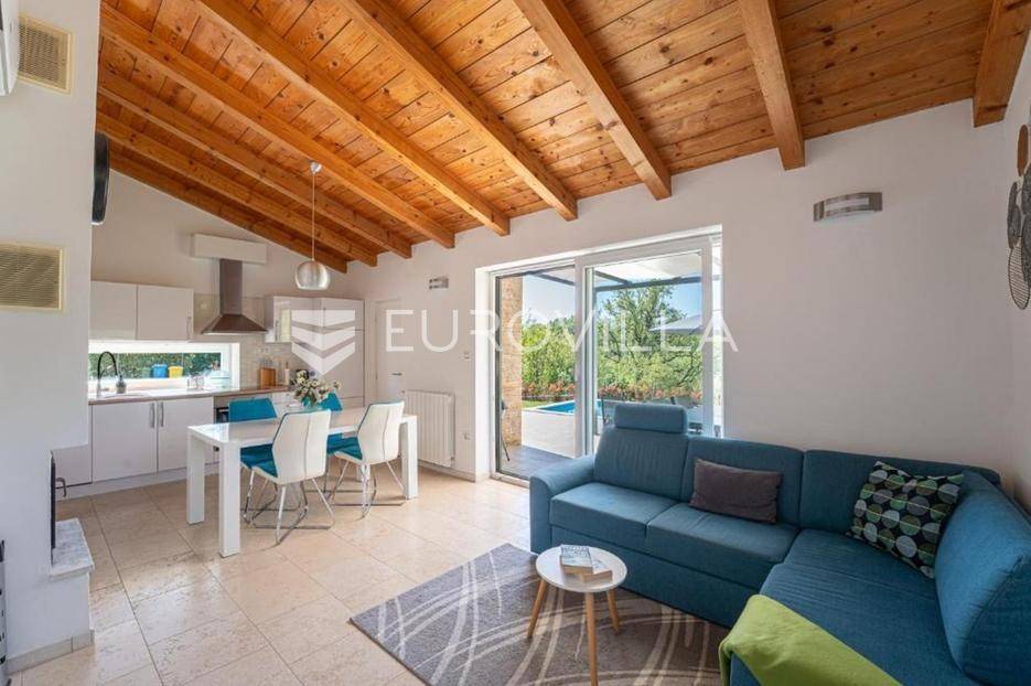 Ova šarmantna vila smještena u samom srcu Istre, u naselju Zabrežani, predstavlja savršen spoj tradicije i modernog komfora. Zahvaljujući izvrsnoj mikrolokaciji, svi značajni istarski centri poput Poreča, Pule, Rovinja i Labina dostupni su unutar trideset do četrdeset minuta vožnje, što ovu nekretninu čini idealnim polazištem za istraživanje poluotoka.Kuća je temeljito renovirana i nadograđena 2021. godine, a proteže se na 83 kvadrata stambenog prostora smještenog na prostranoj i potpuno ograđenoj parceli od 800 kvadrata koja jamči potpunu privatnost i mir.Interijer je osmišljen kao otvoren i prozračan prostor koji obuhvaća moderno opremljenu kuhinju, blagovaonicu i dnevni boravak. Vila raspolaže s dvije udobne spavaće sobe, od kojih jedna ima izlaz na balkon, a svaka posjeduje vlastitu kupaonicu.Vanjskim dijelom dominira bazen s prostranom terasom okruženom netaknutim zelenilom, dok je za limene ljubimce osiguran natkriveni parking za dva vozila.Nekretnina se prodaje potpuno namještena i opremljena svim potrebnim uređajima, od perilice posuđa i rublja do sitnih kuhinjskih aparata, uključujući posteljinu i ručnike. Sustav centralnog grijanja u kombinaciji s kaminom omogućuje ugodan boravak tijekom cijele godine, što vilu čini izvrsnom investicijom za cjelogodišnji život ili turistički najam.... Više na eurovilla.hr, ID: 593711