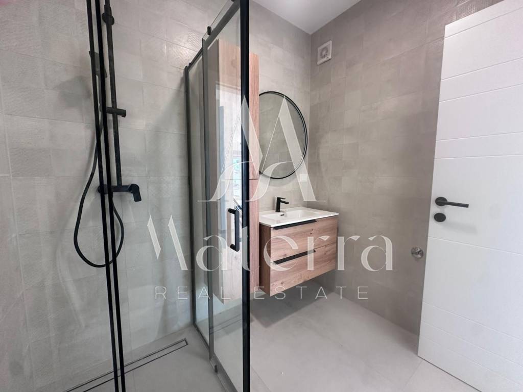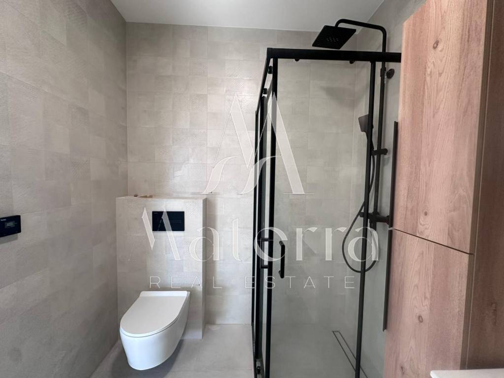 Underfloor heating is installed throughout the apartment, along with electric shutters and triple glazing.