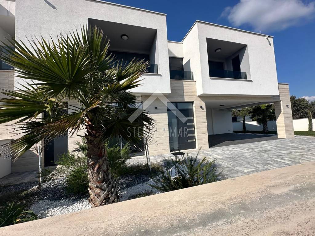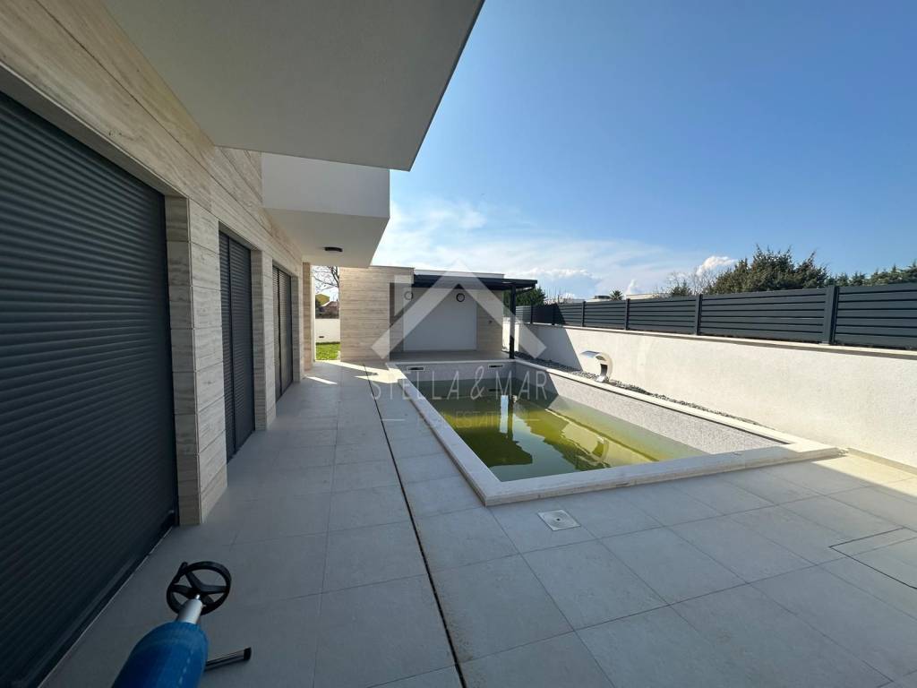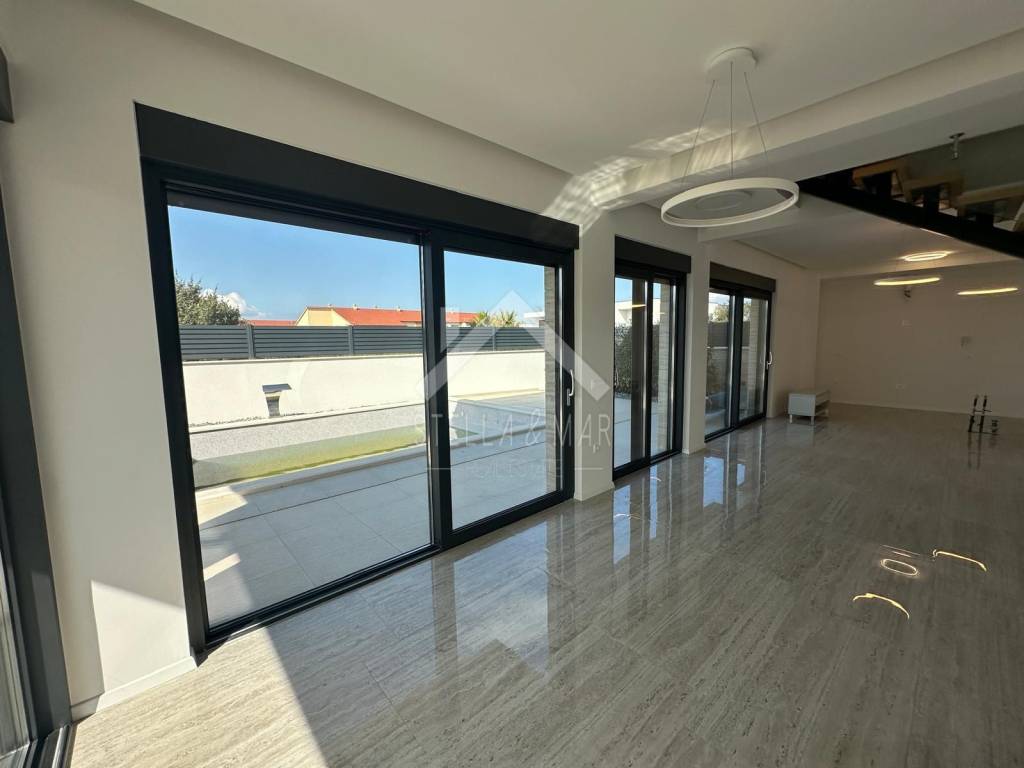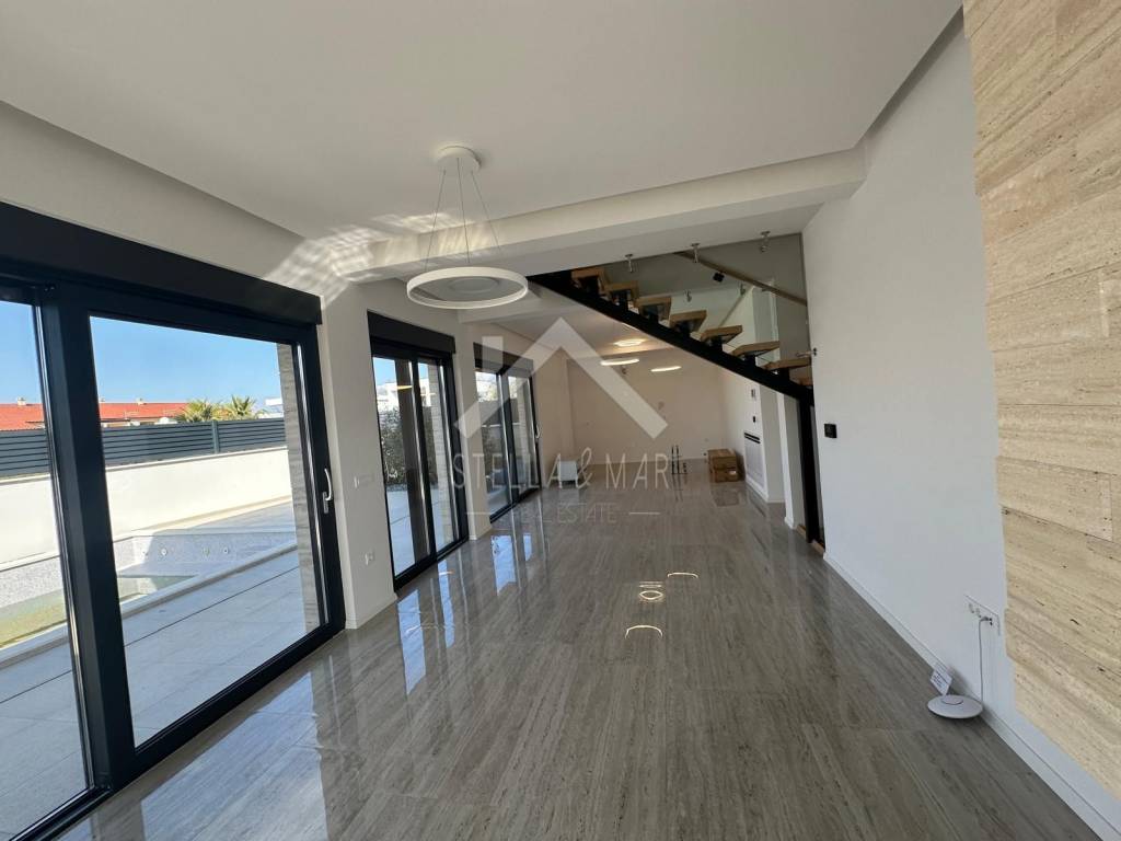 A comfortable villa with a swimming pool is for sale in Zaton, a beautiful, quiet place near the town of Nin in Dalmatia. The house was built in 2025 on its own cadastral plot, with proper ownership and all necessary documentation. It is located on a plot of land of 517m2, with a living area of approximately 230m2.