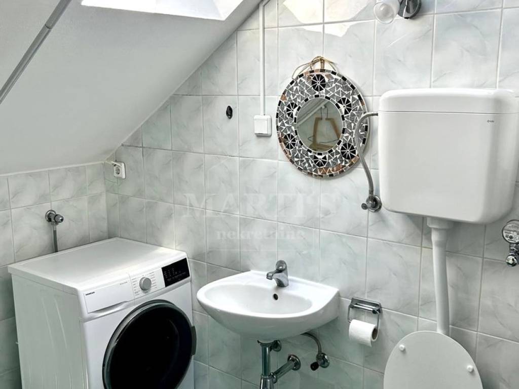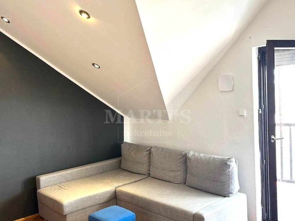 STAN: ulazni garderobni hodnik, dnevni boravak s kuhinjom i blagovaonicom te izlazom na balkon, spavaća soba, kupaonica, spremište na tavanu zgrade.