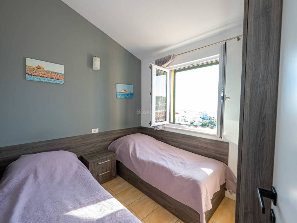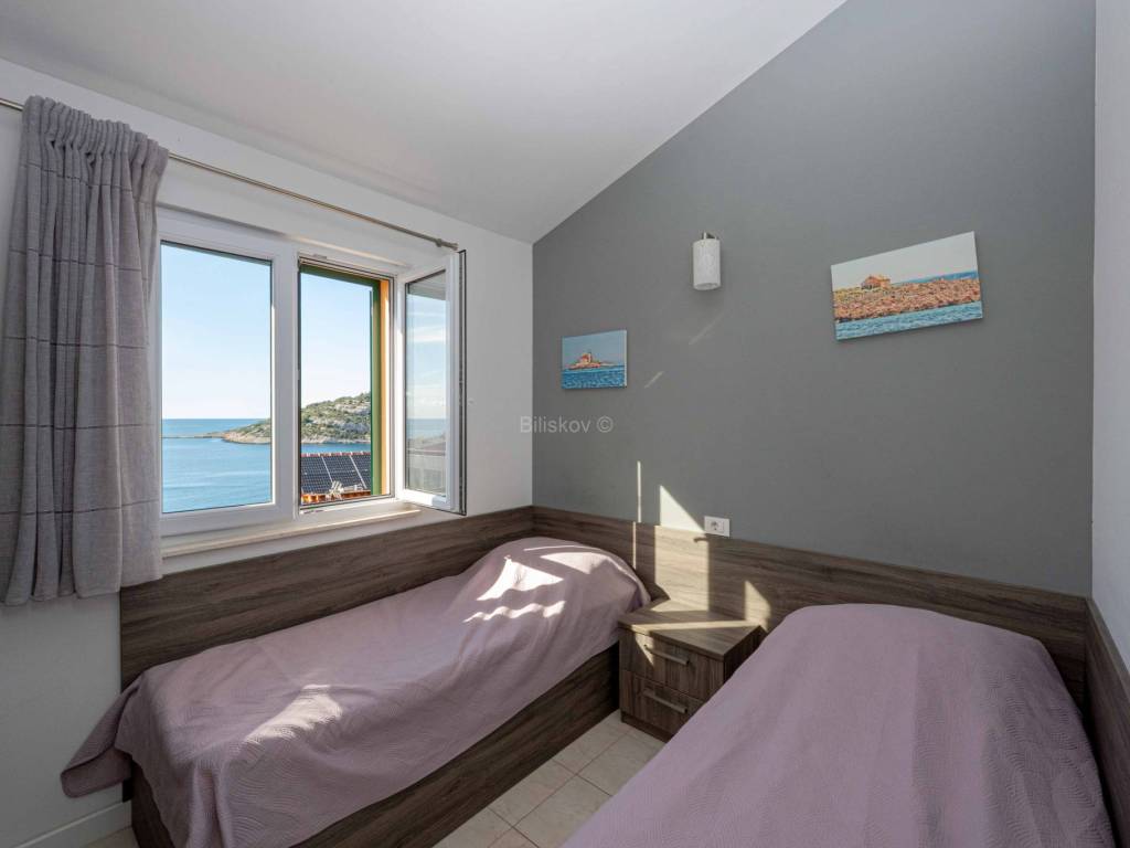 A fully furnished apartment house is offered for sale in Ražanj, with a total living area of 255 m, situated on a 450 m plot, only 84 meters from the beach, featuring an open sea view. The property is located in an exceptionally attractive and area that ensures privacy while offering immediate proximity to the sea, making it highly desirable both for private use and for tourist rental purposes.