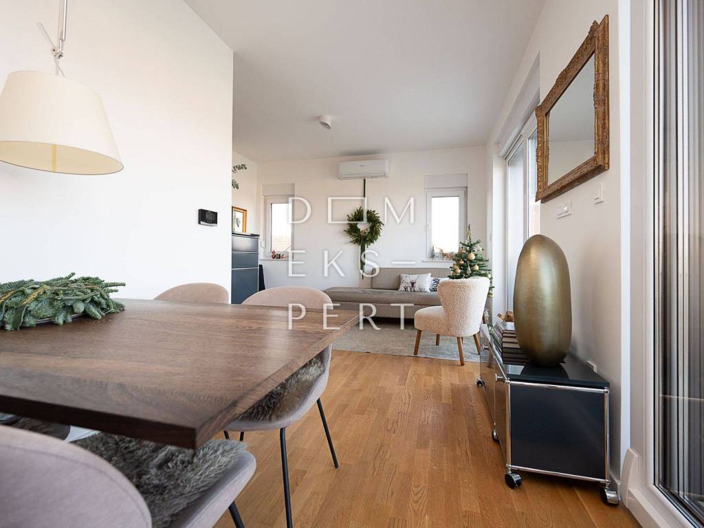 For sale is a modern four-room apartment in an excellent location in Velika Gorica, Pleso district. The building is of high-quality construction, finished in December 2024. The apartment is located on the 2nd and top floor.
