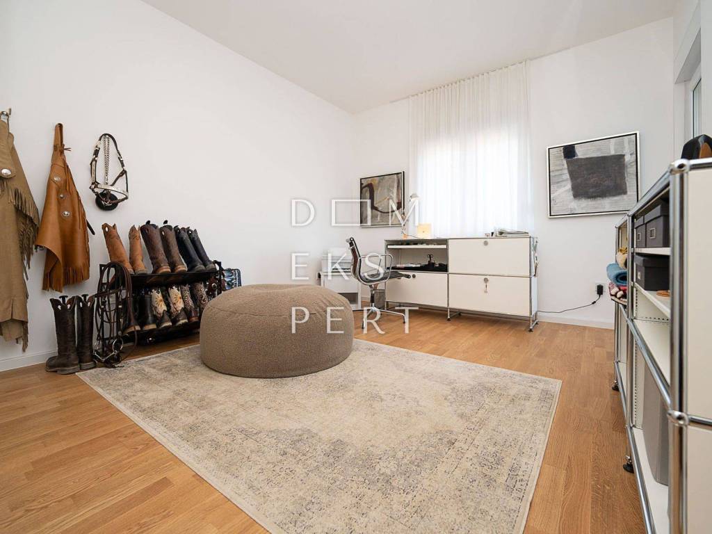 The apartment is partial furnished and equipped with custom-made furniture.