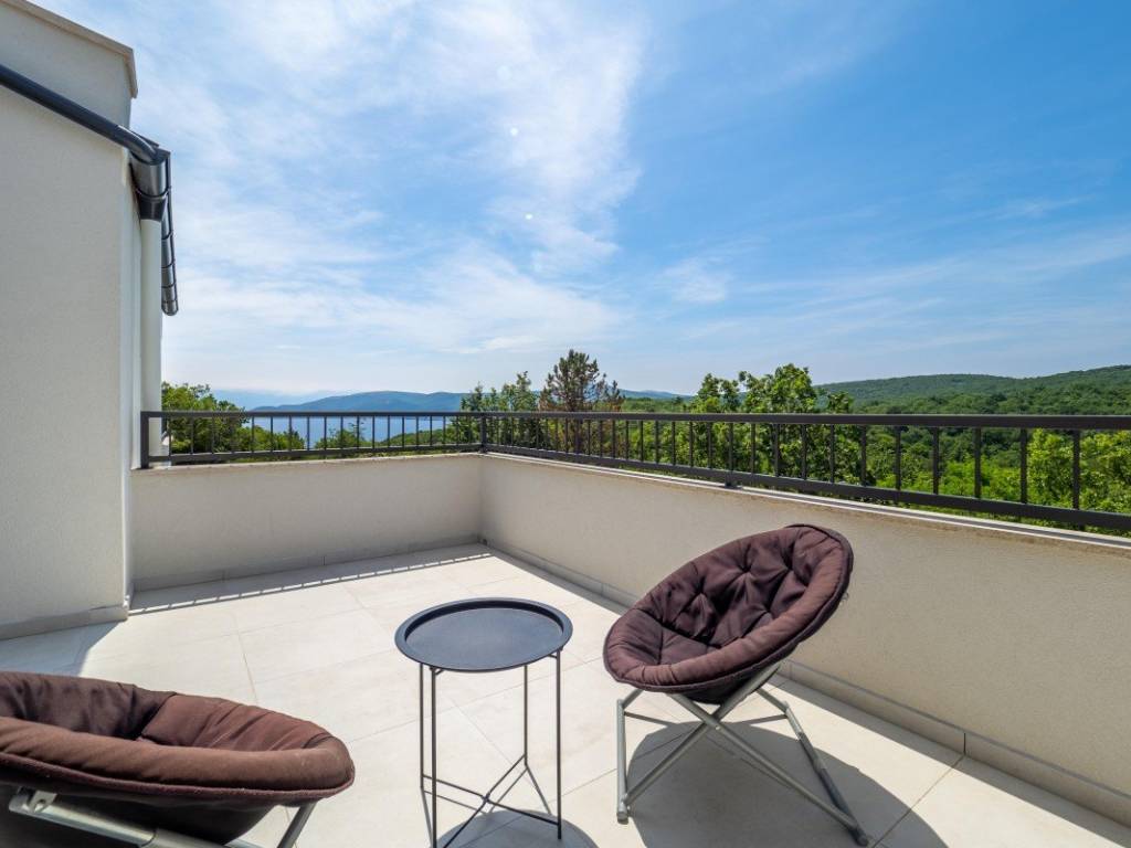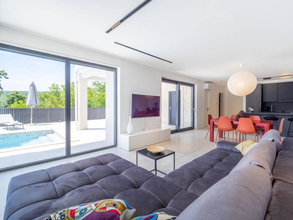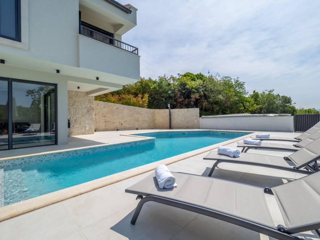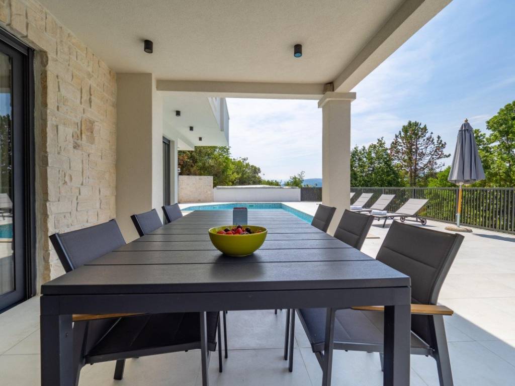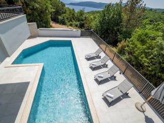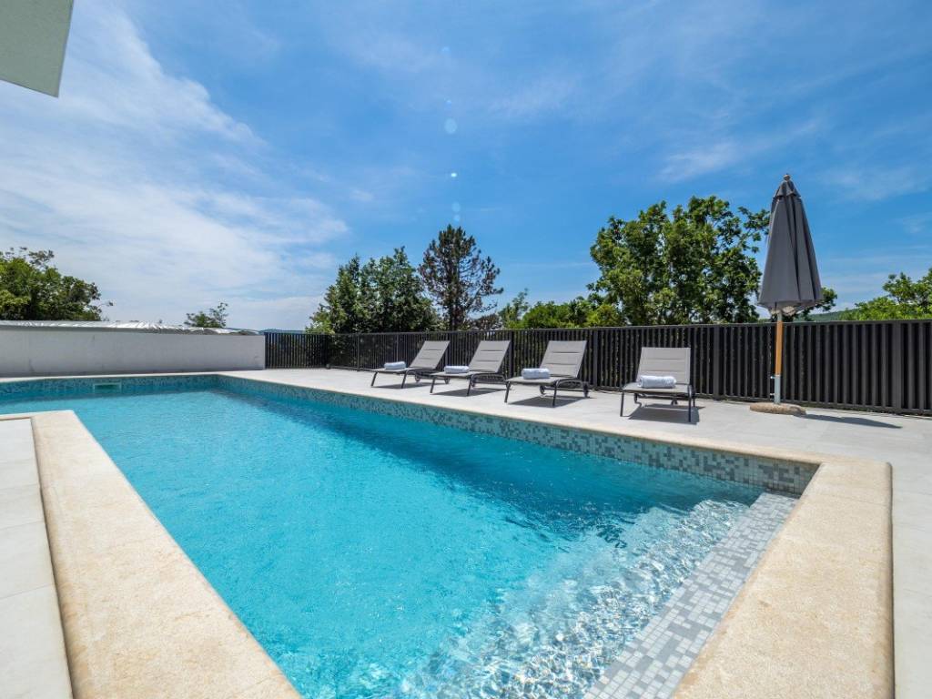 On the island of Krk, near Vrbnik, a modern detached house with a garden, pool and sea view is for sale.