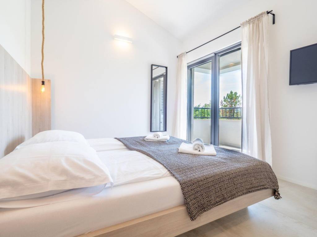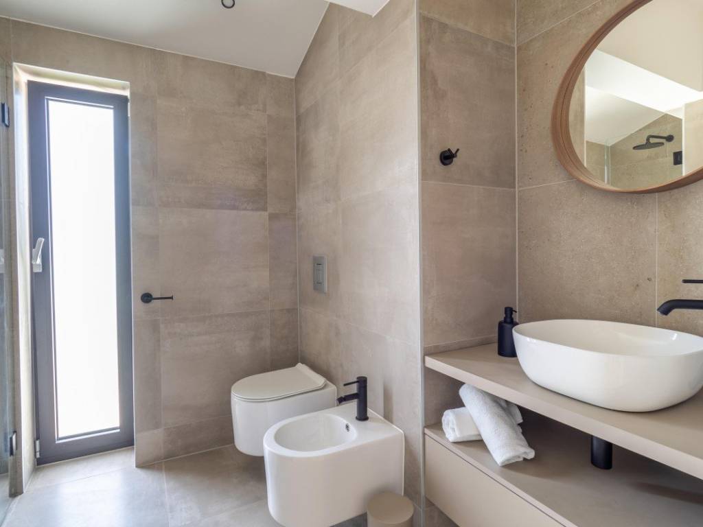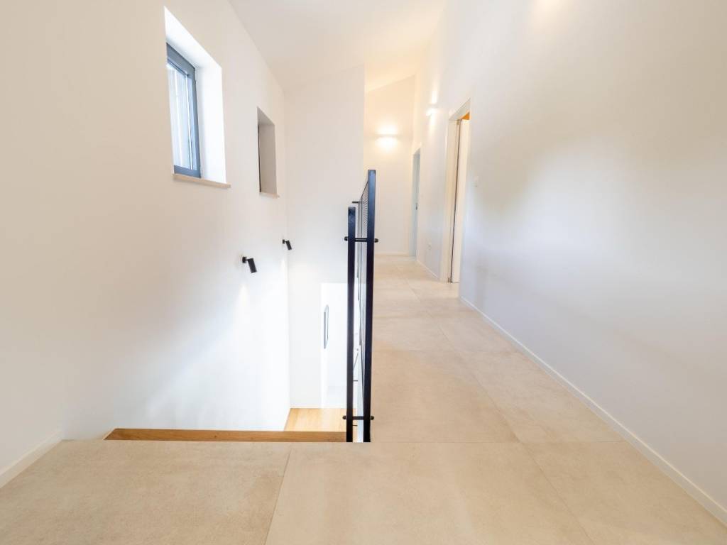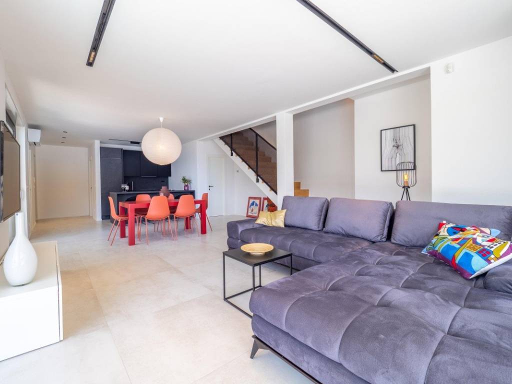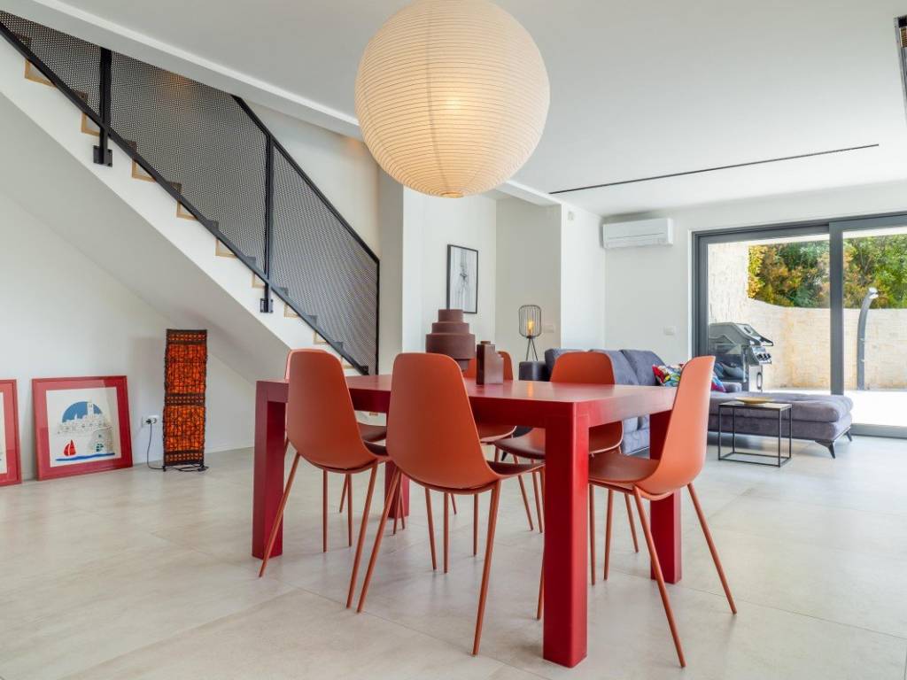 The house is equipped with quality ceramics, is fully air-conditioned and furnished, with built-in ALU carpentry. It is located next to a green area, 750 m from the beach.