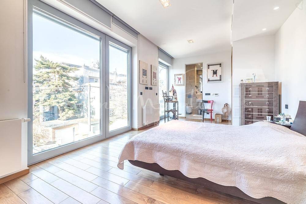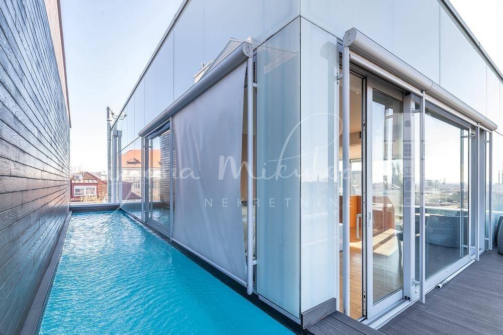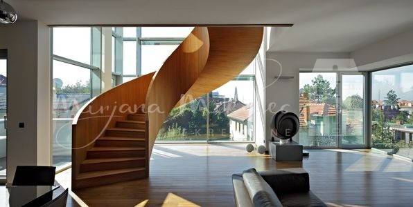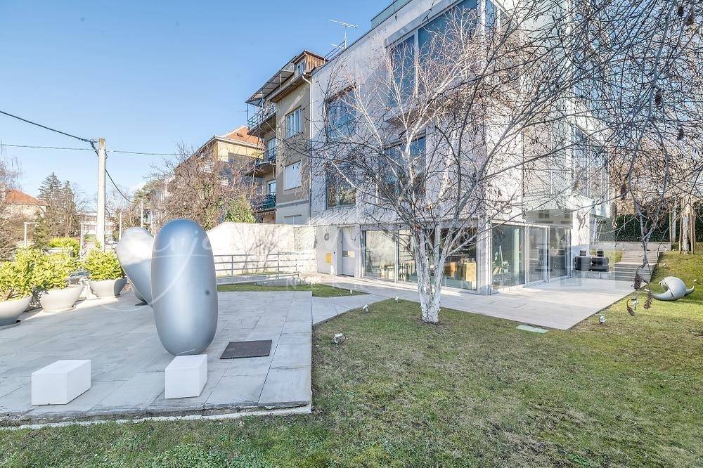 Iznimna, dizajnerski uređena kuća površine gotovo 500 m smještena u blizino Centra, u prestižnoj četvrti Gornji Grad Medveščak. Okućnica od 428 m pruža privatnost i prostor za opuštanje uz vlastiti bazen s panoramskim pogledom na Centar grada te saunu. Visokokvalitetno uređen i odmah useljiv objekt od ukupno 5 soba, od koje 3 spavaće, nudi sve što ekskluzivan život zahtijeva: centralni klima uređaj, kamin, lift, električne rolete, video portafon te protuprovalna vrata. Plinska etažna instalacija osigurava ugodan dom tijekom cijele godine. Objekt (ukupne KP 499,26m2) se sastoji od luksuzne stambene kuće (445,90m2), pomoćne građevine - spremišta (20,96m2), garaže (32,40m2) i uređenog dvorišta - okućnice.