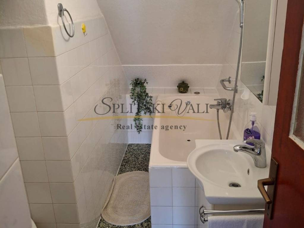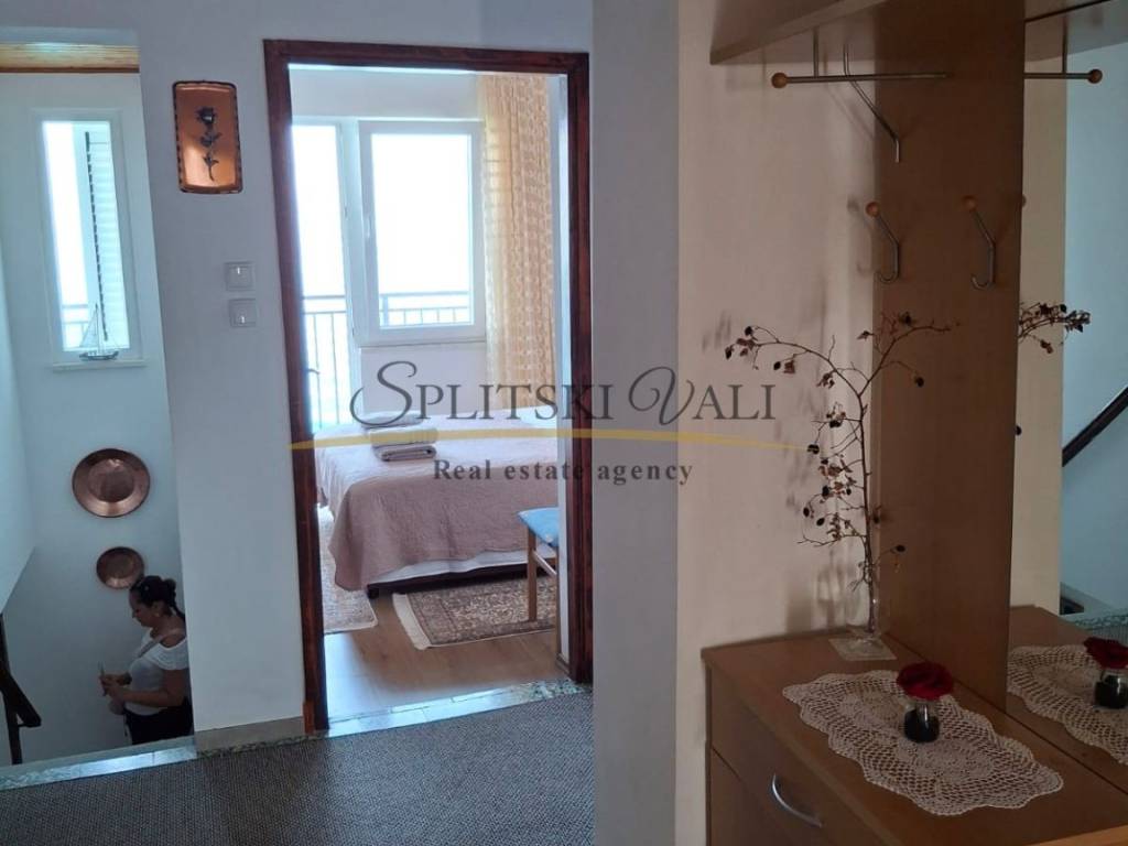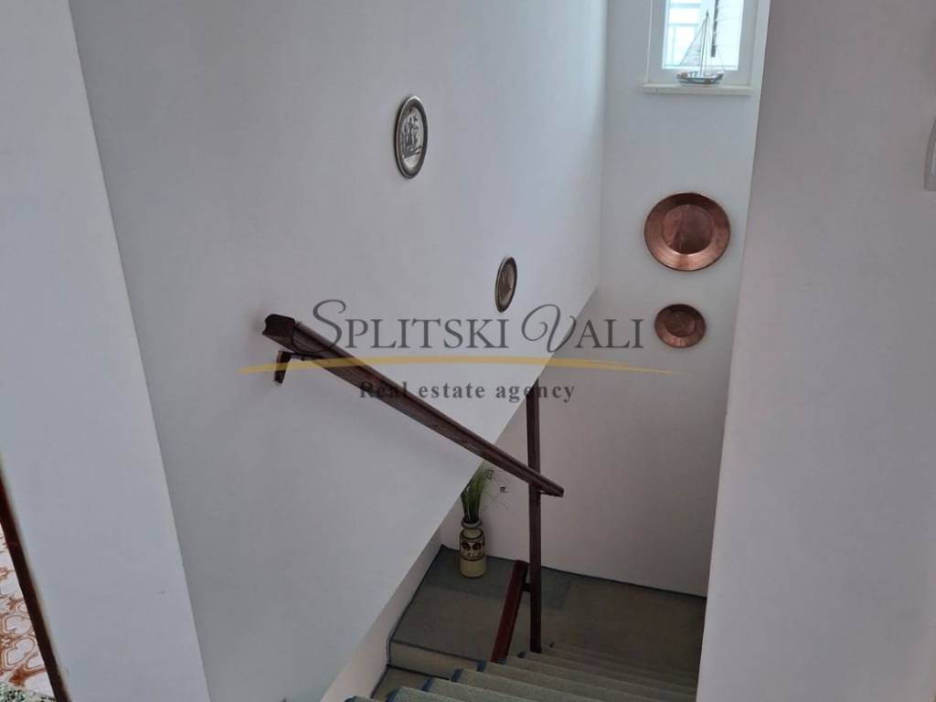 Kuća se proteže na tri etaže (147,50 m2) + 3 balkona sa otvorenim pogledom na more. U prizemlju se nalazi studio apartman sa terasom. Prvi kat se sastoji od dvije spavaće sobe s izlazom na balkon te sprema. Na drugoj etaži su kuhinja s blagovaonicom, dnevni boravak, dvije sobe, ostava, kupaonica i veliki balkon. Vlasništvo uredno.
