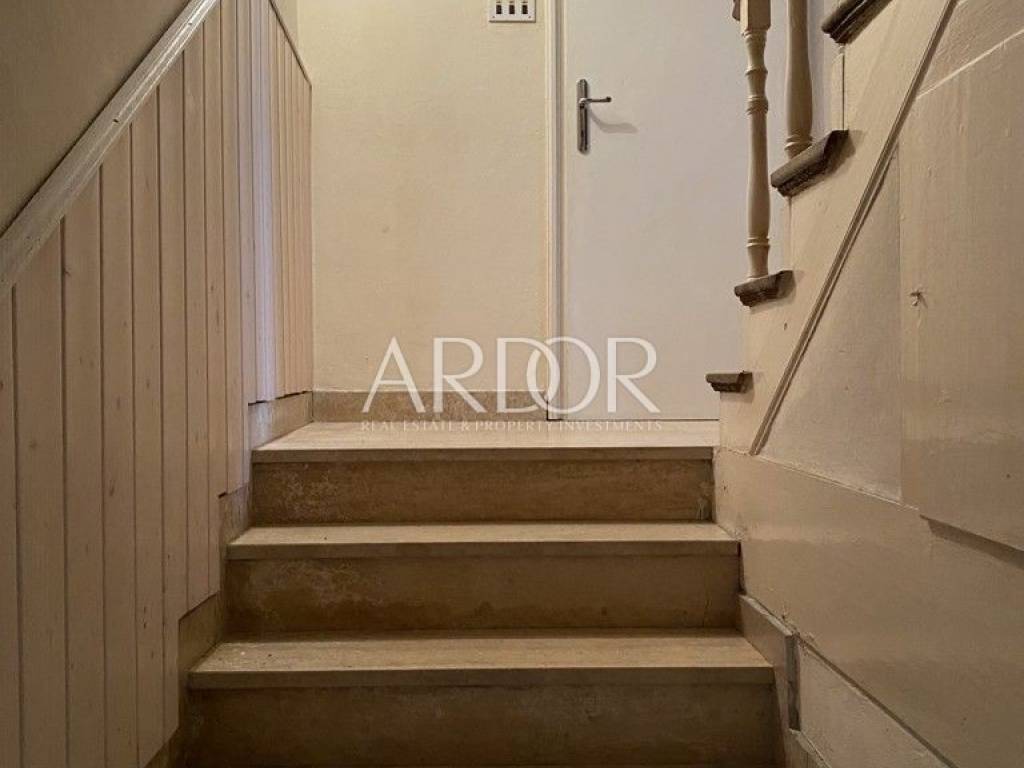 On the ground floor there is a functional kitchen with a dining area, a storage room and a toilet. The first floor features a spacious bedroom with its own bathroom, providing additional privacy and comfort. On the second floor there is another bedroom with access to a side street that leads directly to the old town.