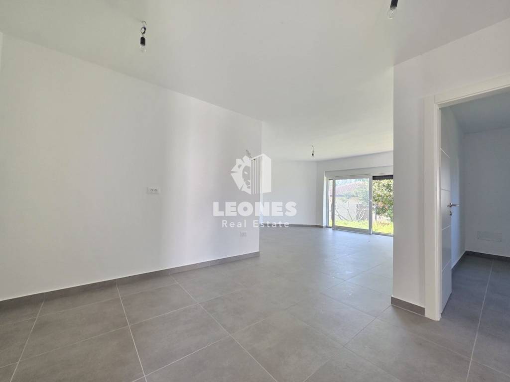 Apartment with garden and garage parking space near Umag, Savudrija for sale. The net usable area of the apartment is 69.20 m2 and is located on the ground floor of a building with a total of 8 apartments. It consists of a kitchen with dining room, living room, bathroom, 2 bedrooms, terrace and a large garden of about 111 m2. The apartment has a garage space and a storage room of 10 m2 in the basement.
