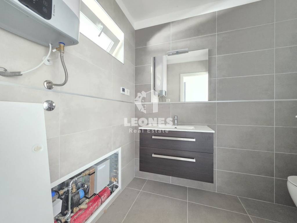 The heating is underfloor via a heat pump while the cooling is via a Mitsubishi air conditioning unit. The facade is energy efficient (10 cm polystyrene) which guarantees low heating and cooling costs. The distance of the apartment from the sea and the beach is 500 m.