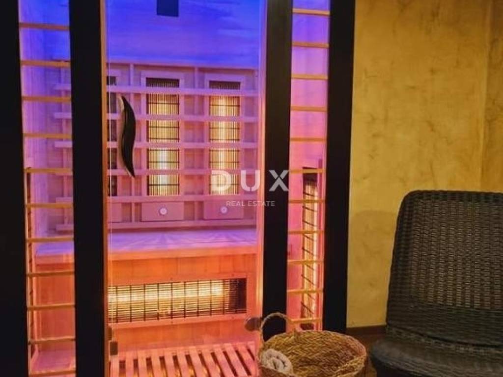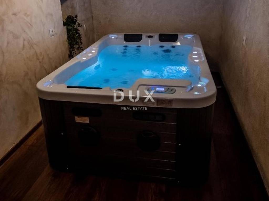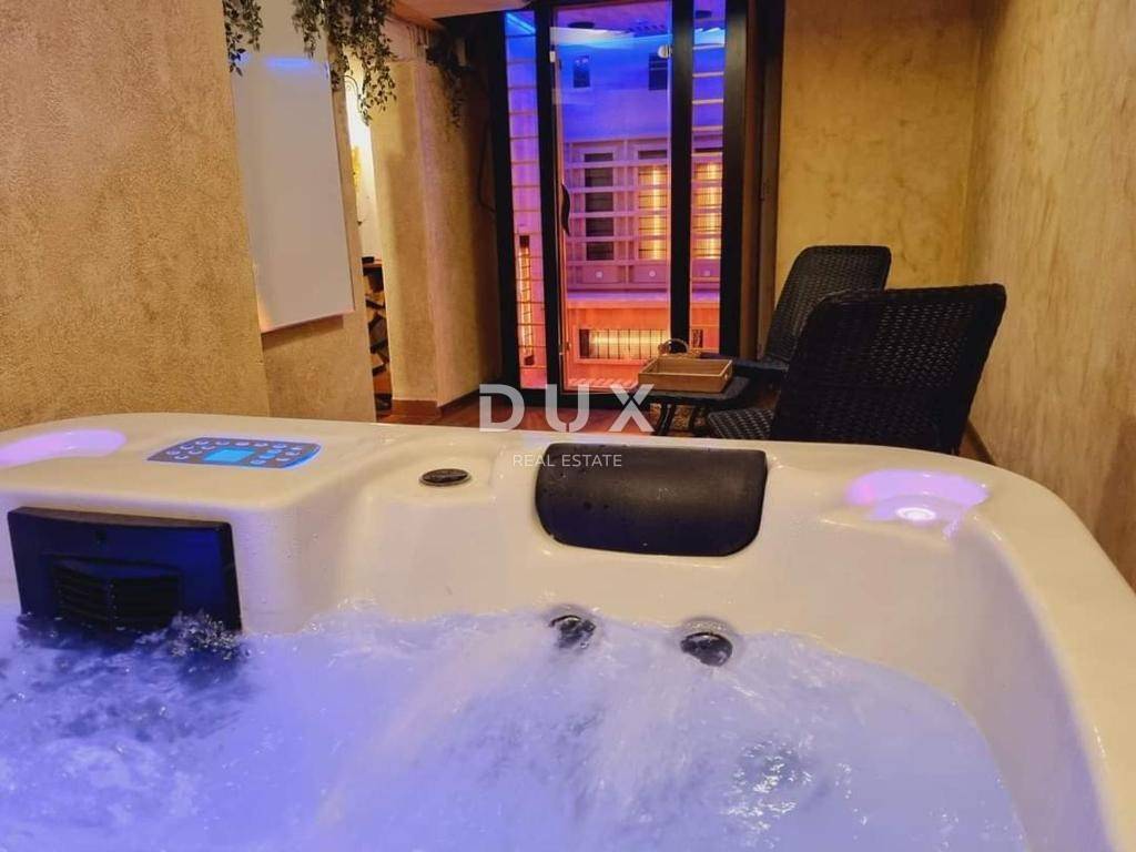 There are two rooms on the ground floor - one is designed as a kitchen with a dining table, ideal for gatherings, while the other is designed as a relaxation area with a jacuzzi and sauna, with an attached bathroom, creating a real small wellness in your own home.