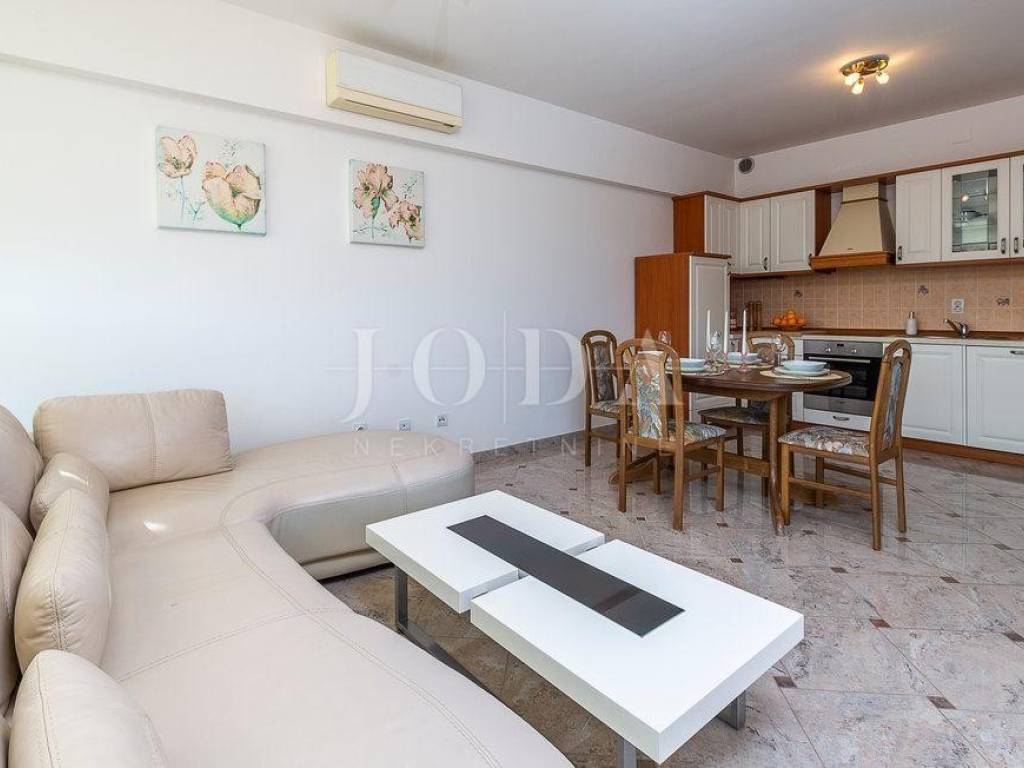 The apartment is located on the second floor and consists of an entrance hall, living room, kitchen and dining room open space,