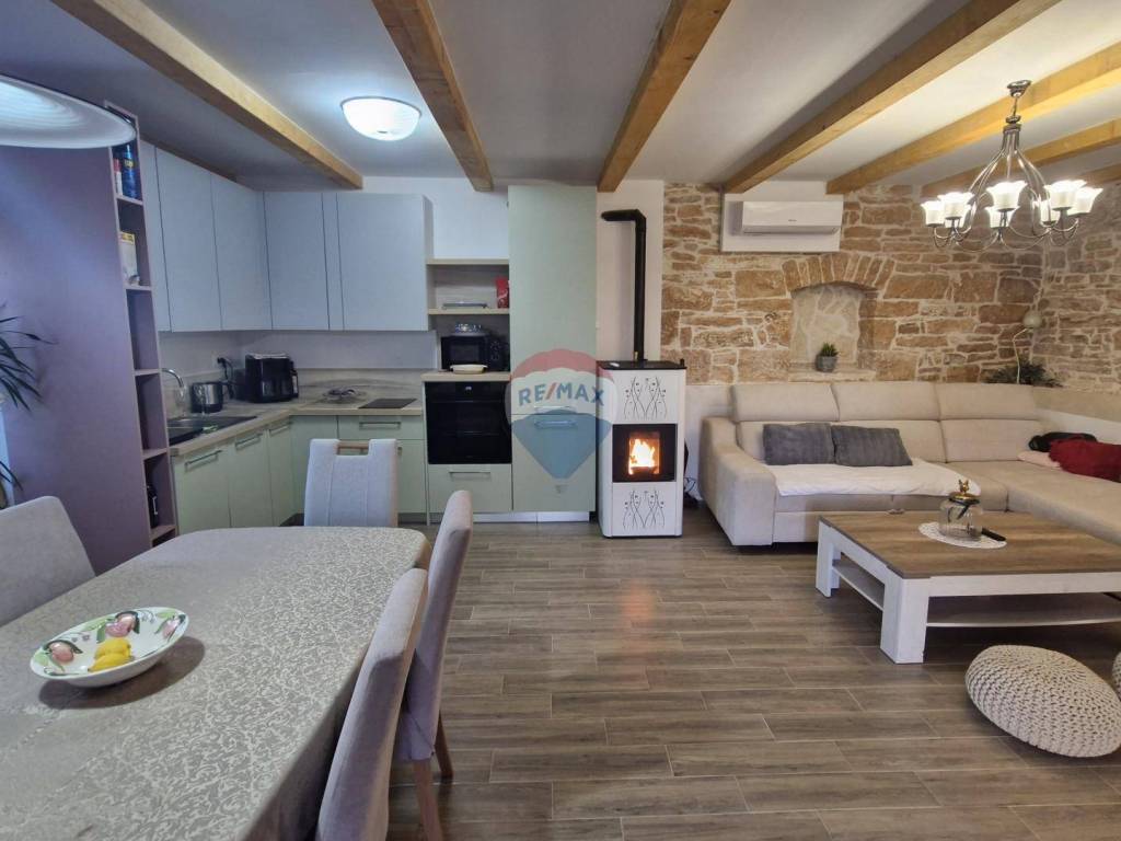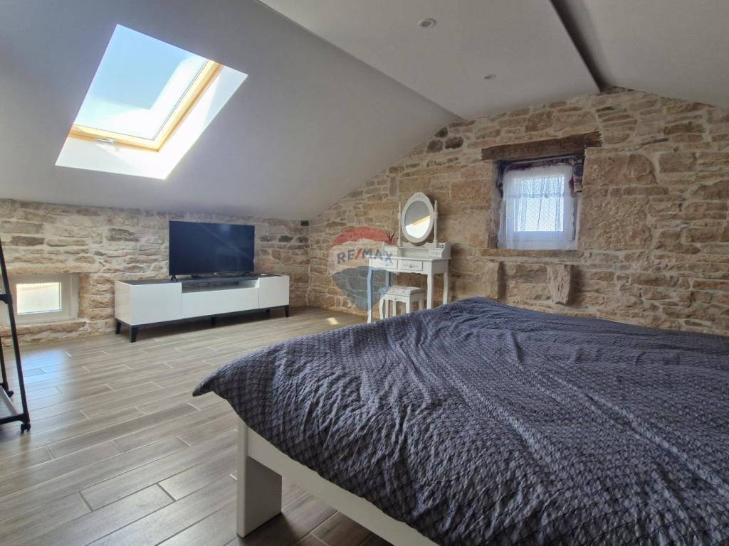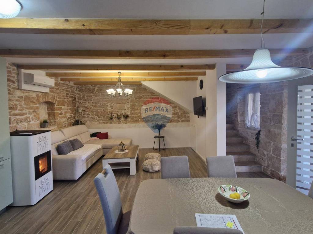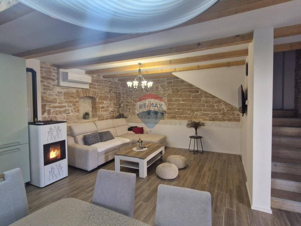 RE/MAX Centar nekretnina is offering for sale a house with the soul of Istria, located in a charming village just 5 kilometres, or a 6 minute drive, from Barban. The house was originally built before 1968, and in 2025 a complete and thorough renovation was finalized. The old house has been transformed into a true stone beauty, preserving the authentic thick stone exterior walls, additionally protected with a special moisture-resistant coating. This has retained the original Istrian character and charm while ensuring modern construction quality and full security.