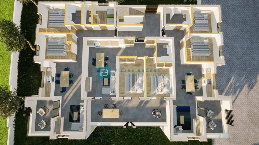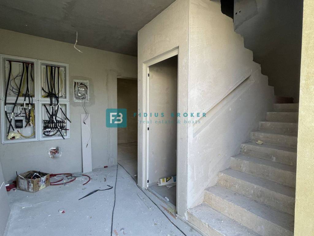 The construction of a new residential building with a total of 9 apartments has begun. The modern-looking residential building will consist of three floors: ground floor + 1st floor + 2nd floor. The building is being built with quality materials according to the latest construction standards. Among the equipment we highlight: thermal facade, security entrance door, PVC joinery, electric roller shutters and mosquito nets, electric underfloor heating in the living room and bathrooms, modern bathroom fixtures, high-quality ceramic flooring, quality laminate in the bedrooms, inverter air conditioners in the living room and bedrooms, TV/SAT connection in the living room and bedrooms, glass railings on the terraces, car charger connection in the storage room. It is possible to purchase an additional parking space. The apartments on the ground floor have a corresponding part of the garden, while the apartments on the 1st and 2nd floors have a beautiful view of the sea, the city and the islands. The building has a connection to the city sewerage and an asphalted access road. The planned completion date of construction and move-in is summer 2026.