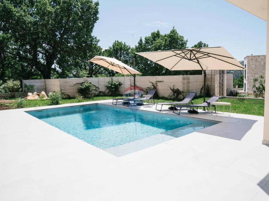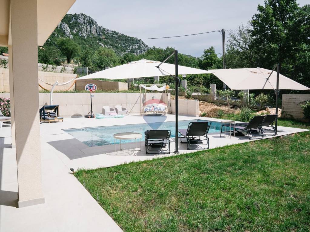 **RE/MAX Centar Nekretnina** presents a holiday villa located in the peaceful surroundings of **Bribir**, in the hinterland of **Crikvenica**. Surrounded by nature and the tranquility of the Vinodol region, this modern villa built in **2023** offers the perfect place to relax, unwind and escape everyday life, while the sea and beaches are only a few minutes’ drive away.