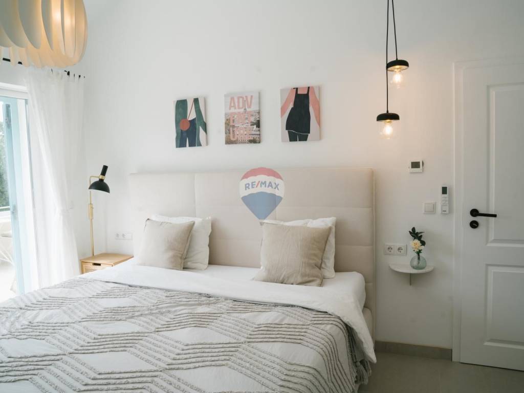 The villa was built using **high-quality materials** and is equipped with modern systems including **underfloor heating throughout the house, a heat pump, air conditioning in all bedrooms and the living room**, as well as a **fully equipped kitchen**. It is **sold furnished**, allowing the future owner to move in quickly or continue the successful tourist rental.