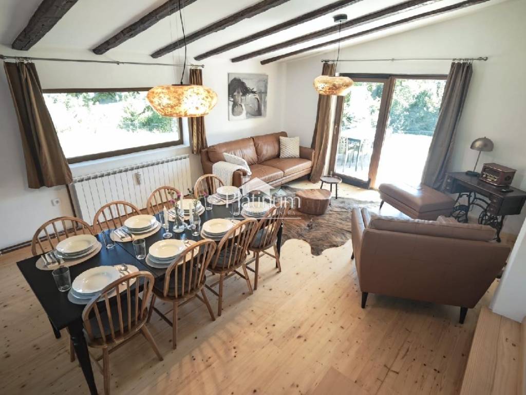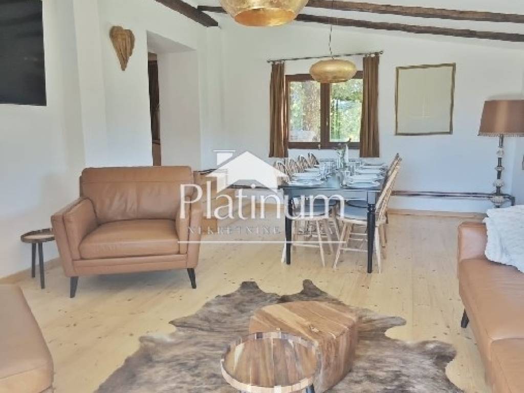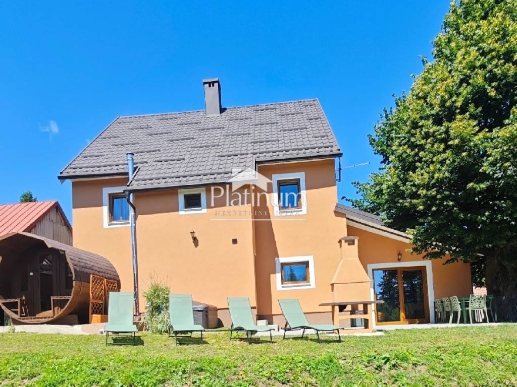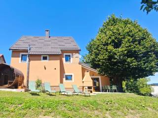 In the beautiful nature of Gorski Kotar, there is a charming house with a garden near Fužine. Fully furnished, ready to move in with proper documentation, with an additional building that is currently rented for tourist purposes. The house is a detached house measuring 220 m2 with a garden of 4000 m2, of which cca 1200 m2 is construction land. The house consists of a ground floor, first floor and attic. On the ground floor there is a front area and a large living room, kitchen, bathroom, storage room, laundry room, one bedroom. On the first floor there is a smaller front area as a small living room, three bedrooms and a bathroom. Next to the house there is a smaller building of cca 58 m2 which is used as a small apartment and a wooden tool shed. In the outer courtyard there is a sauna and a jacuzzi and a spacious terrace next to the house with a beautiful view of the surrounding forest. Completely renovated in 2024, electricity, water, central heating on pellets, new roof and facade. Possibility of exchanging for an apartment in Zagreb and paying the difference. Info on 00385 91 924 9486