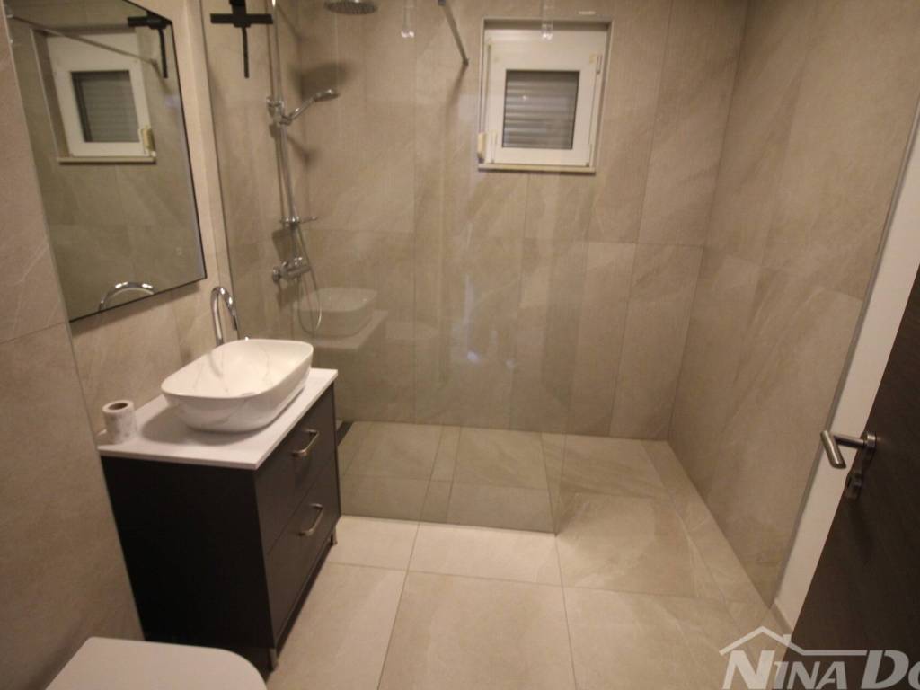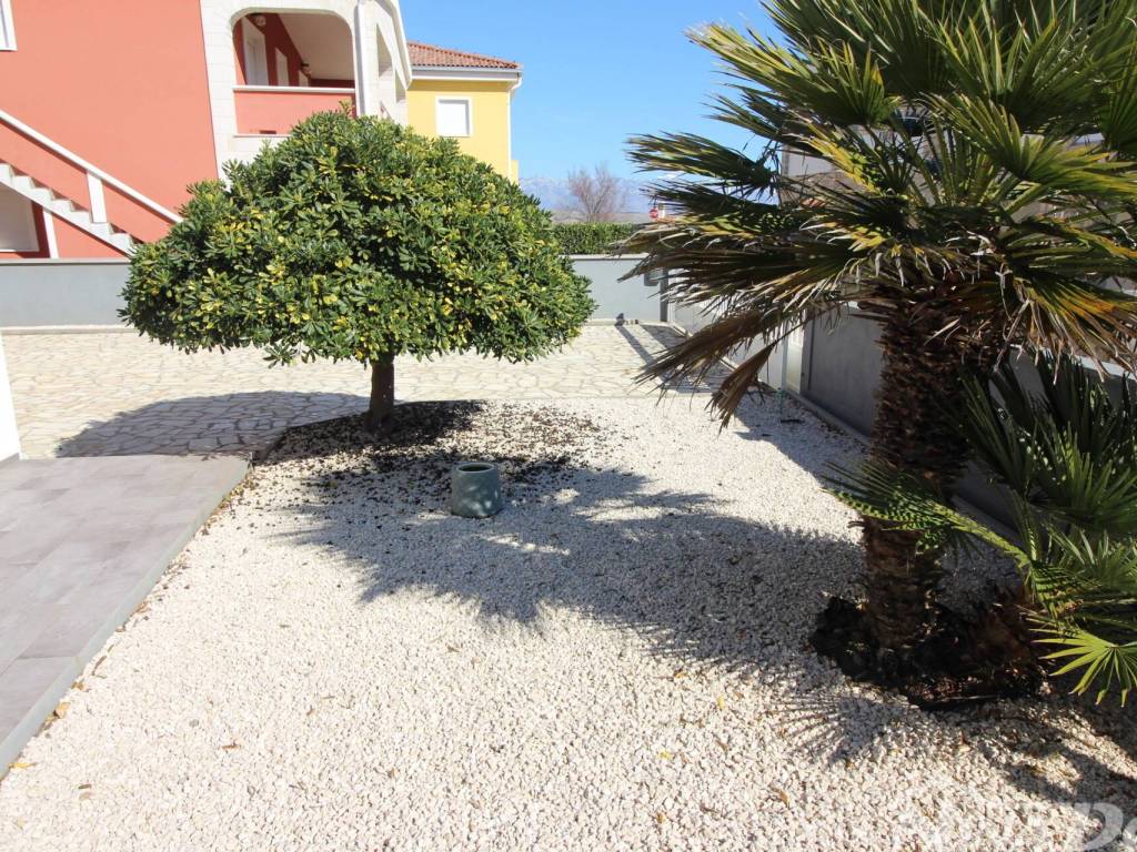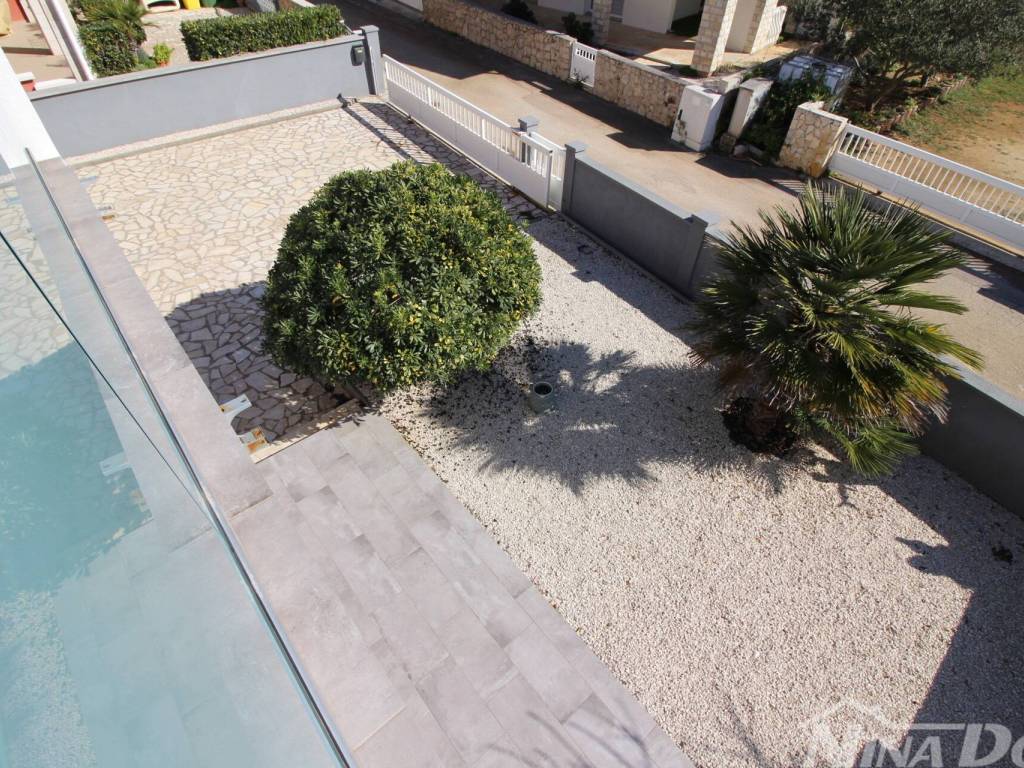 Stubište za kat, na katu dva prostrana apartmana od kojih svaki ima veliku spavaću sobu, kuhinju s dnevnim boravkom i kupaonu, terasu. Klimatizirani prostori.