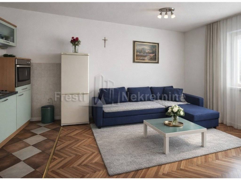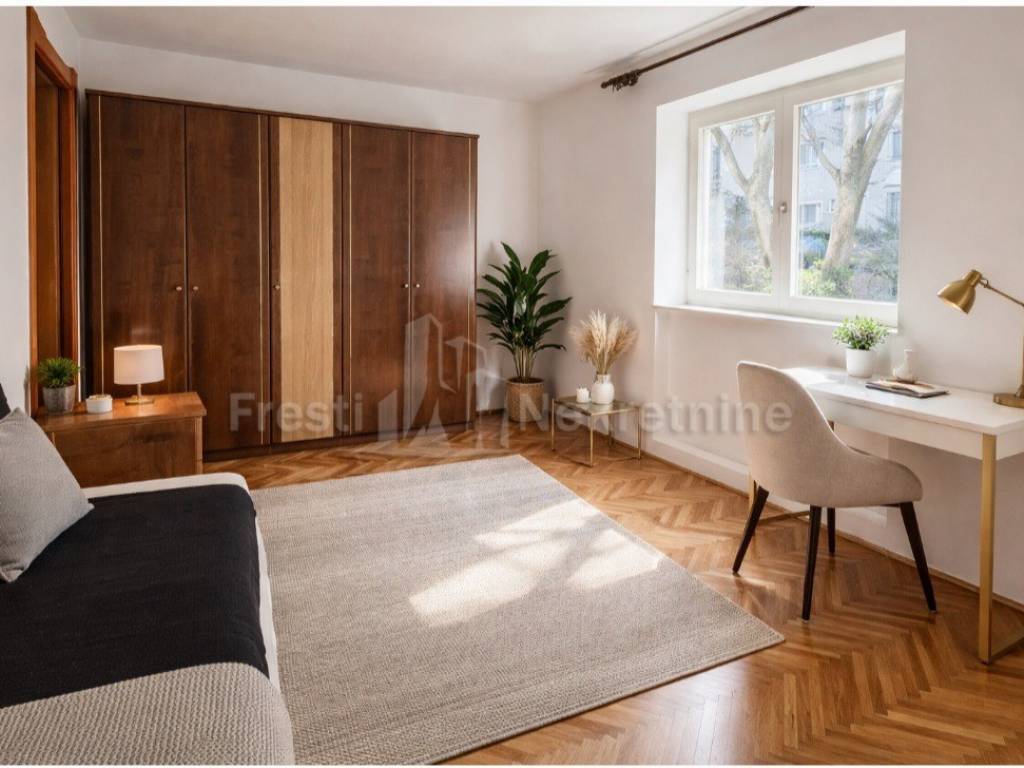 Stan površine 40m2 smješten je na visokom prizemlju a sastoji se od: Ulaznog predsoblja dnevnog boravka s blagovaonicom i opremljene kuhinje, prostrane spavaće sobe kupaonice s kadom, tušem i toaletom Ima i uređenu izbu što je rijetkost za današnje stanove. Stan je kompletno opremljen i namješten te se kao takav i prodaje.